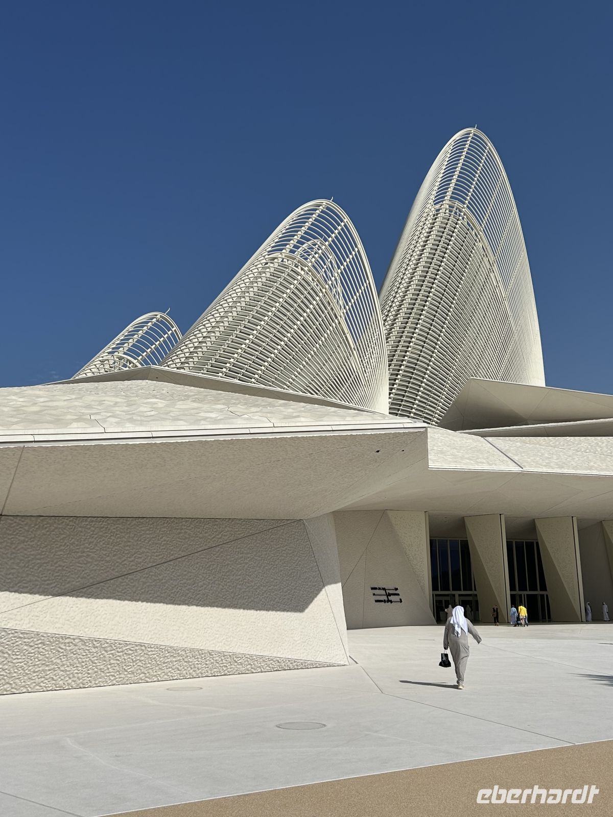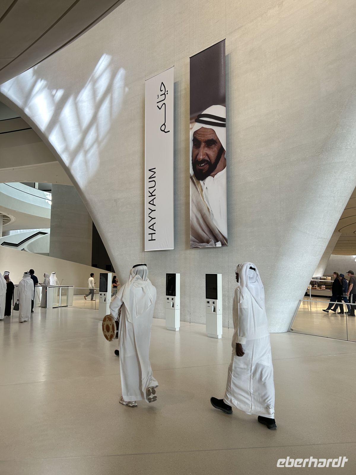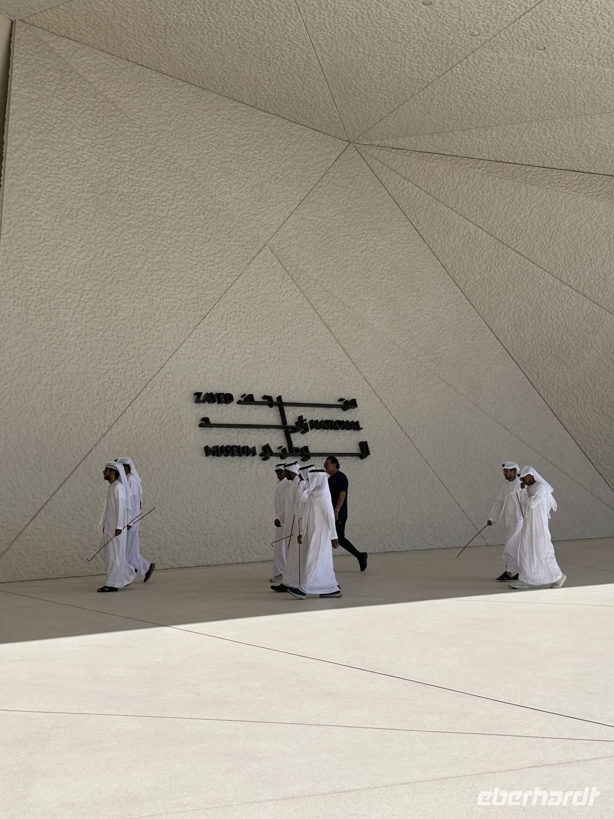 Wir besuchen das Sheikh Zayed Museum, das erst im Dezember 2025 eröffnet wurde. Schon von außen ist klar: Das ist etwas ganz Besonderes. Die spektakuläre Architektur – dynamisch, kraftvoll, symbolisch – ist allein schon ein Kunstwerk. Im Inneren überzeugt das Museum mit einer hochmodernen, multimedialen Ausstellung über das Leben, die Visionen und das Vermächtnis des Staatsgründers Sheikh Zayed bin Sultan Al Nahyan. Bilder, Filme, Originalobjekte, Klang, Licht – alles greift perfekt ineinander. Emotional, informativ, beeindruckend.