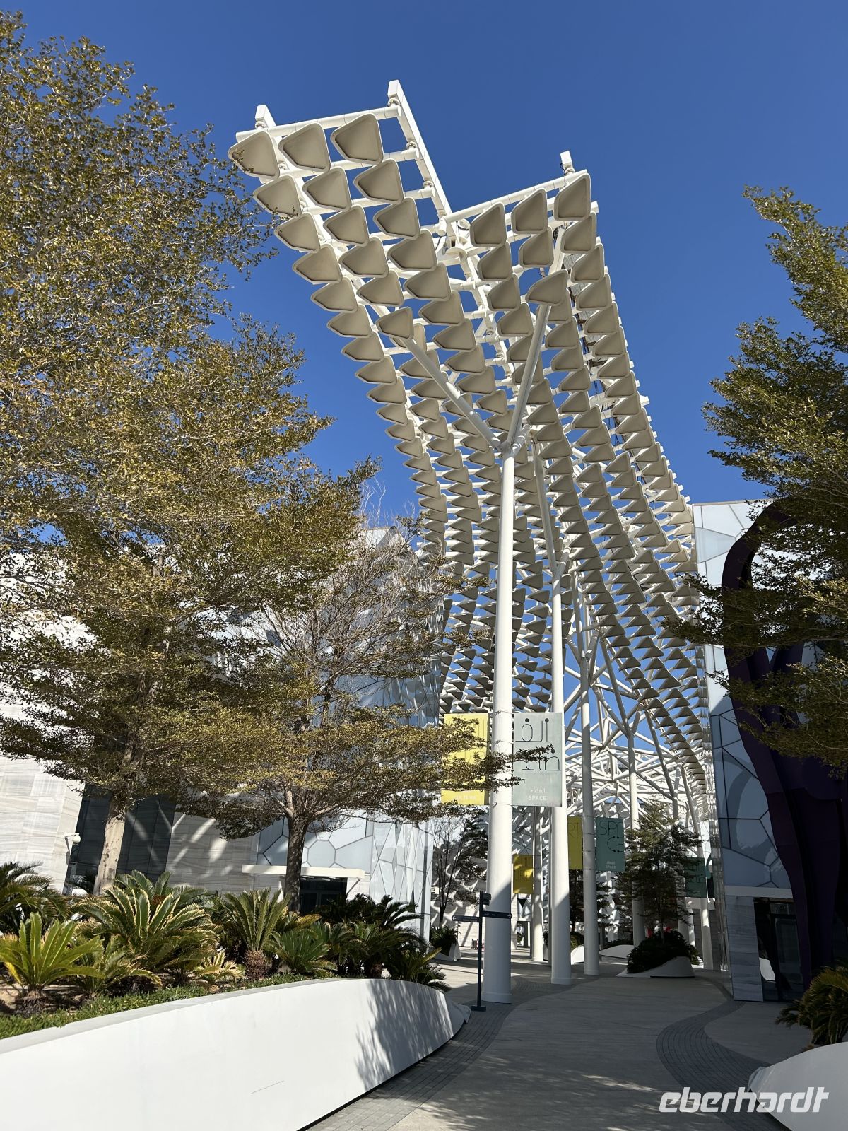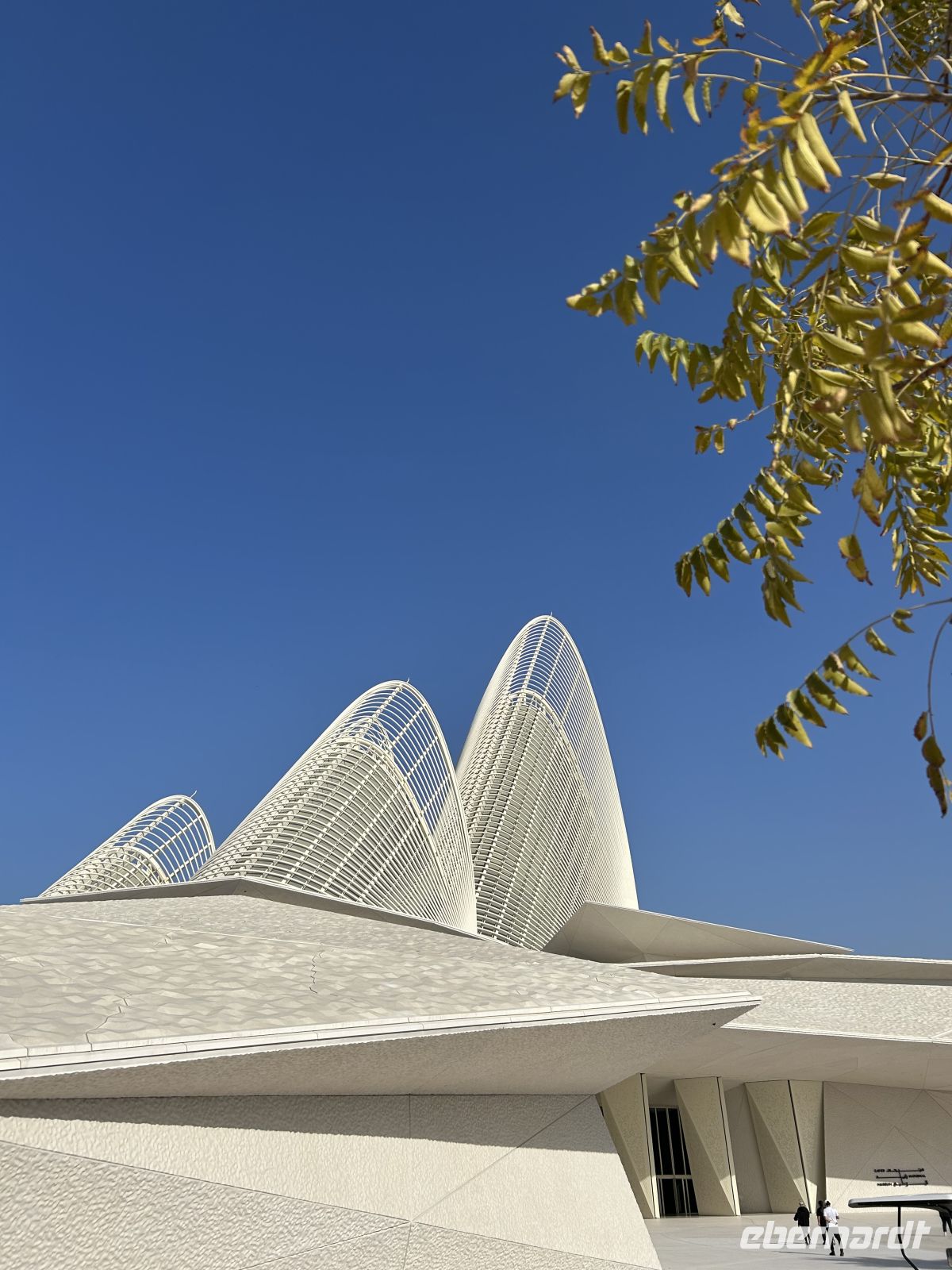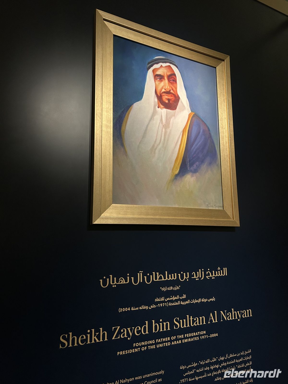 Wir besuchen das Sheikh Zayed Museum, das erst im Dezember 2025 eröffnet wurde. Schon von außen ist klar: Das ist etwas ganz Besonderes. Die spektakuläre Architektur – dynamisch, kraftvoll, symbolisch – ist allein schon ein Kunstwerk. Im Inneren überzeugt das Museum mit einer hochmodernen, multimedialen Ausstellung über das Leben, die Visionen und das Vermächtnis des Staatsgründers Sheikh Zayed bin Sultan Al Nahyan. Bilder, Filme, Originalobjekte, Klang, Licht – alles greift perfekt ineinander. Emotional, informativ, beeindruckend.