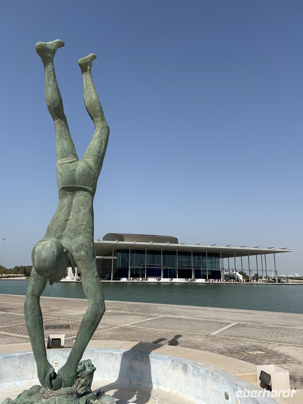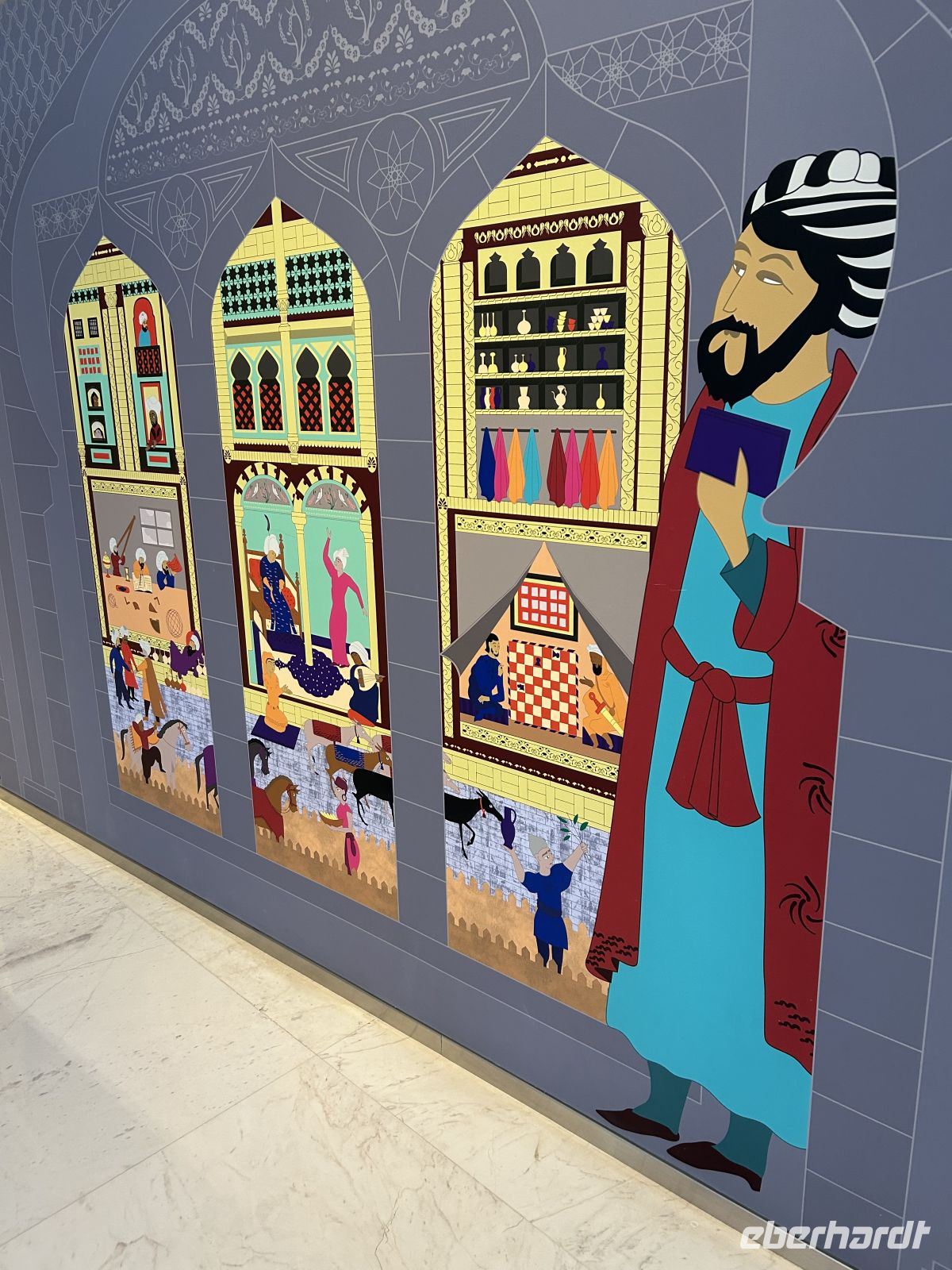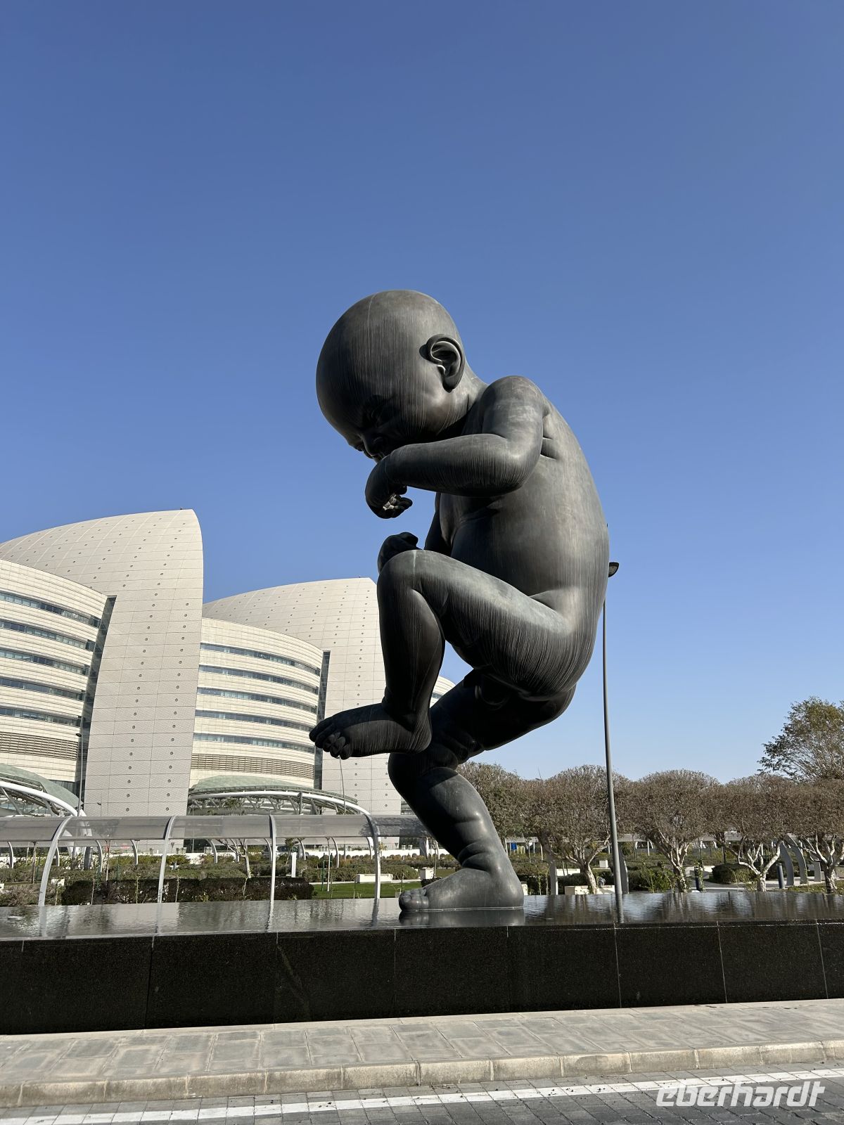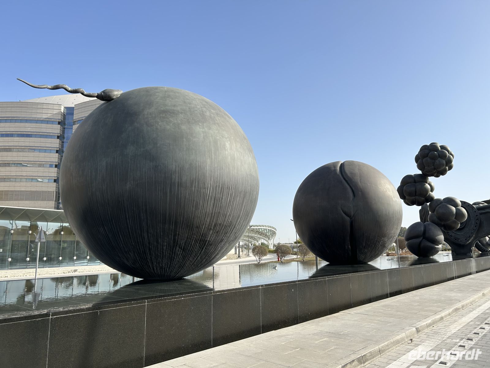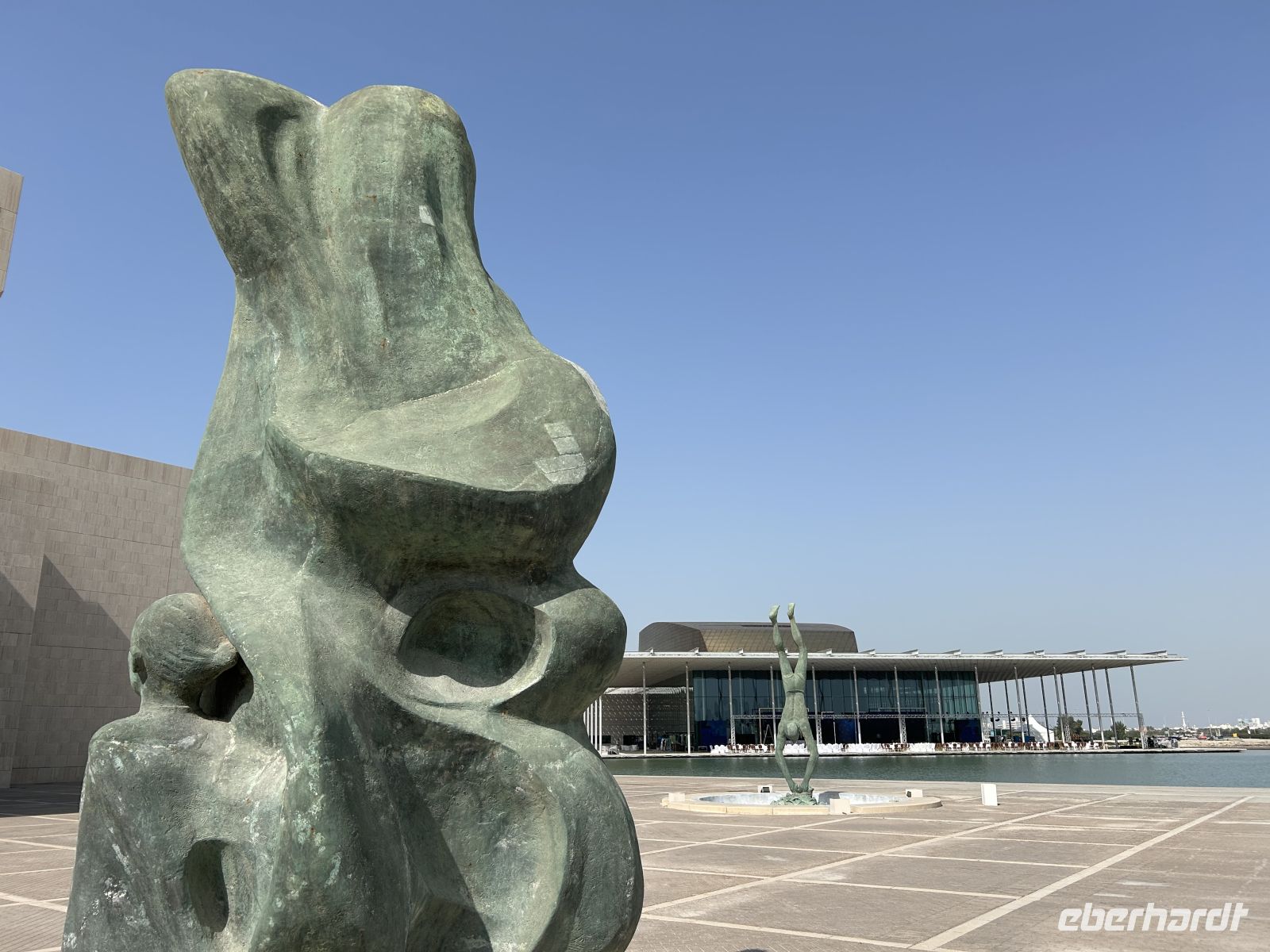 Unser erster Stopp führt uns zum Sidra Krankenhaus. Schon hier wartet eine Überraschung: das monumentale Kunstwerk „The Miraculous Journey“ von Damien Hirst. Die gewaltigen Skulpturen zeigen die Entwicklung eines ungeborenen Kindes – offen, direkt, schonungslos. Ein außergewöhnliches Projekt, das man so in Katar nicht unbedingt erwarten würde. Umso erstaunlicher und beeindruckender ist es, dieses Werk hier zu sehen – ein starkes Zeichen für Offenheit in einem sonst eher konservativen Land.