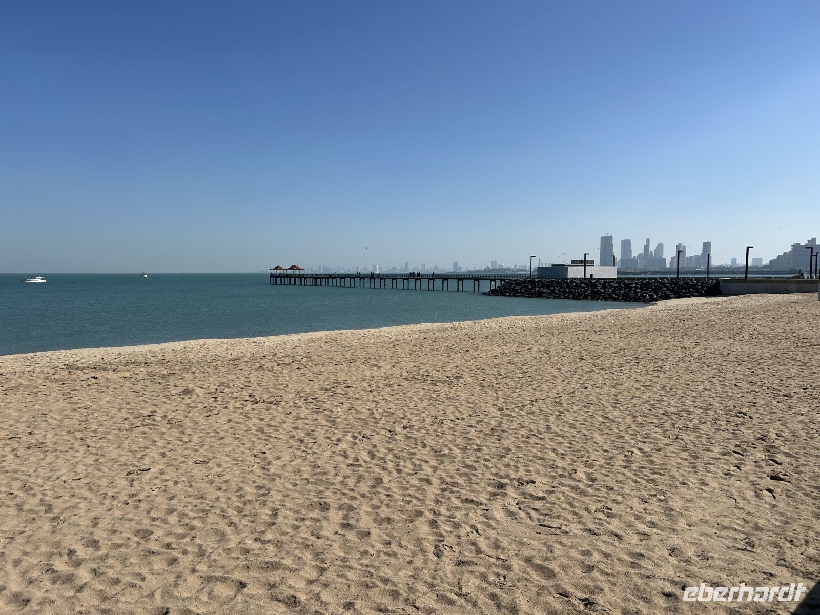 Gut ausgeruht und nach einem ausgiebigen Frühstück starten wir in unseren ersten richtigen Tag in Kuwait. Die Sonne scheint, ein frischer Wind weht, und das Thermometer zeigt 12 bis 13 Grad. Kurz sind wir überrascht – so hatten wir uns das Wetter nicht vorgestellt. Doch der Regen der vergangenen Tage hat etwas Gutes: Die Luft ist klar, die Sicht hervorragend. Genau richtig für unser heutiges Programm.