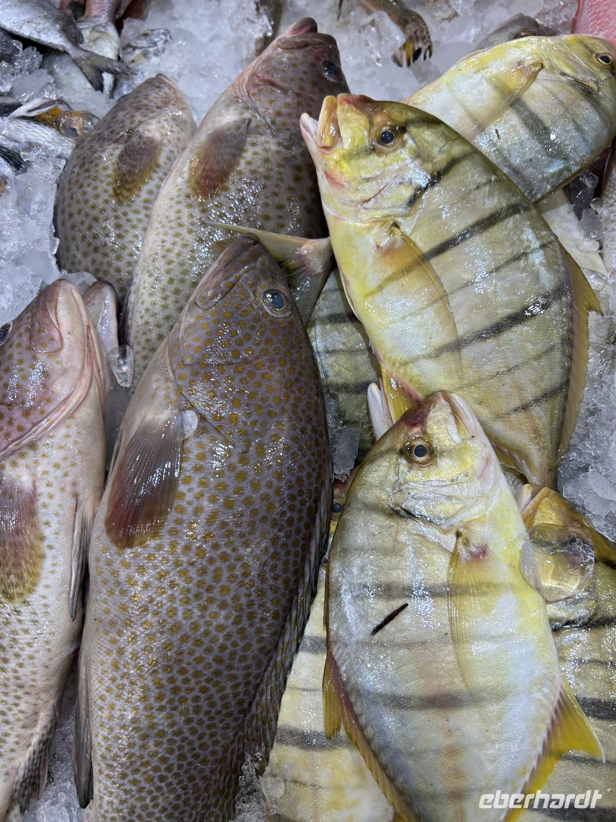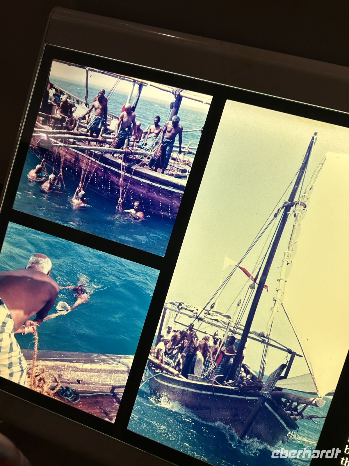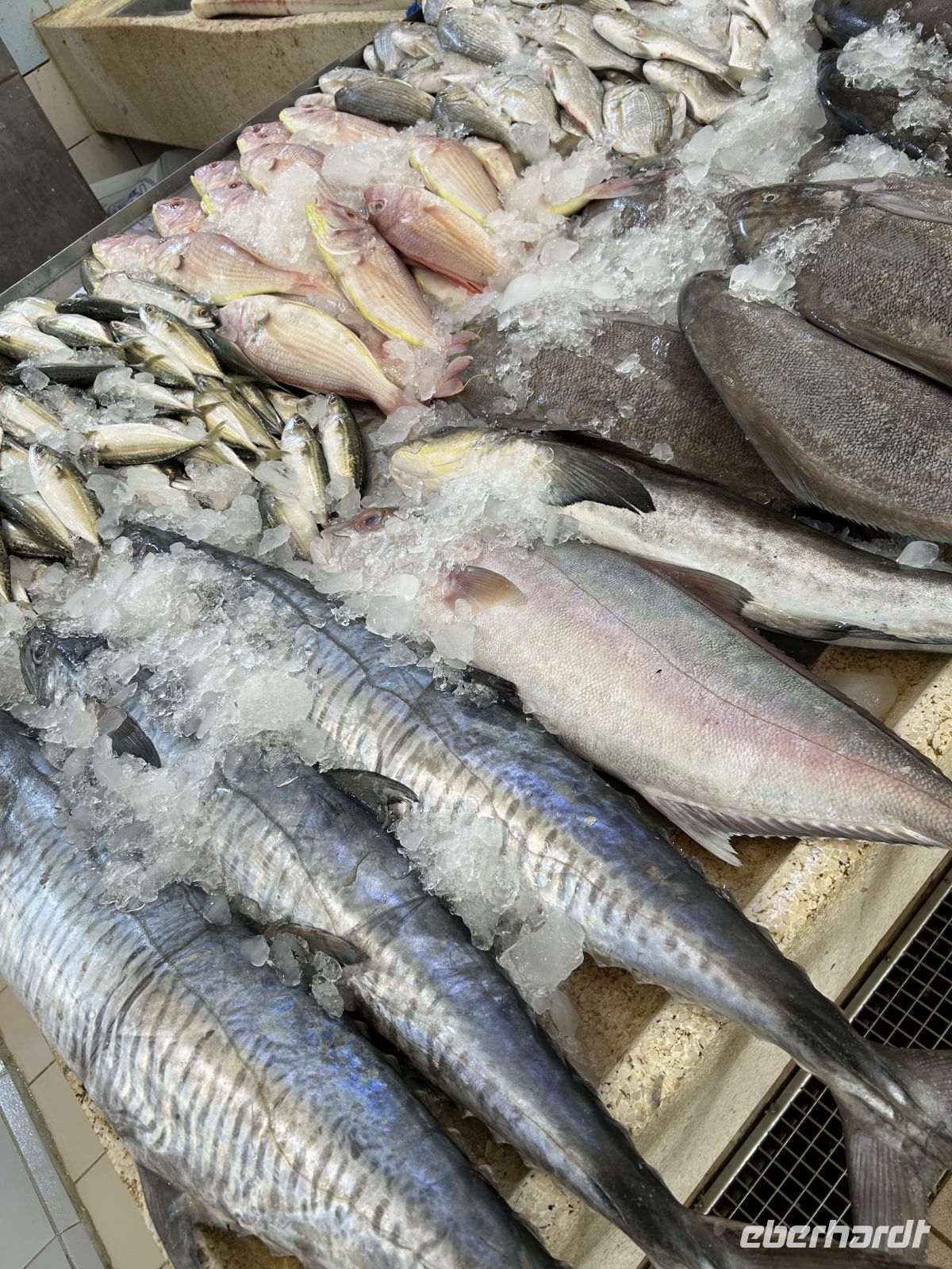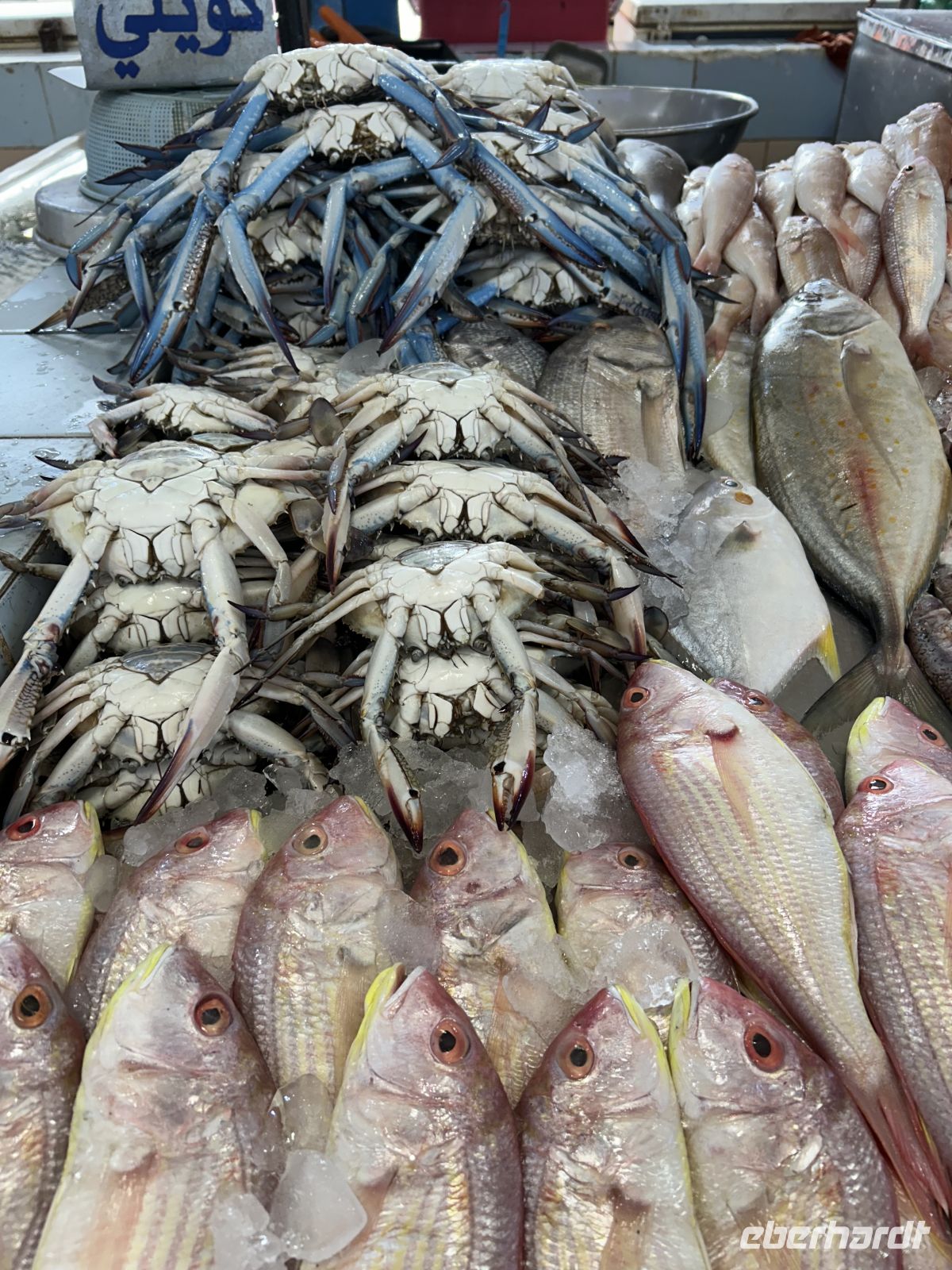 Danach tauchen wir wieder in den Alltag ein: Dhau-Hafen, Fischmarkt, Gemüsemarkt. Der Geruch von Meer, das Rufen der Händler, Berge von frischem Fisch, glänzendes Eis, bunte Kisten voller Gemüse – lebendig, ehrlich, ursprünglich.