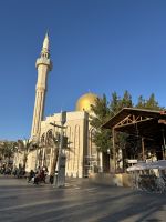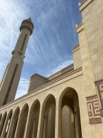 Anschließend besuchen wir die Al Fateh Moschee, eine der größten der Region. Wieder kleiden sich die Frauen religionskonform. Der Eindruck ist diesmal ein anderer als in Kuwait: Von außen wirkt die Moschee fast noch beeindruckender als im Inneren – aber wie so oft liegt Schönheit im Auge des Betrachters.