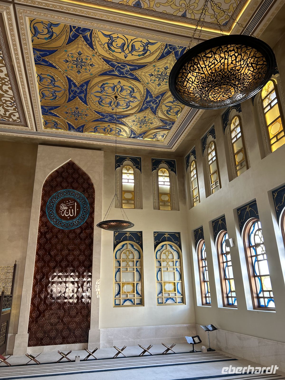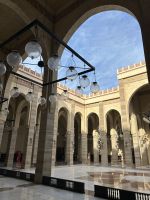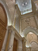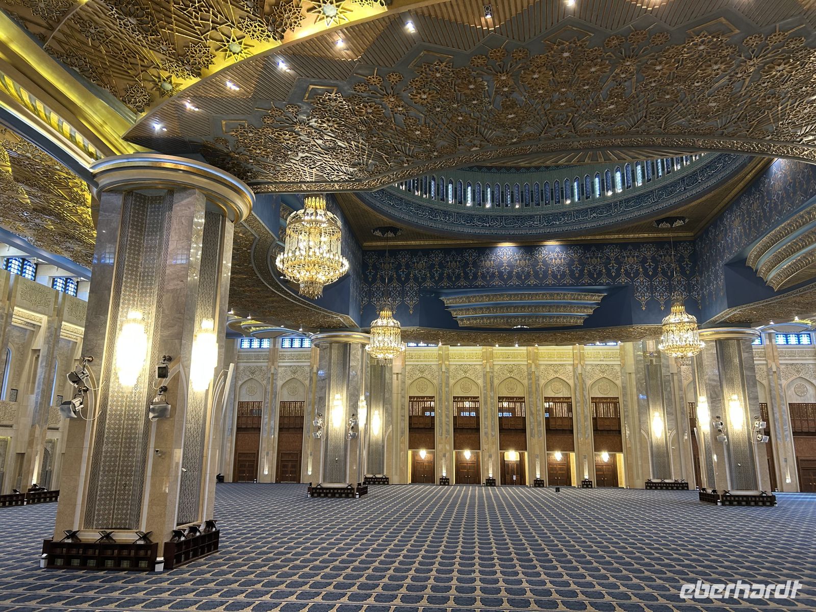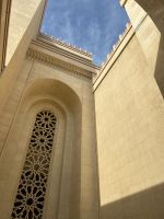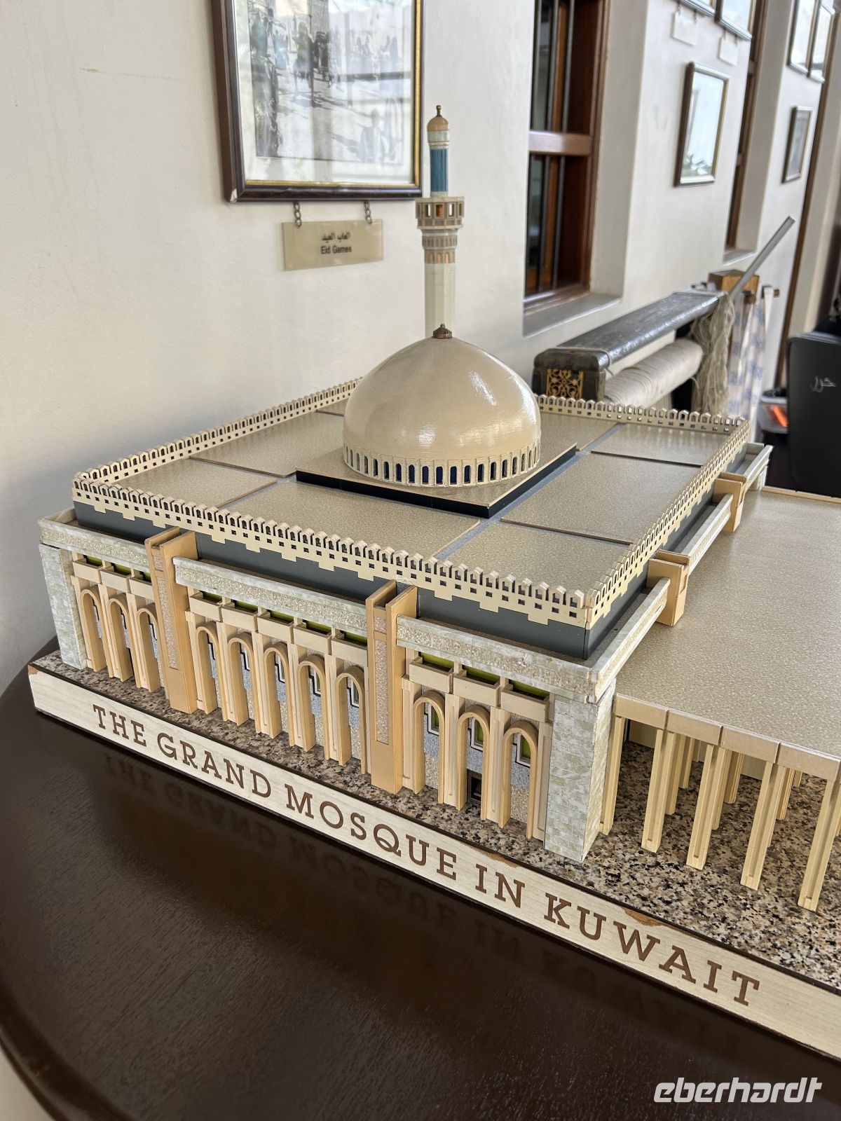 Eine junge Kuwaiti führt uns durch die Moschee, zeigt uns die gewaltige Hauptgebetshalle, den Empfangsbereich und den Versammlungsraum des Emirs, Sheikh Meshal Al-Ahmad Al-Jaber Al-Sabah, der sein Amt erst im Dezember 2023 übernommen hat. Ein spannender Einblick in Religion, Architektur und Politik zugleich.