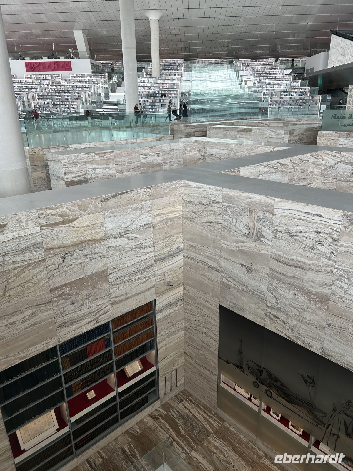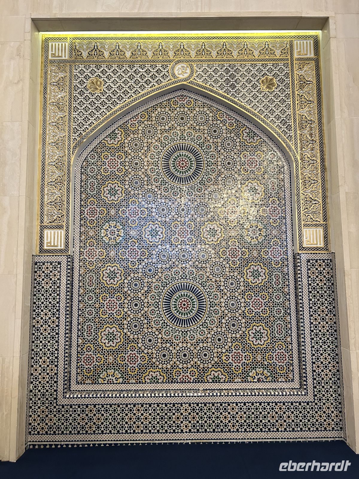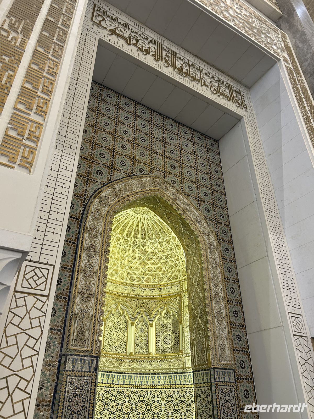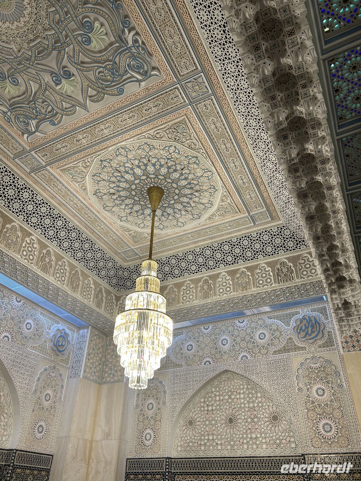 Eine junge Kuwaiti führt uns durch die Moschee, zeigt uns die gewaltige Hauptgebetshalle, den Empfangsbereich und den Versammlungsraum des Emirs, Sheikh Meshal Al-Ahmad Al-Jaber Al-Sabah, der sein Amt erst im Dezember 2023 übernommen hat. Ein spannender Einblick in Religion, Architektur und Politik zugleich.