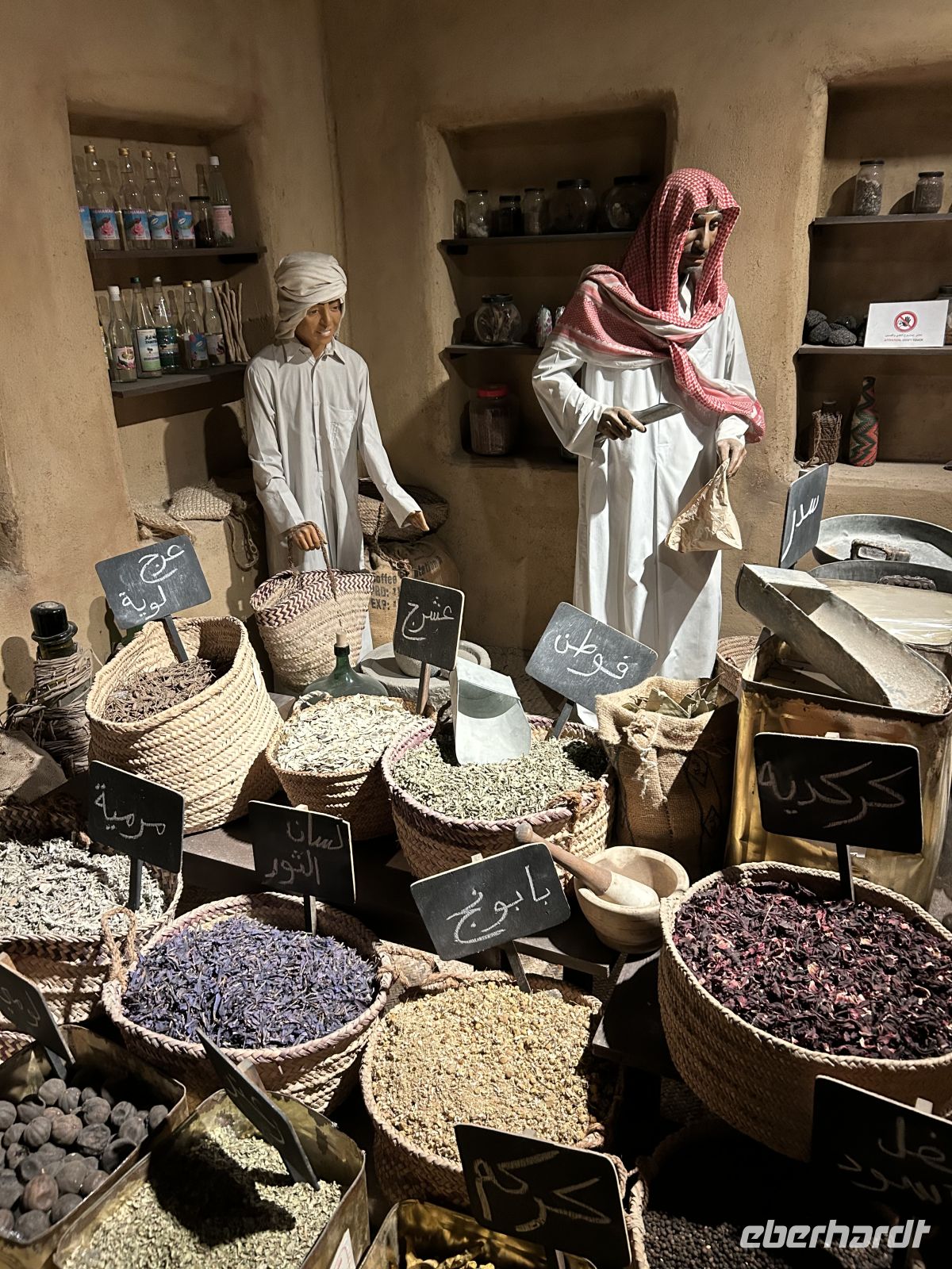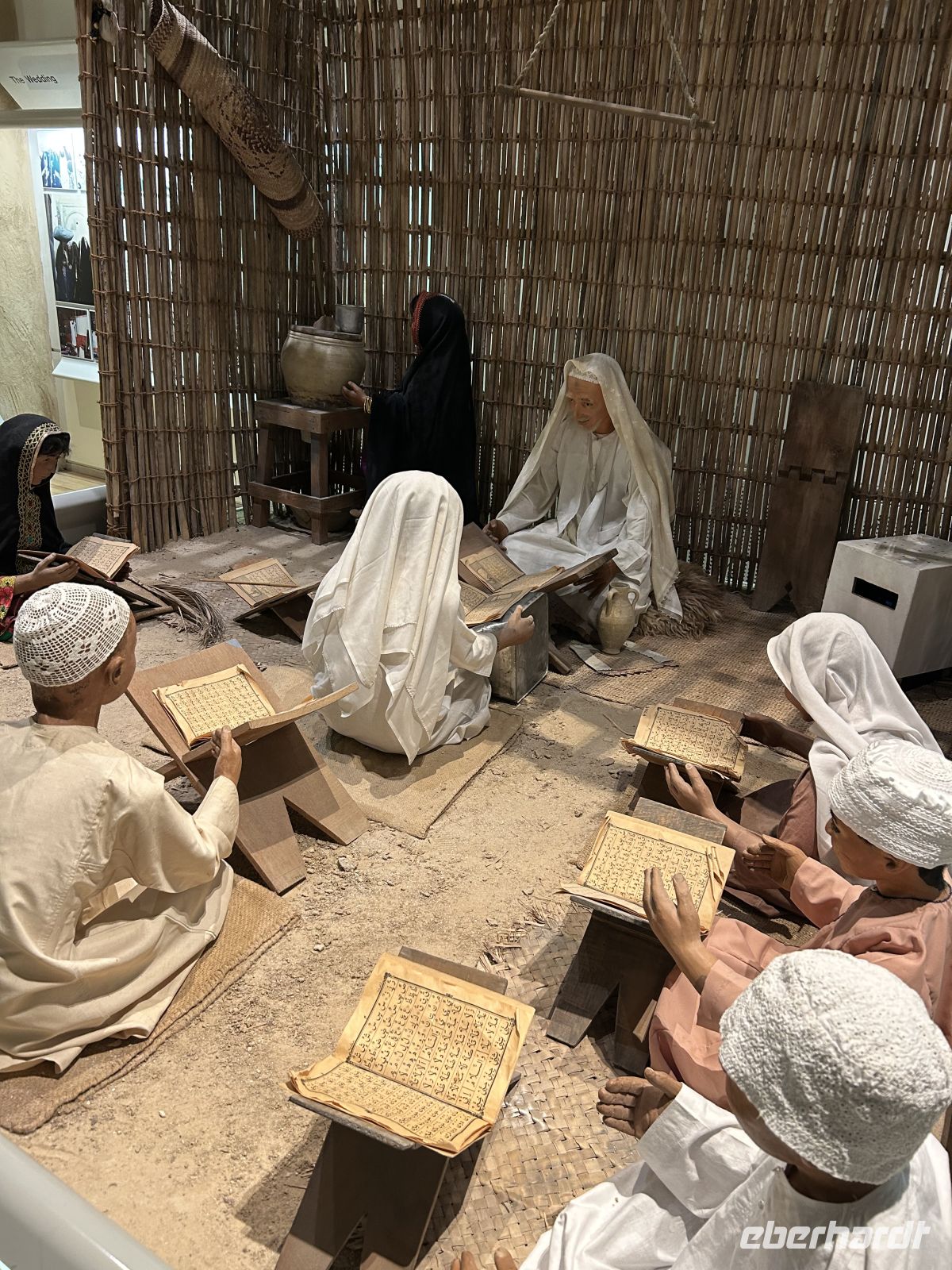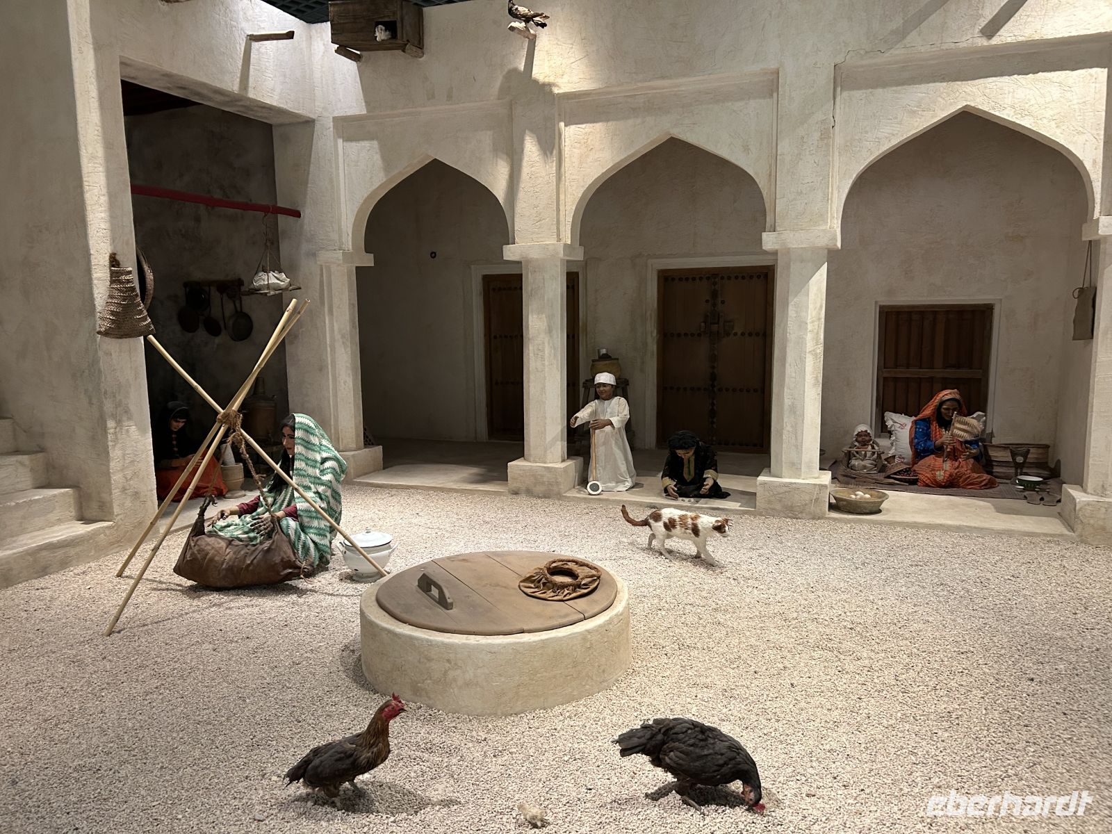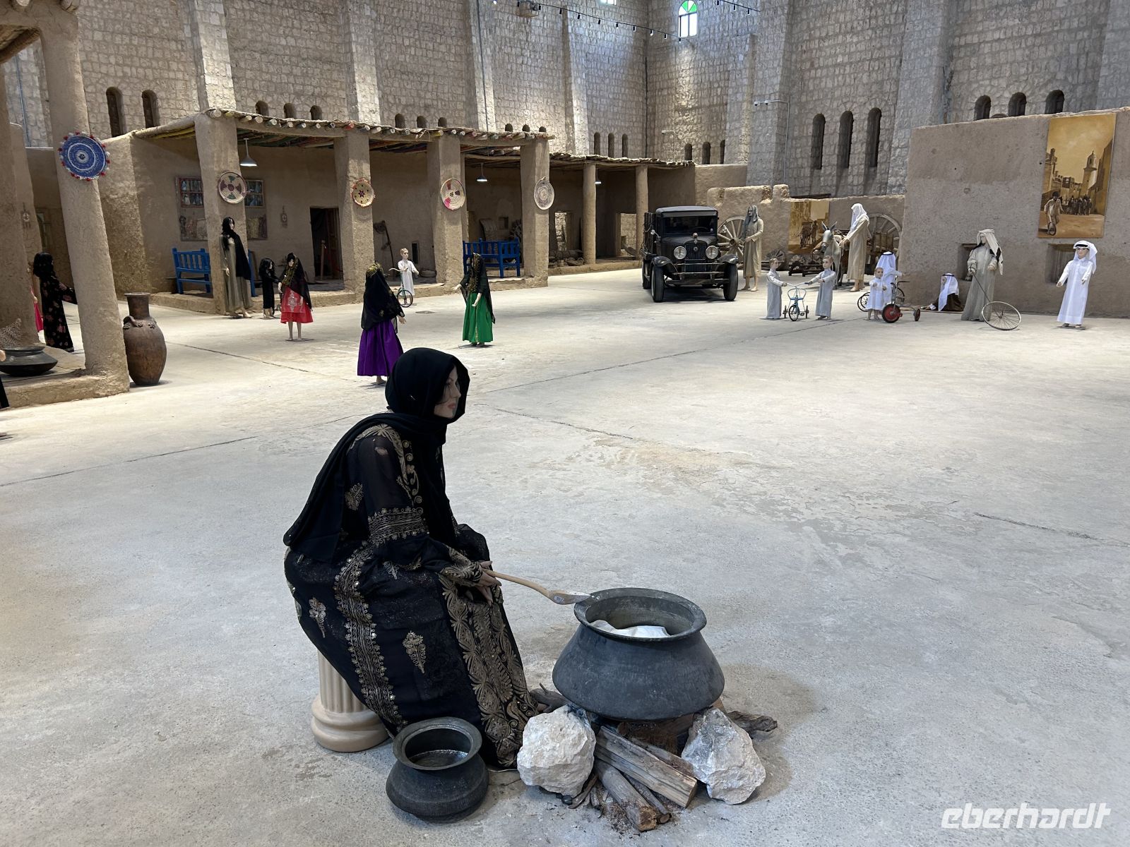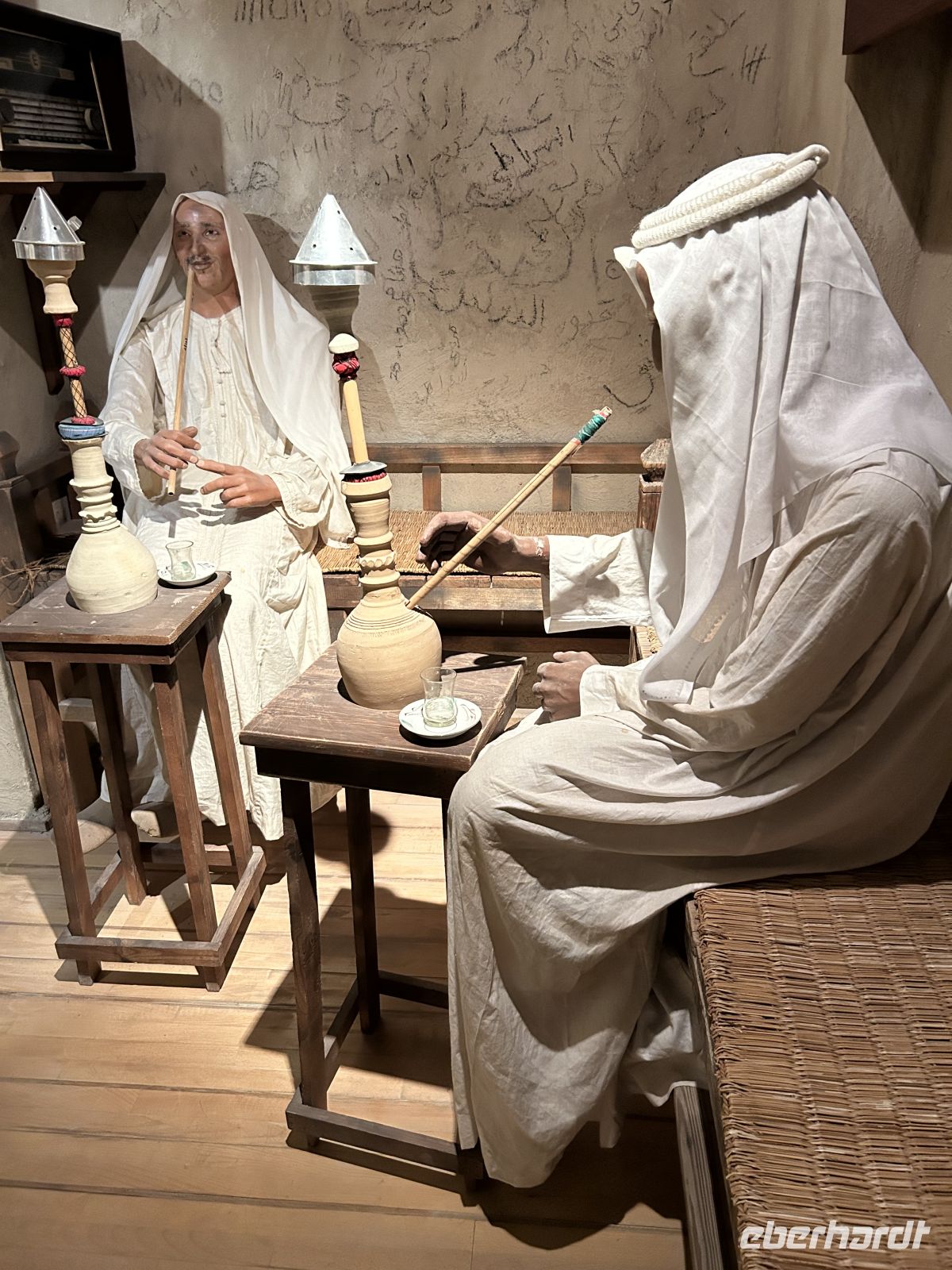 Im großen Innenhof herrscht währenddessen lebendiges Treiben: Ein Streetfood-Festival mit Düften, Musik und Stimmengewirr. Zum Abschluss besuchen wir noch das Heritage Museum, das mit liebevoll gestalteten Szenen das frühere Leben in Kuwait zeigt – vor dem Öl, vor dem Reichtum, als der Alltag noch von Meer, Handel und einfachen Häusern geprägt war.