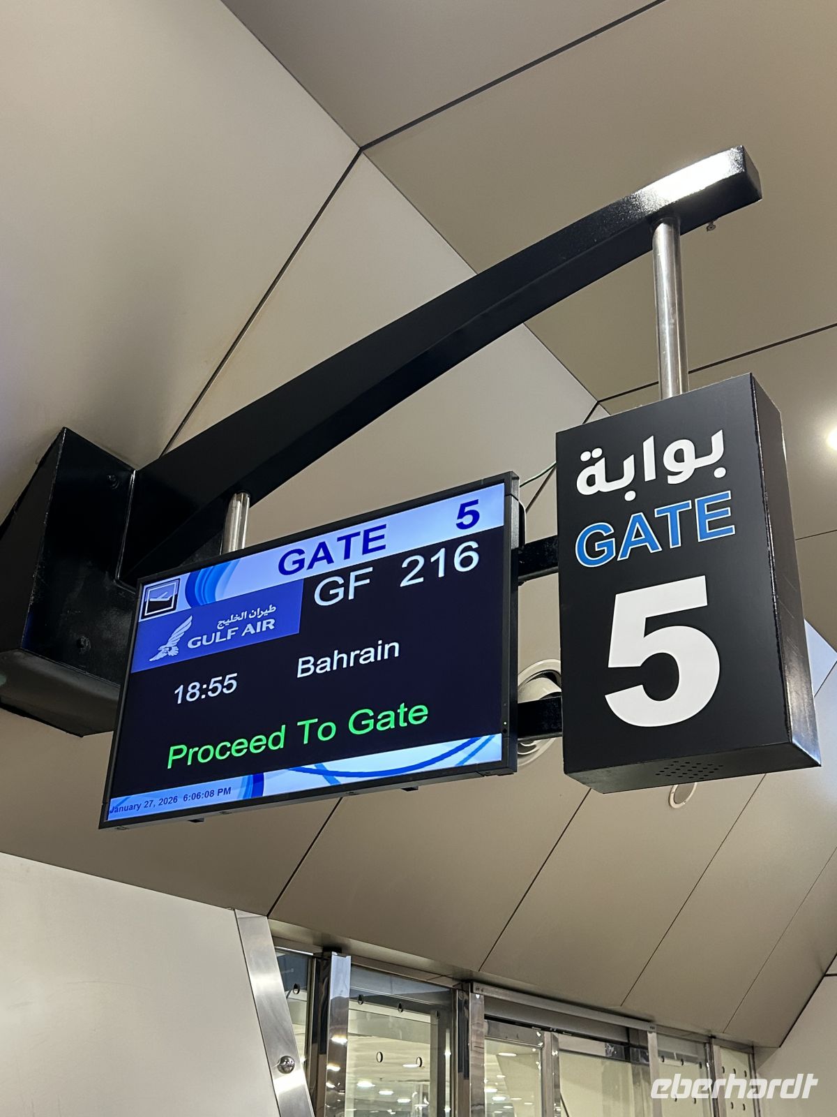 Der Check-in verläuft entspannt, Ausreise und Sicherheitskontrollen noch entspannter. So mögen wir das. Der neue Flughafen von Bahrain präsentiert sich ruhig, großzügig und angenehm – ein würdiger Abschied vom Königreich.