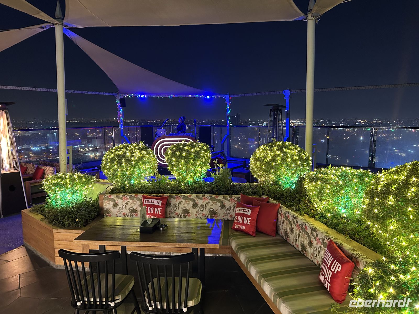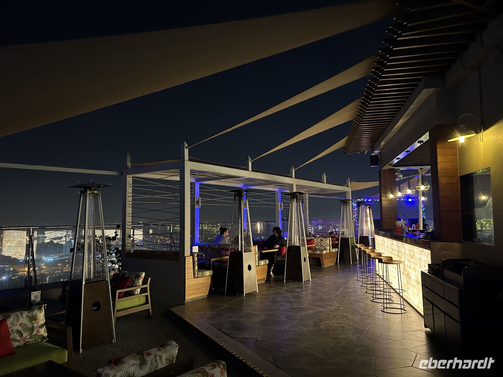 Obwohl es mittlerweile spät ist, sind wir uns einig: Ein kleiner Absacker muss noch sein. Also hinauf auf die 28. Etage, Blick über die nächtliche Stadt genießen und den Tag bei einem Drink ausklingen lassen.