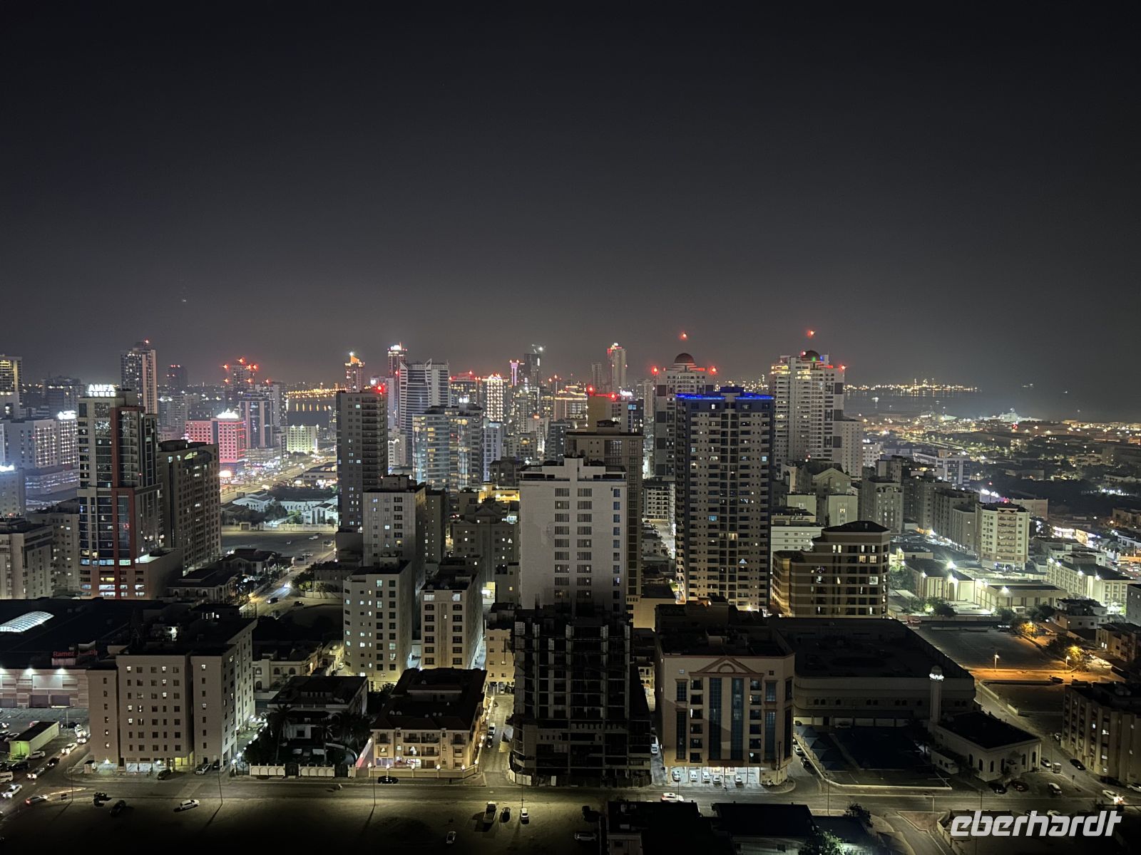 Der Tag beginnt hoch über der Stadt – mit Frühstück in der 28. Etage des Wyndham Garden Hotel Bahrain. Noch etwas müde vom Vorabend, aber mit weitem Blick über Manama und viel Vorfreude auf das, was kommt.