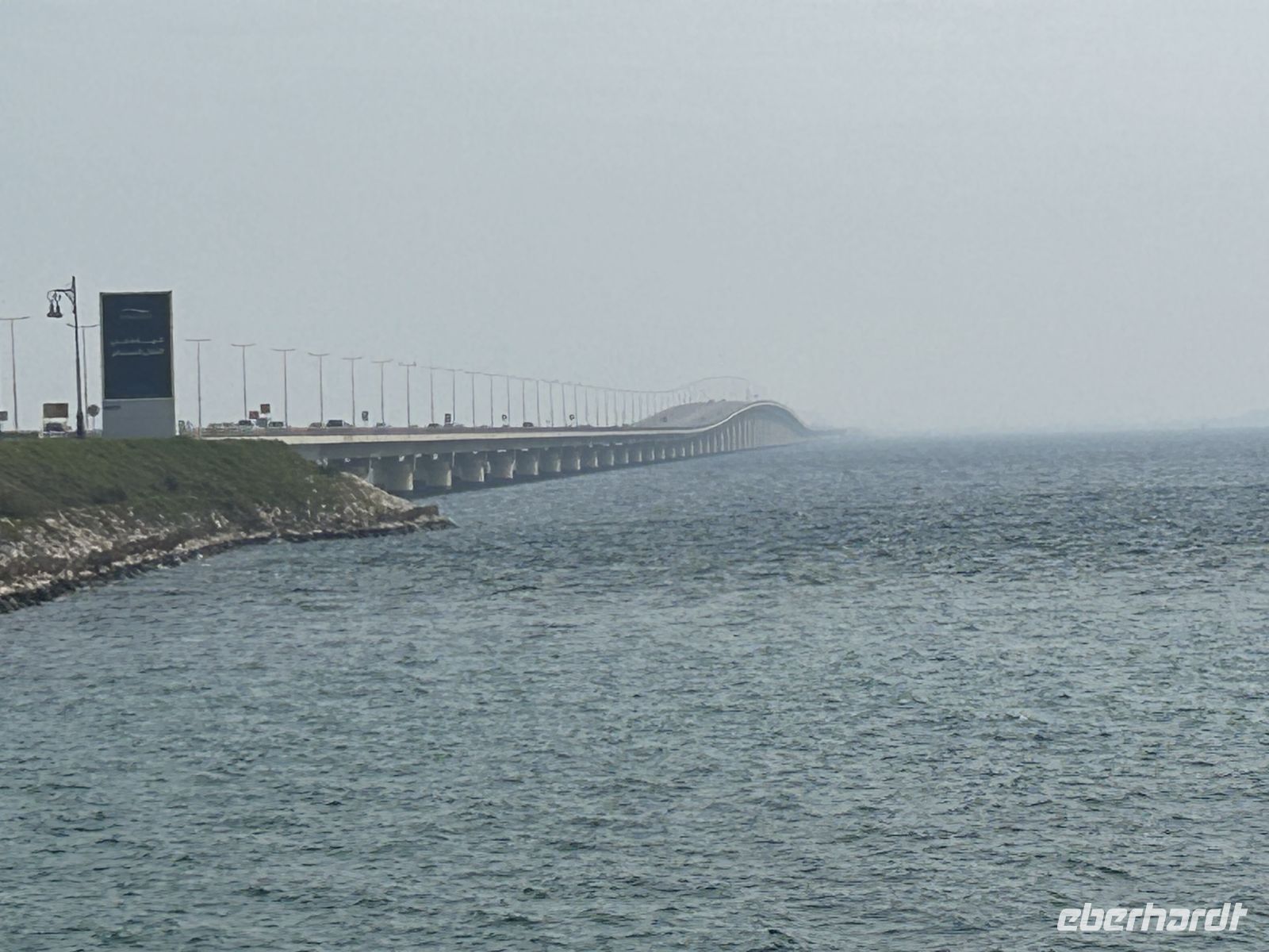 Unsere Entdeckungstour beginnt mit der Fahrt zum King Fahad Causeway, der imposanten Brücke nach Saudi-Arabien. Ein Ort, der zeigt, wie klein Bahrain ist – und gleichzeitig, wie eng es mit seinen Nachbarn verbunden ist.