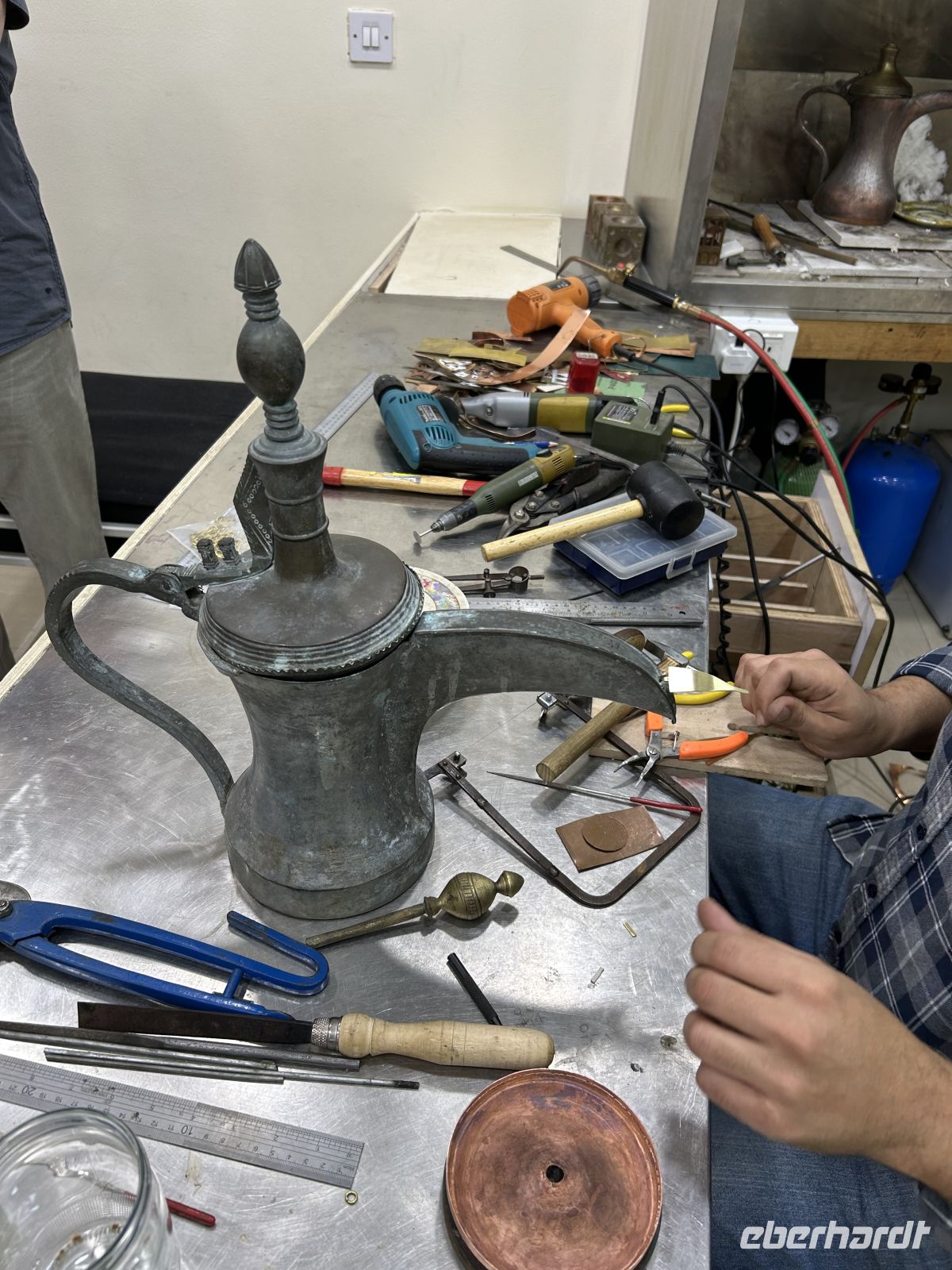 Unser erster Halt ist das private Tareq Rajab Museum. Ein echtes Juwel: liebevoll zusammengestellt, voller Details und Geschichten. Kunsthandwerk, traditioneller Schmuck, kostbare Textilien, Waffen, Keramiken – ein faszinierender Überblick über die Kultur der arabischen Welt und Zentralasiens. Viele von uns hätten hier noch deutlich länger verweilen können.