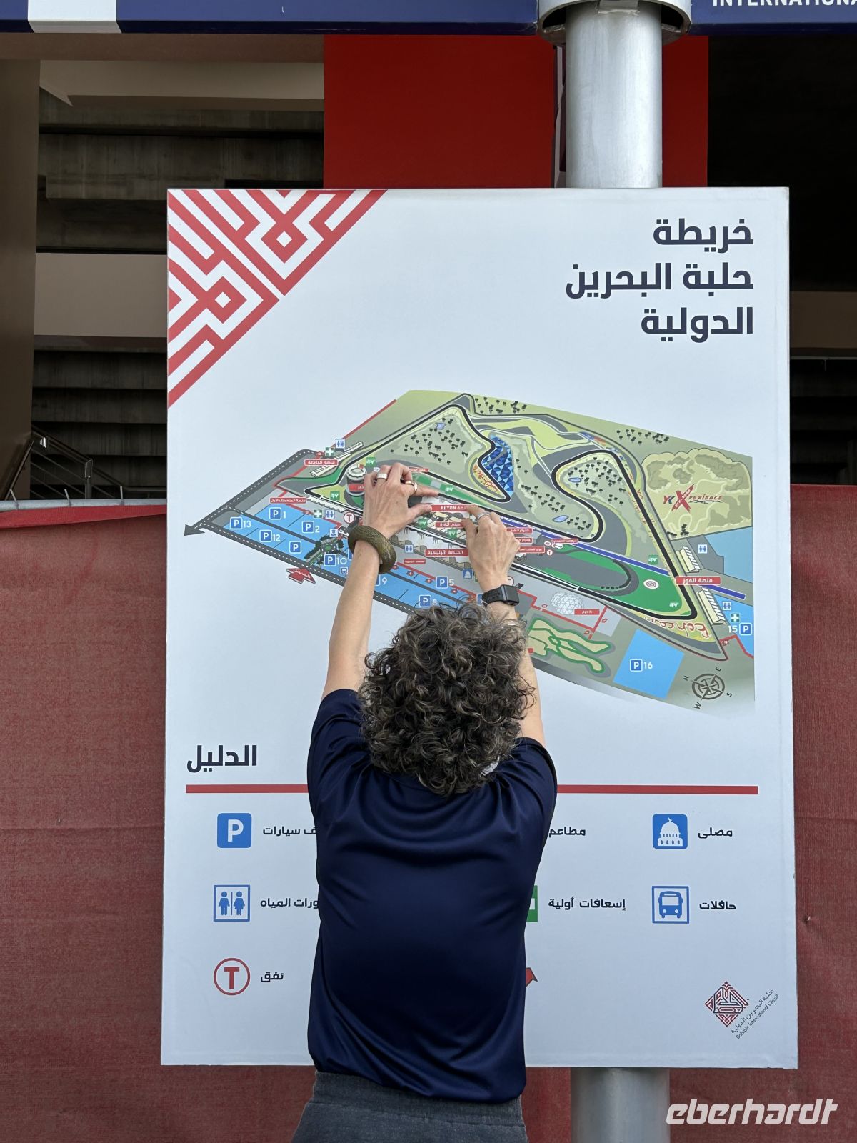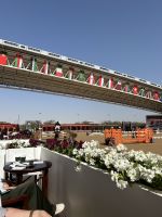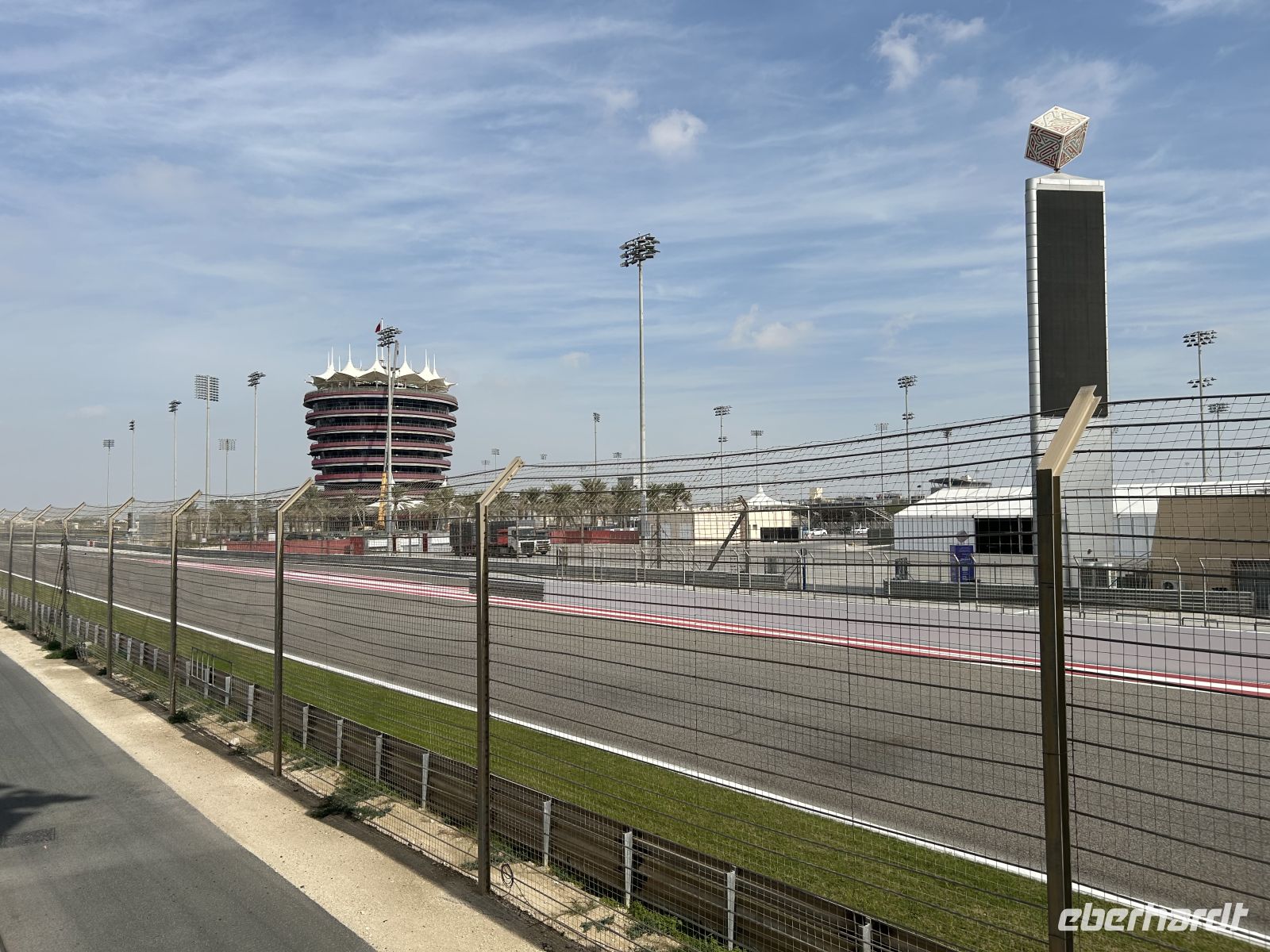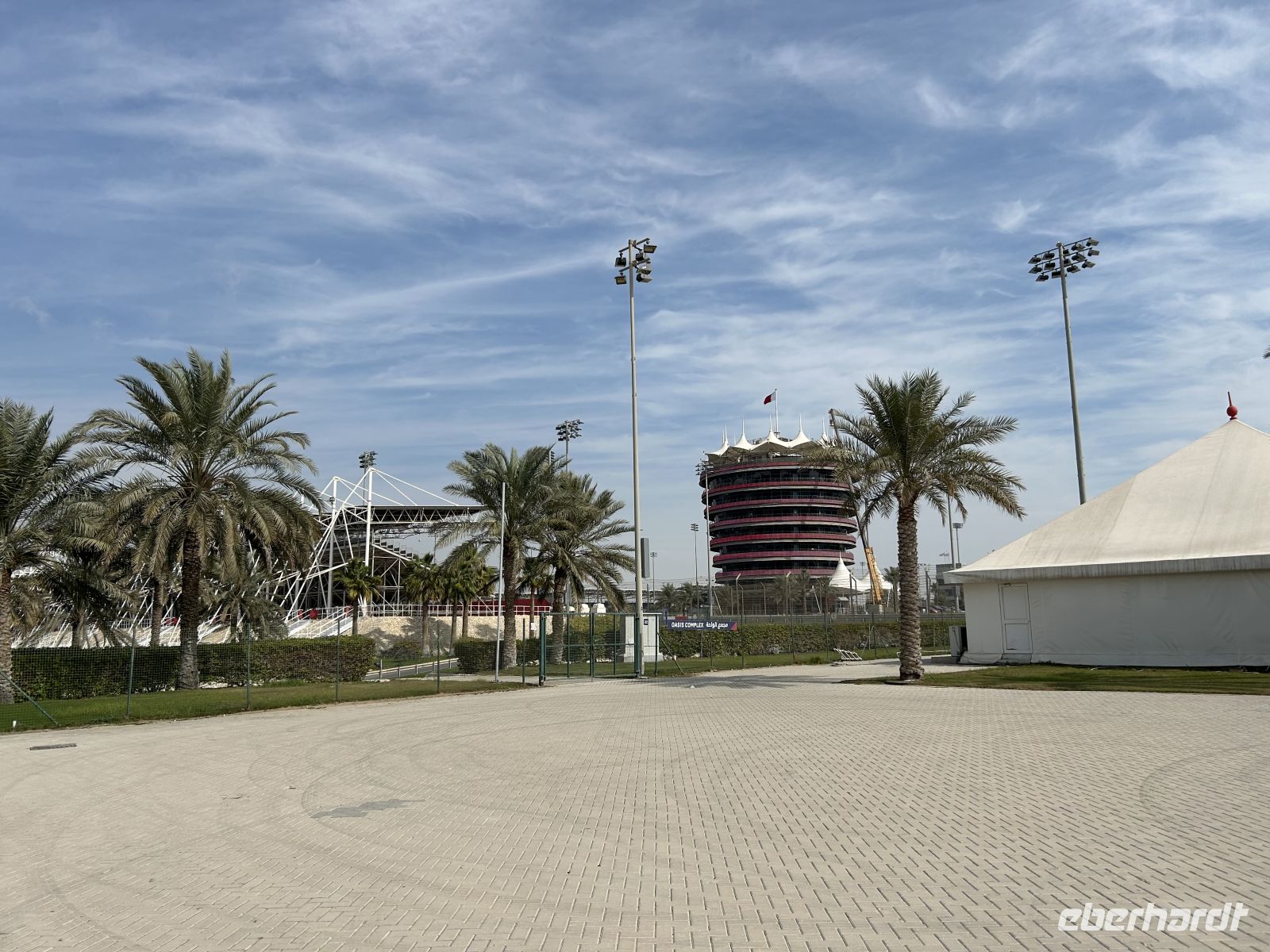 Dann wird es modern: der Bahrain International Circuit. Ein kurzer Spaziergang zu den Tribünen, Blick auf die Rennstrecke und den markanten Tower – Formel-1-Atmosphäre mitten in der Wüste.