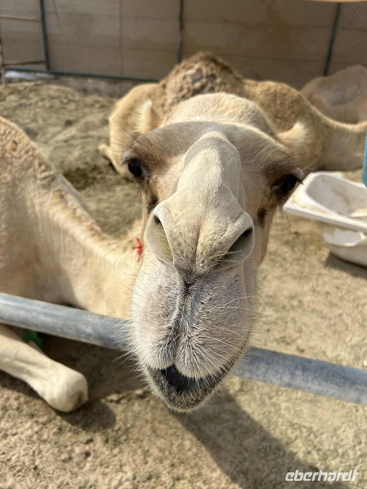 Ein Kontrast folgt sofort: eine kleine Kamelfarm, neugierige Blicke, sanfte Tiere, ein paar Fotos – und weiter.