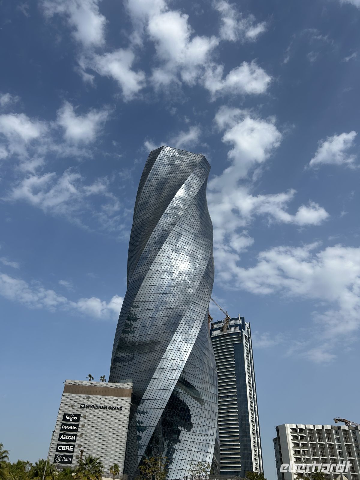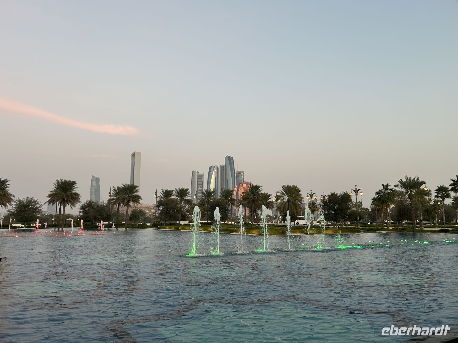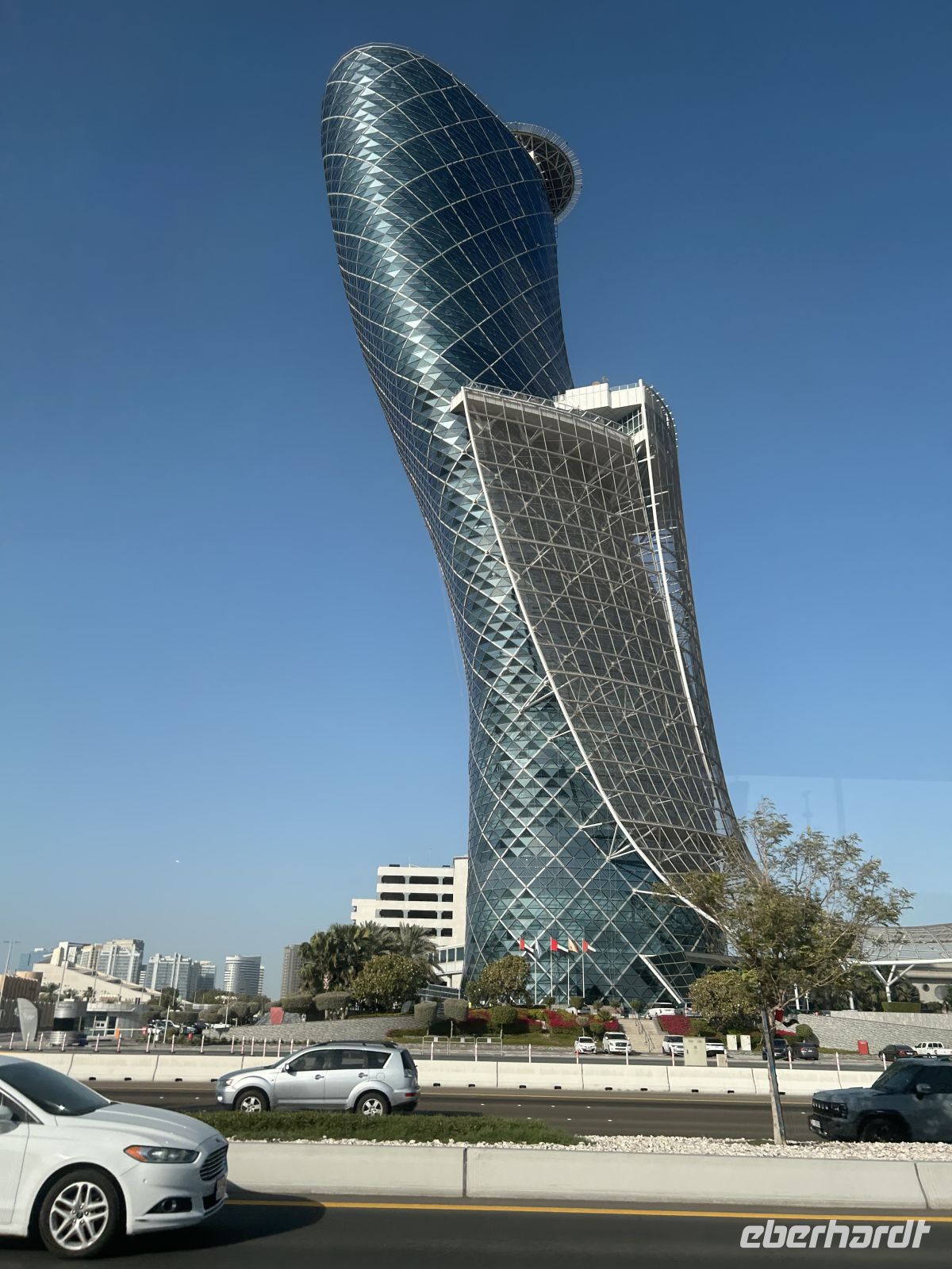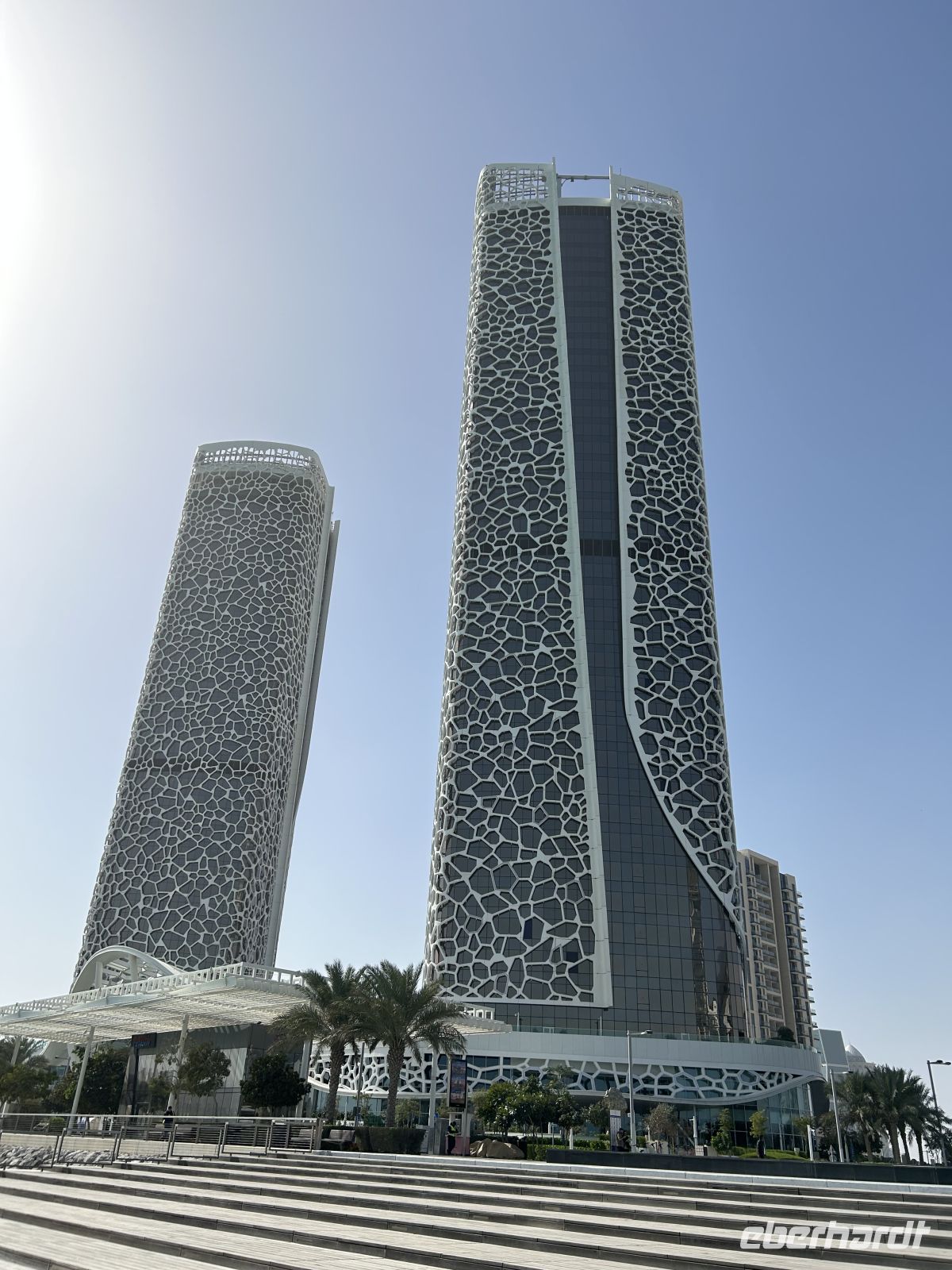 Nach dem Zimmerbezug geht es auf erste Entdeckungstour durch die Stadt in Richtung Etihad Towers. Unterwegs versorgt uns Ibrahim mit vielen wichtigen Informationen über die Vereinigten Arabischen Emirate und Abu Dhabi im Besonderen. Es wird gefragt, erklärt, diskutiert – ein idealer Einstieg, um dieses Land besser zu verstehen.