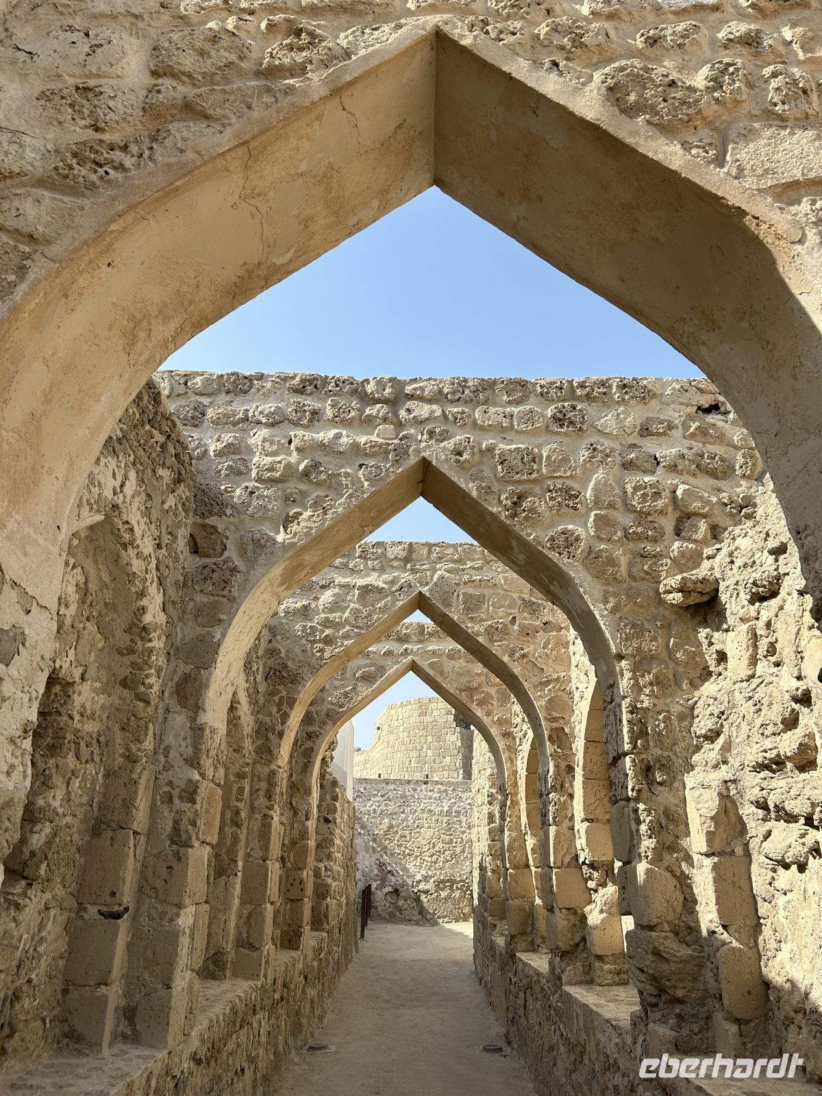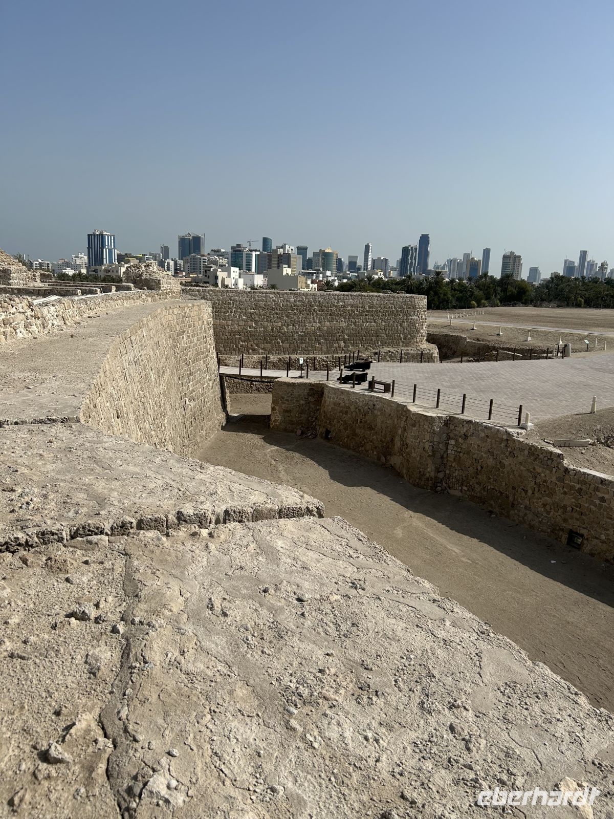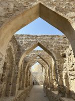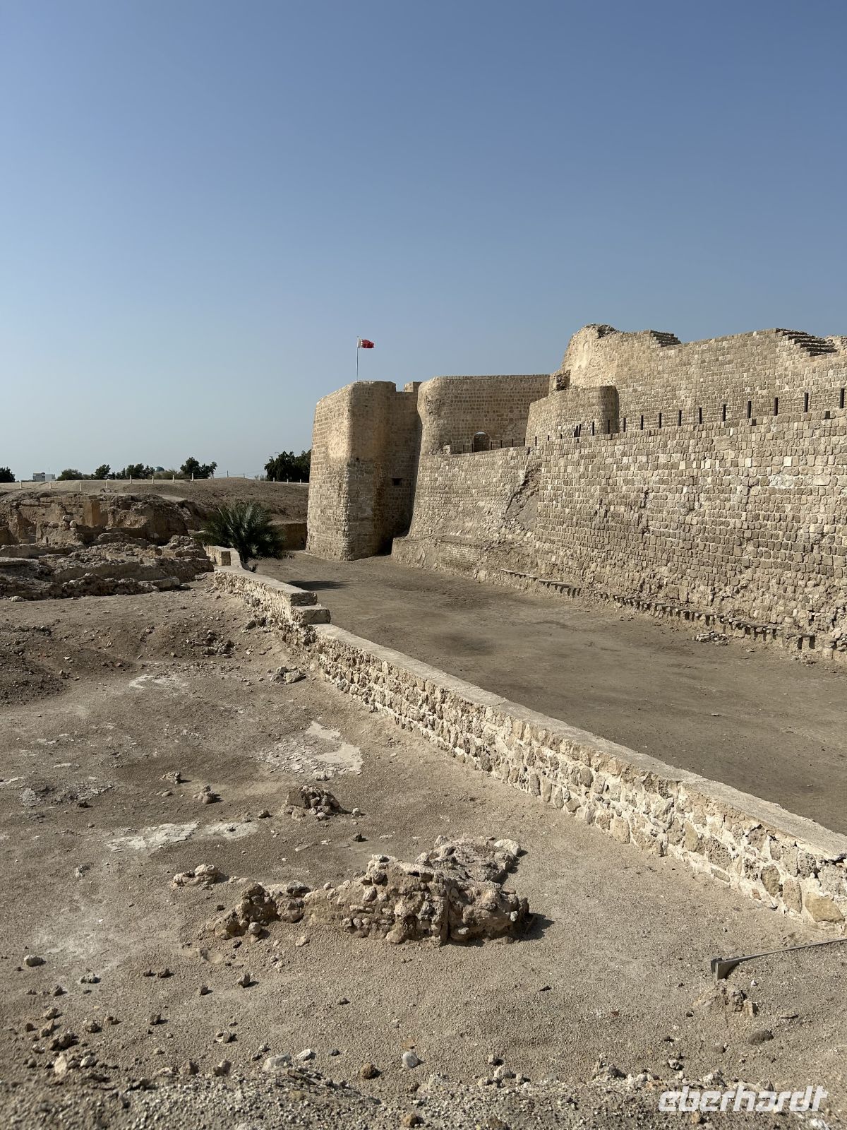 Dann erreichen wir das Bahrain Fort (Qal’at al-Bahrain) an der Nordküste. Hier tauchen wir ein in die Geschichte der Dilmun-Kultur, einer der ältesten Hochkulturen der Welt. Bereits vor über 4.000 Jahren war Bahrain ein bedeutendes Handelszentrum zwischen Mesopotamien und dem Industal. Das Fort selbst liegt auf einem archäologischen Hügel, unter dem sich Schicht um Schicht womöglich noch vergangene Siedlungen verbirgen. Beim Rundgang wird spürbar, wie eng hier Vergangenheit und Gegenwart miteinander verbunden sind: jahrtausendealte Mauern – und im Hintergrund die moderne Skyline. Ein beeindruckender Kontrast.