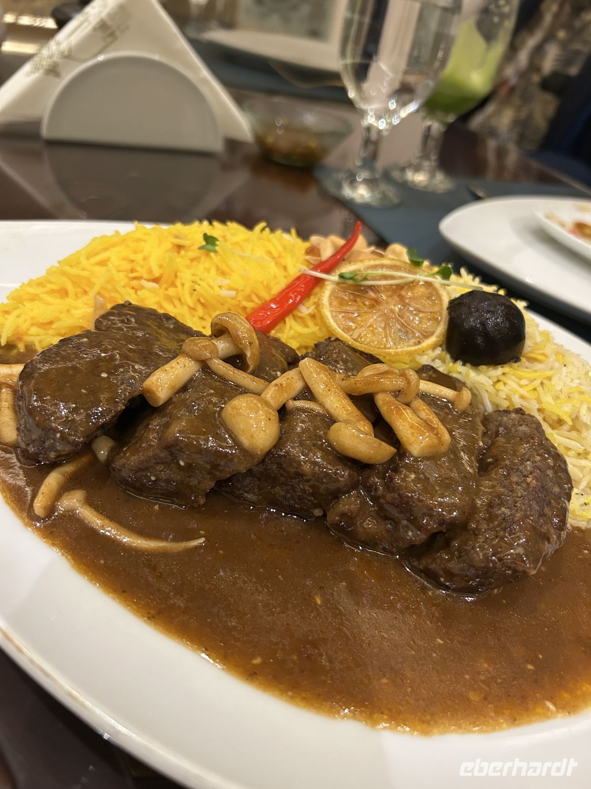 Zum Abschluss dieses langen, intensiven Tages kehren wir im Parisa Restaurant ein. In prachtvollem Ambiente genießen wir persische Spezialitäten – reichhaltig, aromatisch, wunderbar. Ein perfekter Ausklang. Doha hat heute viele Gesichter gezeigt. Und wir haben sie alle ein bisschen kennengelernt.