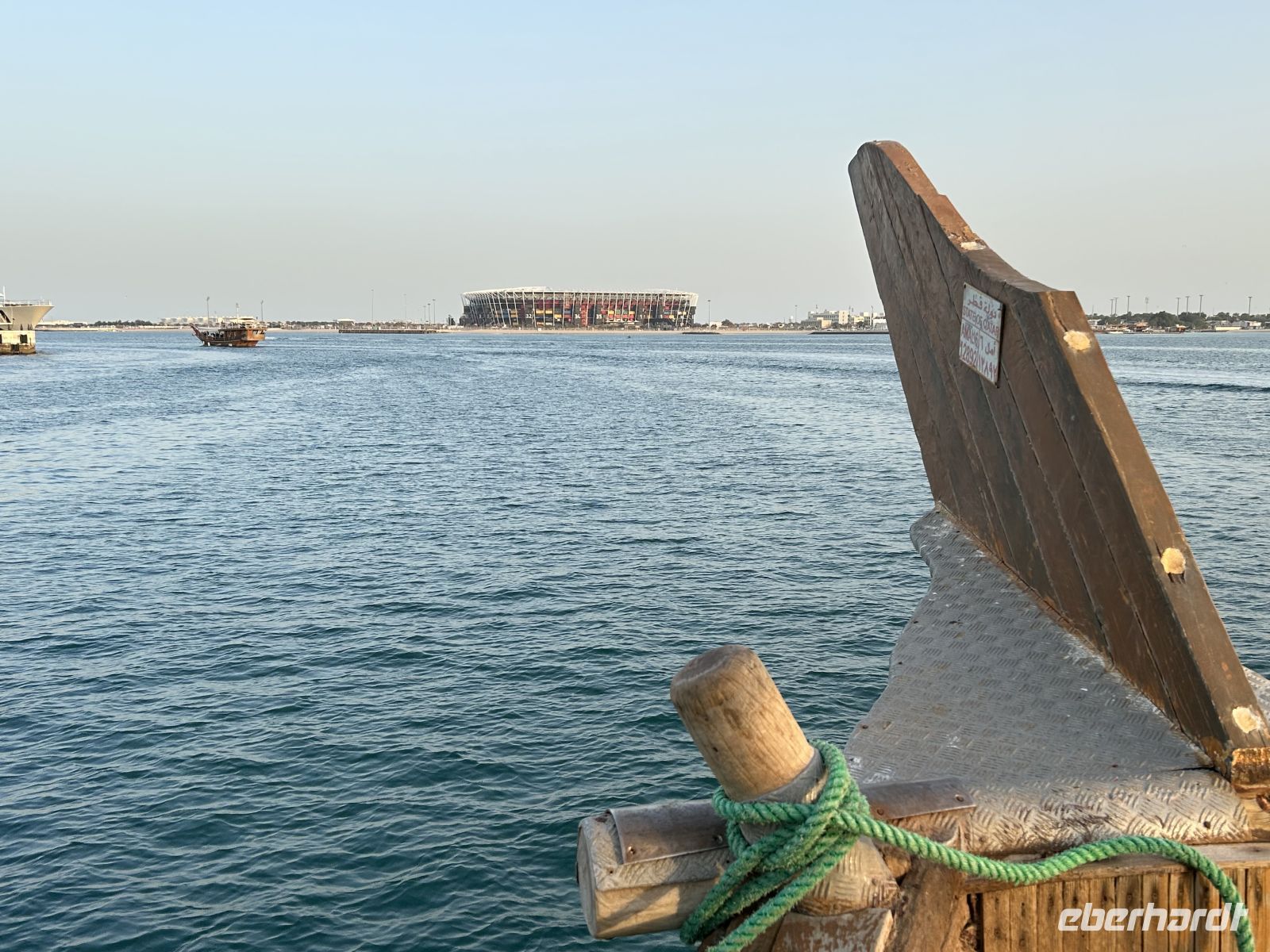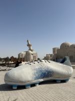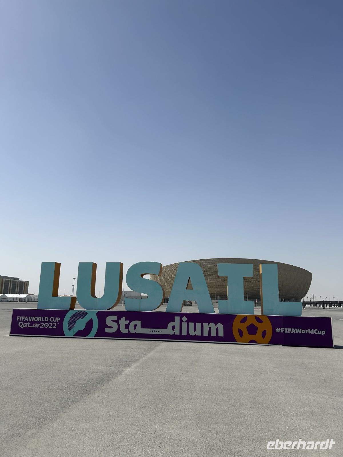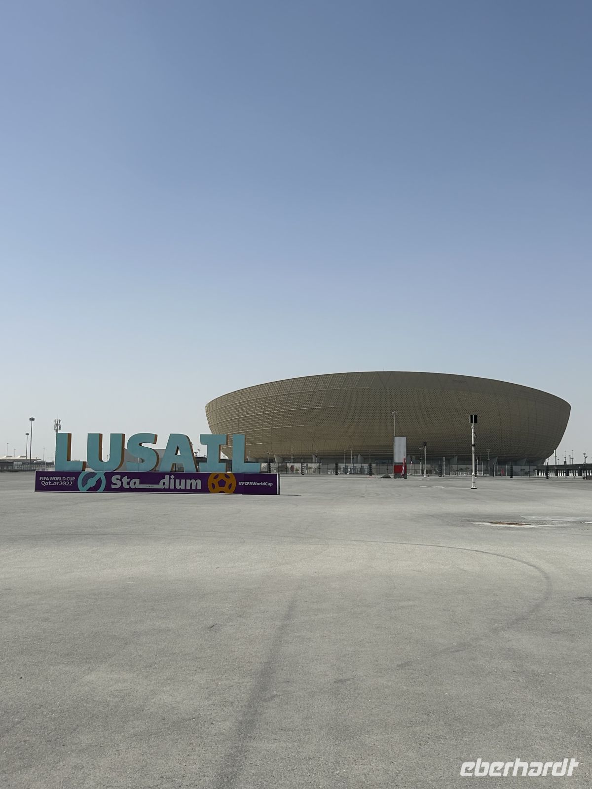 Wir streifen noch ein wenig durch Lusail und bestaunen die futuristische Architektur, großzügige Plätze und klare Linien. Über den Lusail Boulevard erreichen wir schließlich das Lusail Stadium, das größte Stadion des Landes und Austragungsort des WM-Finales 2022. Allein die Dimensionen sind beeindruckend.