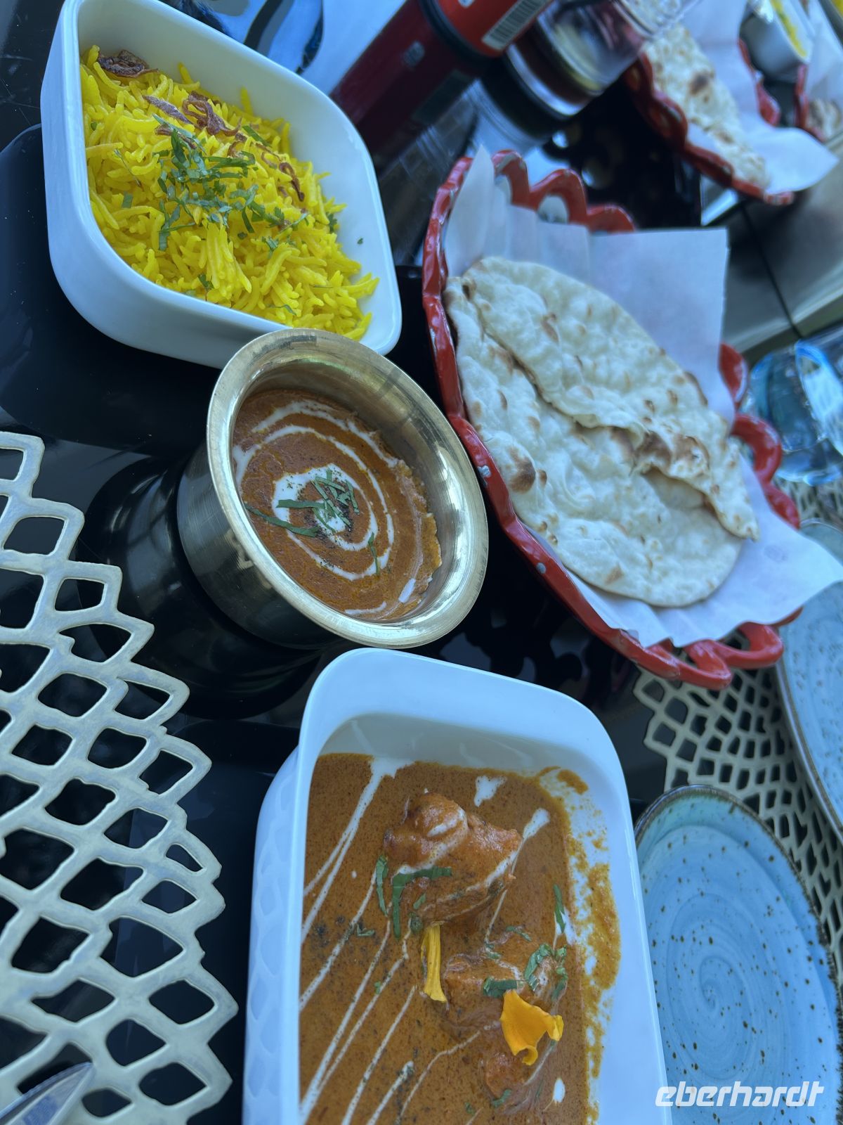 So viele Eindrücke machen hungrig. Zeit fürs Mittagessen – und was für eines: Im Ishkar360 erwartet uns ein indisches Menü der Spitzenklasse. Aromatisch, fein abgestimmt, hervorragend präsentiert. Dazu der Blick aus der 42. Etage über die Stadt. Ein echtes Highlight.