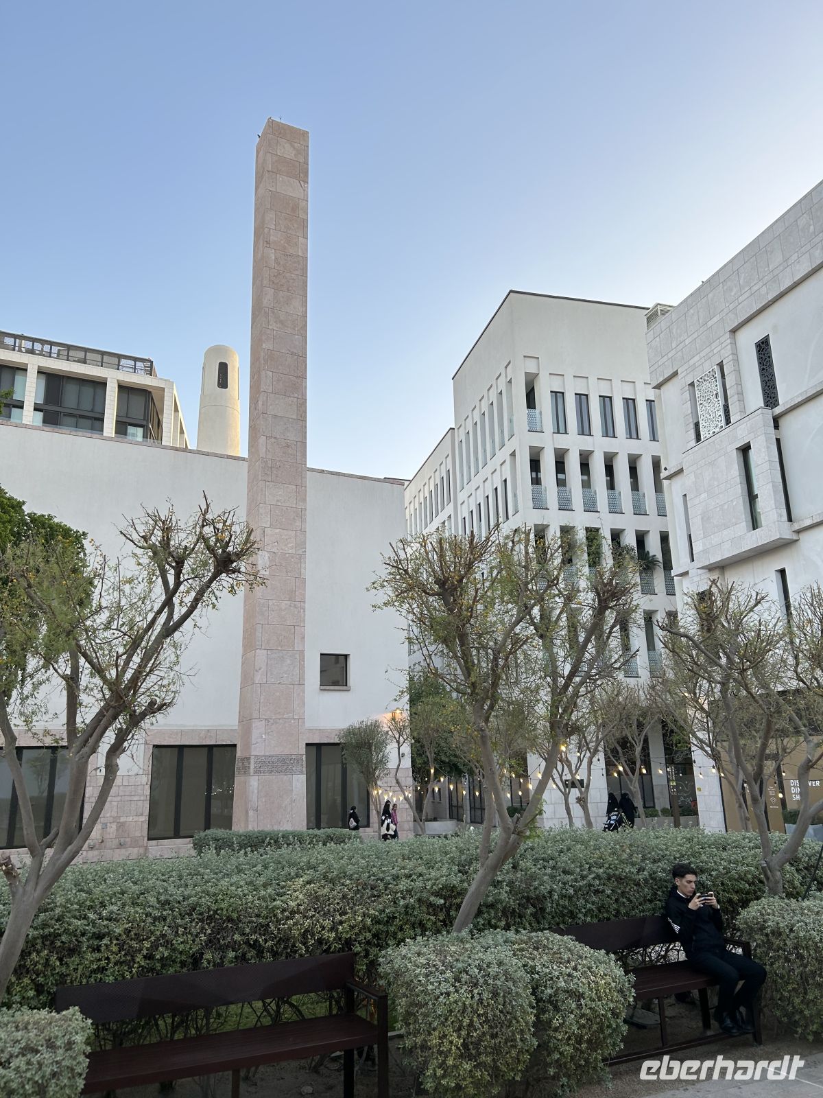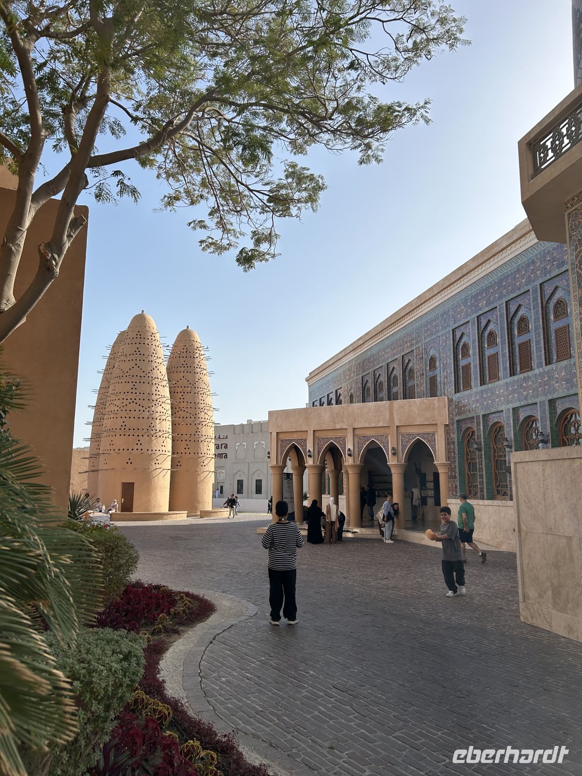 Hier steigen wir um in die Tram und drehen eine Runde durch dieses neu entwickelte Viertel. Msheireb ist ein Vorzeigeprojekt für nachhaltige Stadtentwicklung: energieeffizient, autoarm, smart geplant, mit traditionellen Elementen der arabischen Architektur modern interpretiert. Alles wirkt durchdacht, ruhig und überraschend lebenswert.