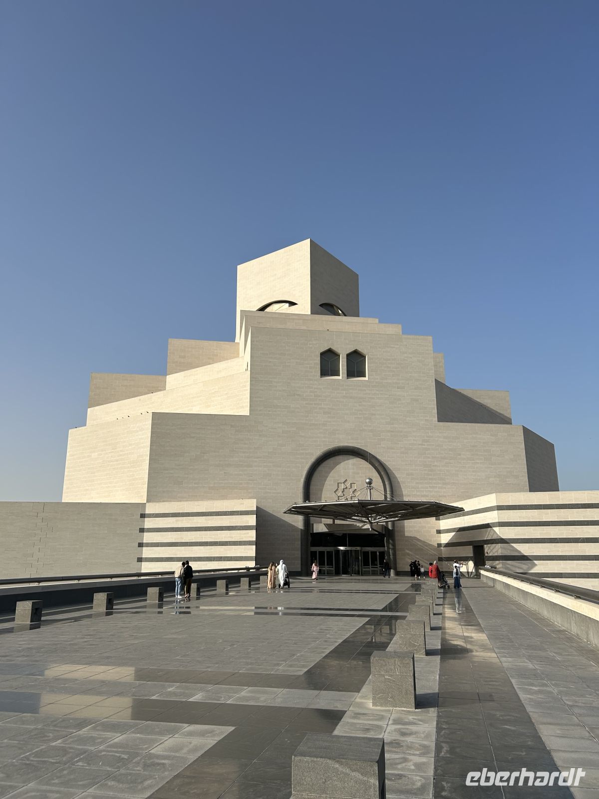 Unser letzter kultureller Höhepunkt ist das Museum of Islamic Art (MIA). Schon das Gebäude selbst ist ein Kunstwerk: entworfen von Stararchitekt I. M. Pei, klar, geometrisch, zeitlos. Innen beeindruckt die Sammlung mit kostbaren Manuskripten, Keramiken, Metallarbeiten und Schmuck aus der gesamten islamischen Welt. Ein ruhiger, würdiger Ort – perfekt für den Abschluss unseres kulturellen Programms.
