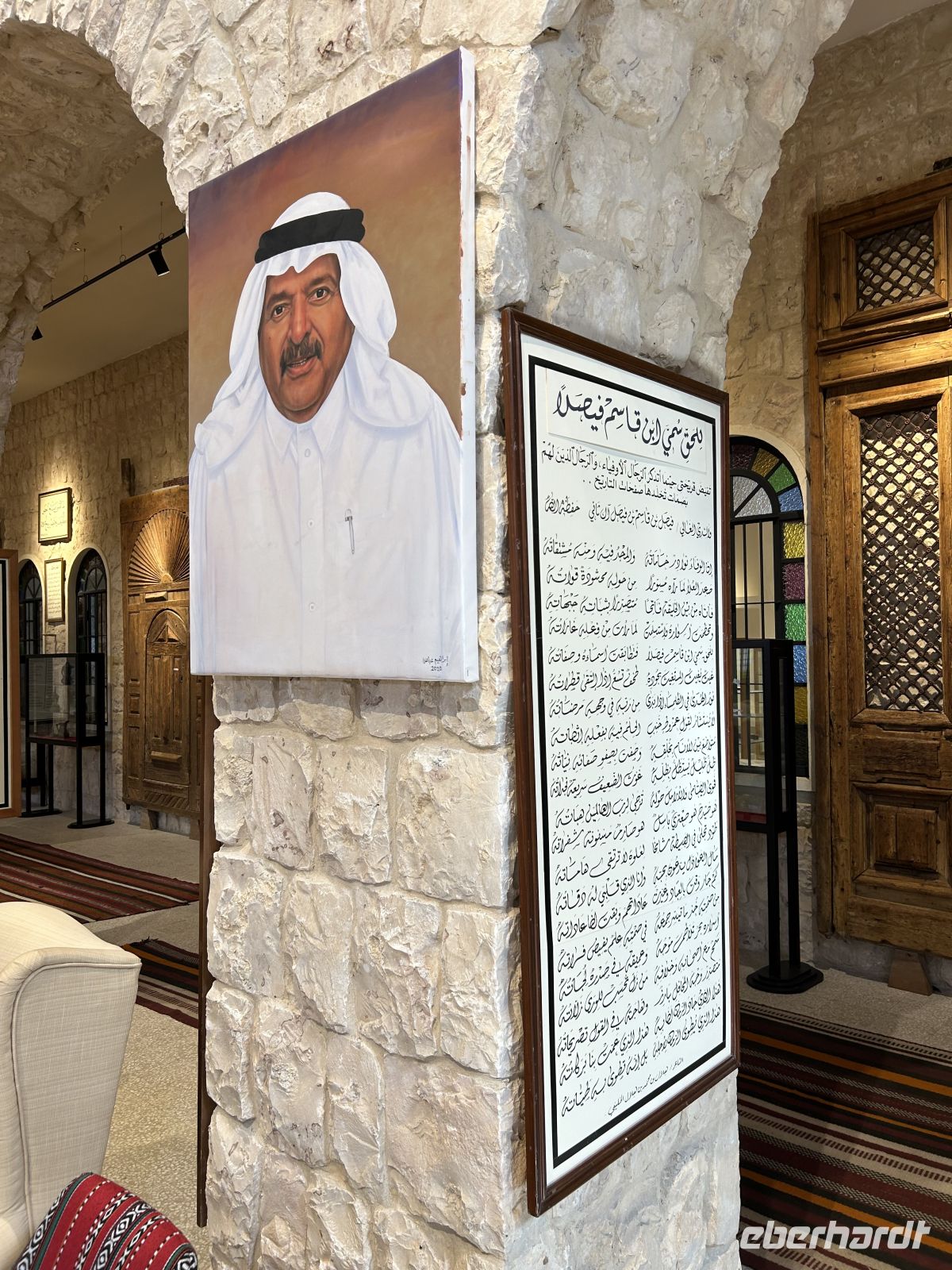 Das absolute Sahnehäubchen: Sheikh Faisal Bin Qassim Al Thani ist höchstpersönlich vor Ort. Wir bedanken uns für dieses außergewöhnliche Museum, er freut sich über unseren Besuch – und ein gemeinsames Gruppenfoto darf natürlich nicht fehlen. Ein Moment, den man nicht planen kann.