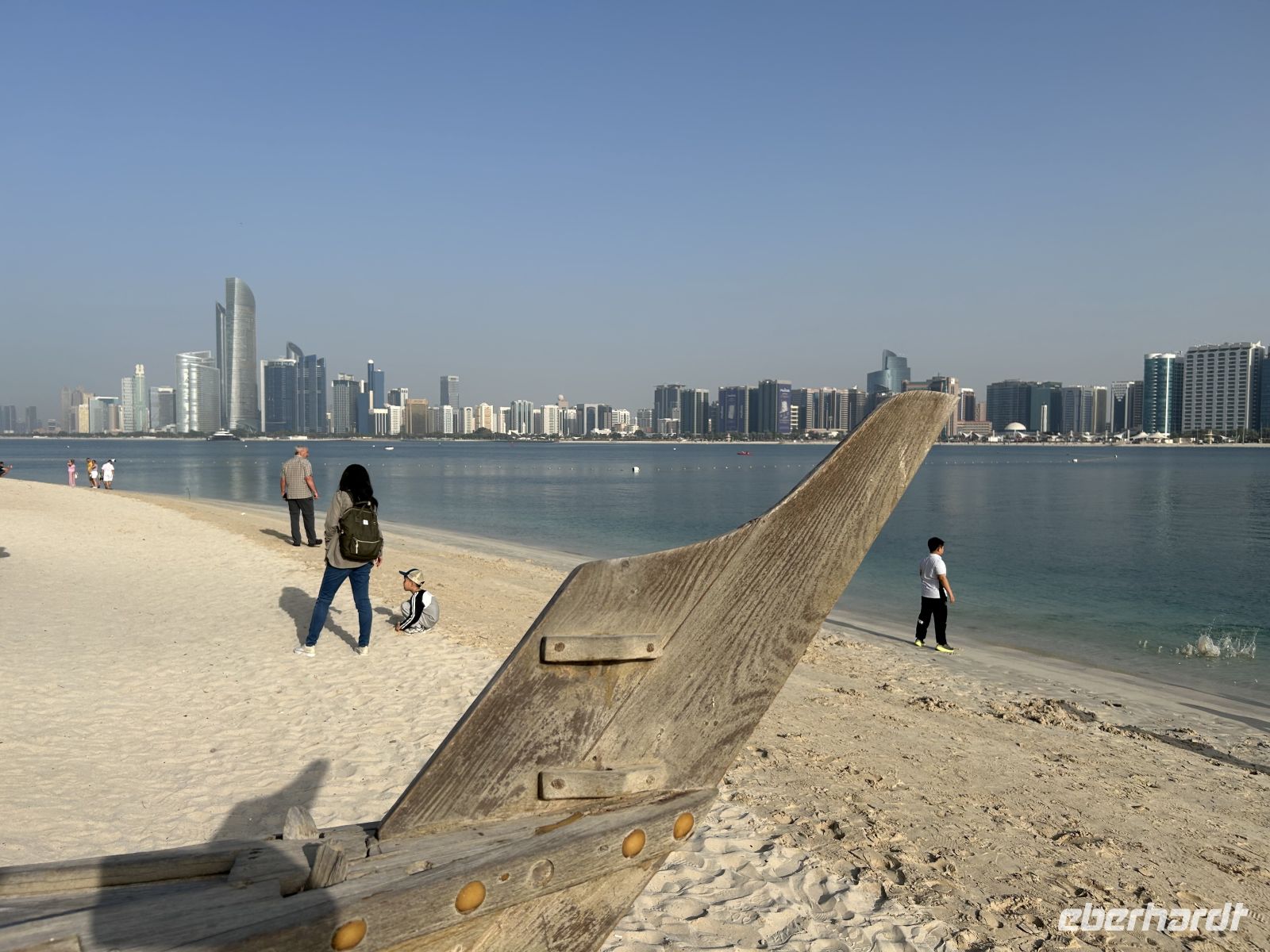 Weiter geht es zum Heritage Village auf Breakwater Island. Der eigentliche Star hier ist weniger die Anlage selbst als vielmehr der Blick: eine wunderbare Perspektive auf die Skyline von Abu Dhabi, perfekt für Fotos und einen kurzen Moment des Innehaltens.