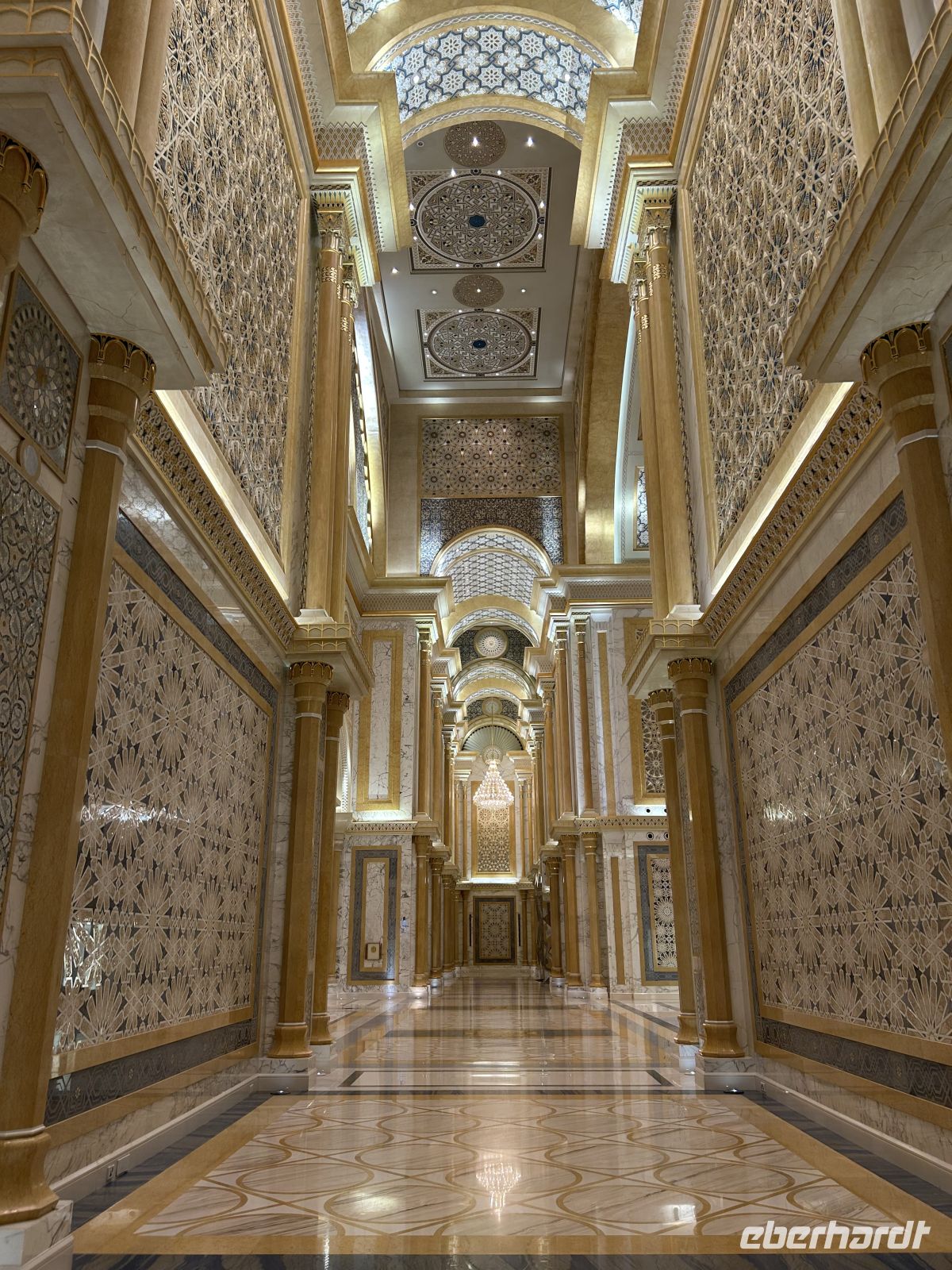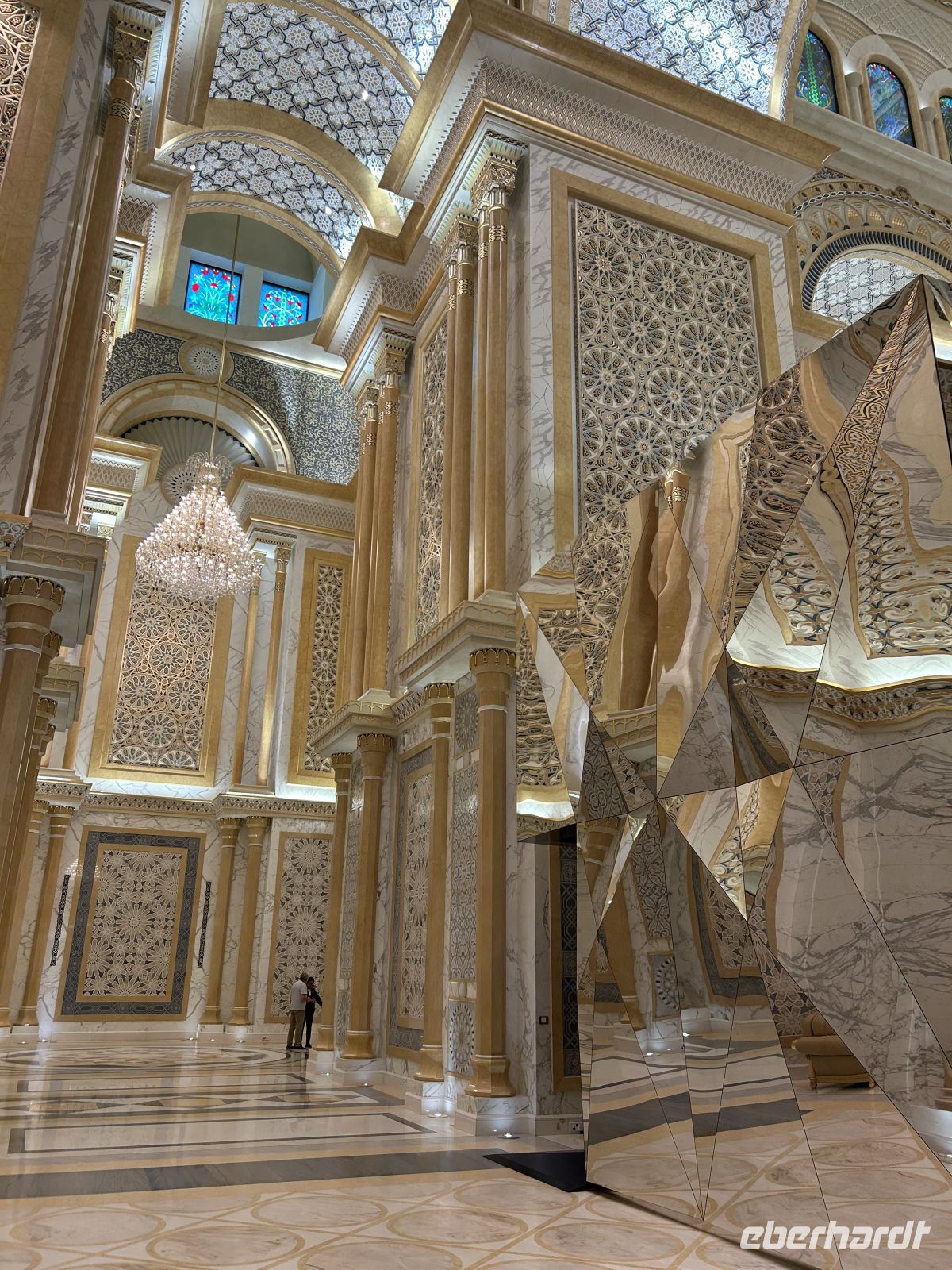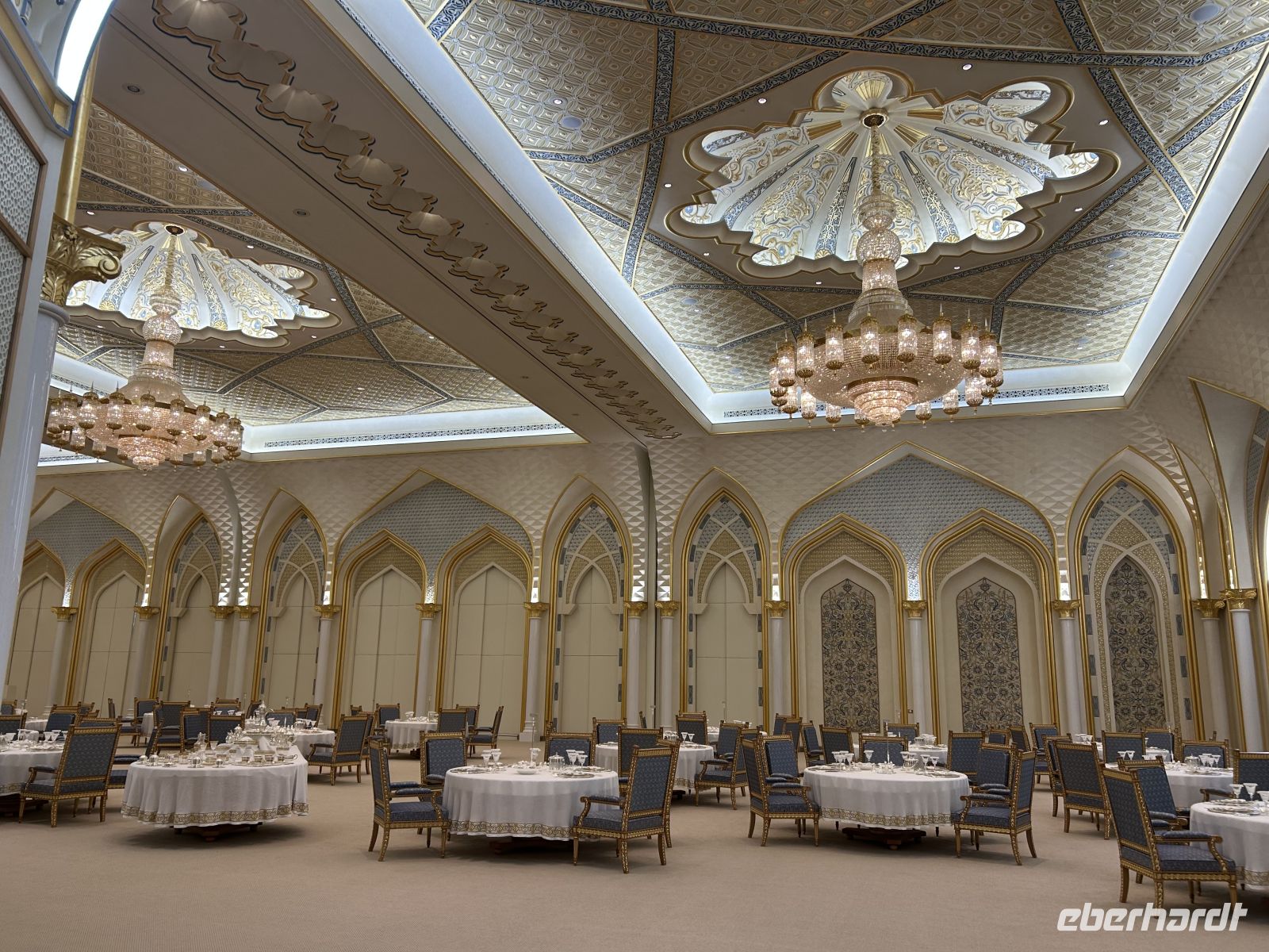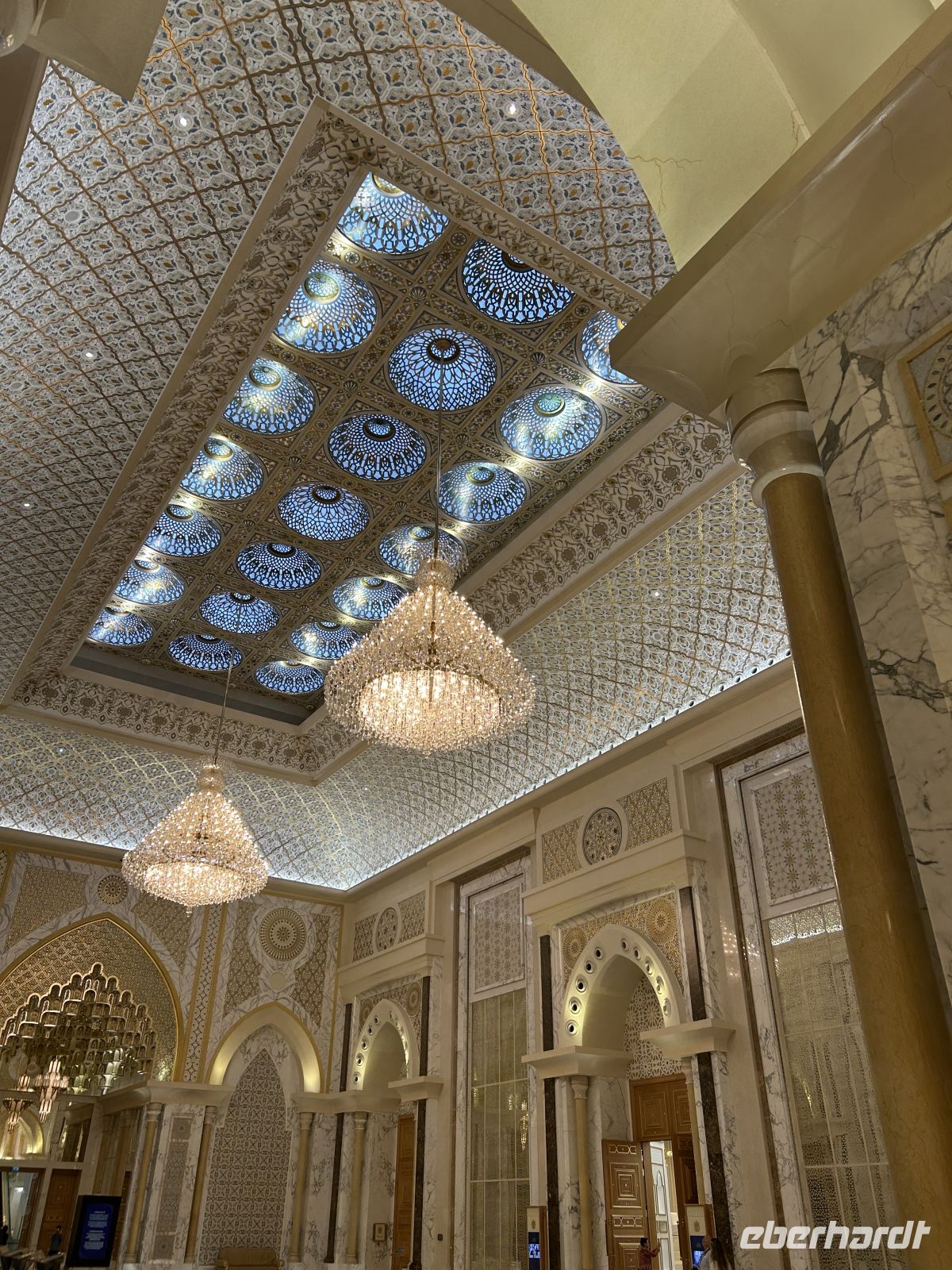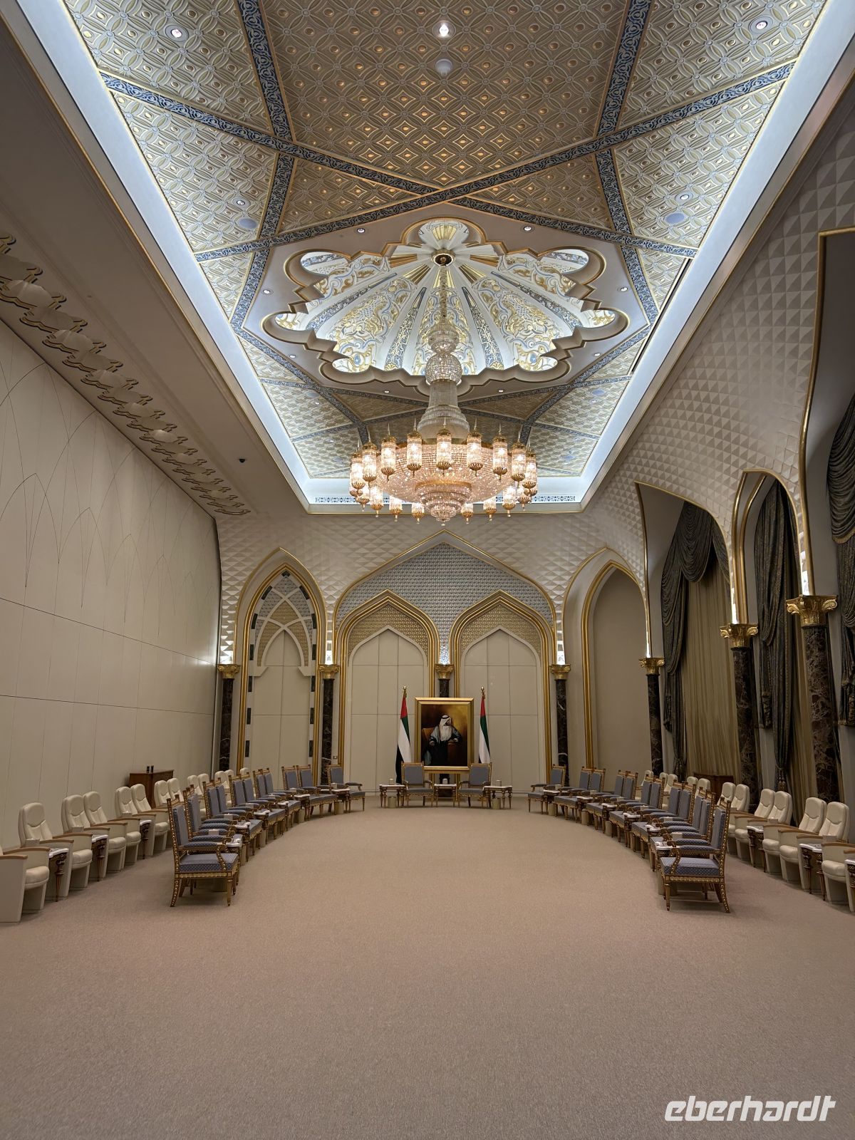 Der absolute Höhepunkt des Tages wartet jedoch am Nachmittag: der Besuch des Qasr Al Watan, des Präsidentenpalastes. Schon von außen beeindruckend, entfaltet er im Inneren seine ganze Wirkung. Prunkvolle Hallen, gewaltige Kuppeln, feinste Ornamente und viel Symbolik. Qasr Al Watan ist kein Wohnpalast, sondern ein Ort der Staatsrepräsentation, des Dialogs und der Bildung. Hier wird politische Geschichte erzählt, Wissen vermittelt und gleichzeitig die kulturelle Identität der VAE gezeigt.