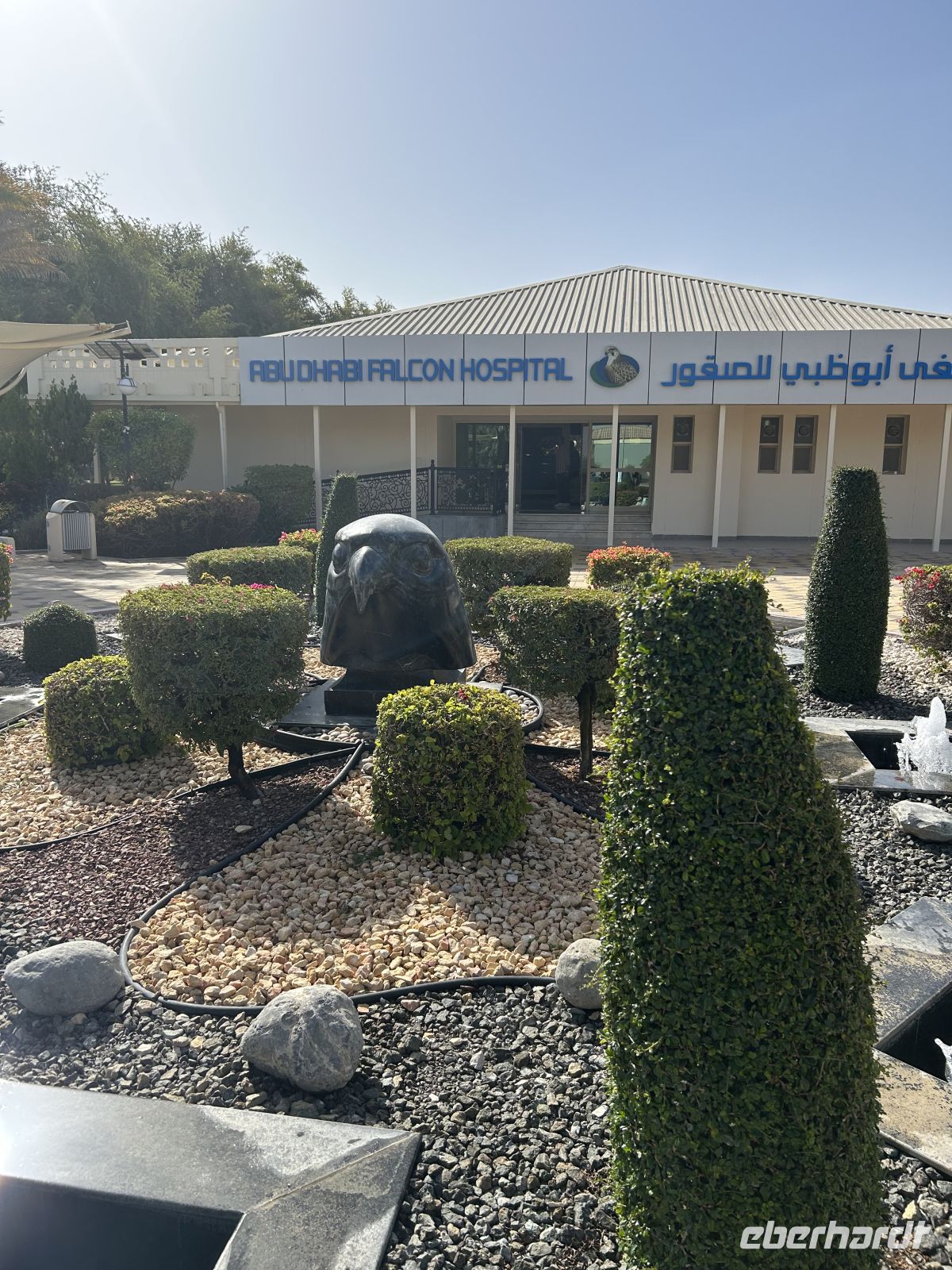 Unser erstes Ziel ist das Abu Dhabi Falcon Hospital, weltweit eines der führenden Spezialkrankenhäuser für Falken. Die Tiere sind in den Emiraten weit mehr als nur Vögel: Sie sind Statussymbol, Jagdpartner und tief verwurzelter Teil der Kultur. Gegründet wurde das Krankenhaus von Dr. Müller, einer deutschen Tierärztin, die in den 1990er-Jahren nach Abu Dhabi kam. Mit Fachwissen, Respekt vor der lokalen Kultur und viel Herzblut gewann sie das Vertrauen der Emiratis – und schuf eine Einrichtung, die heute international Maßstäbe setzt.