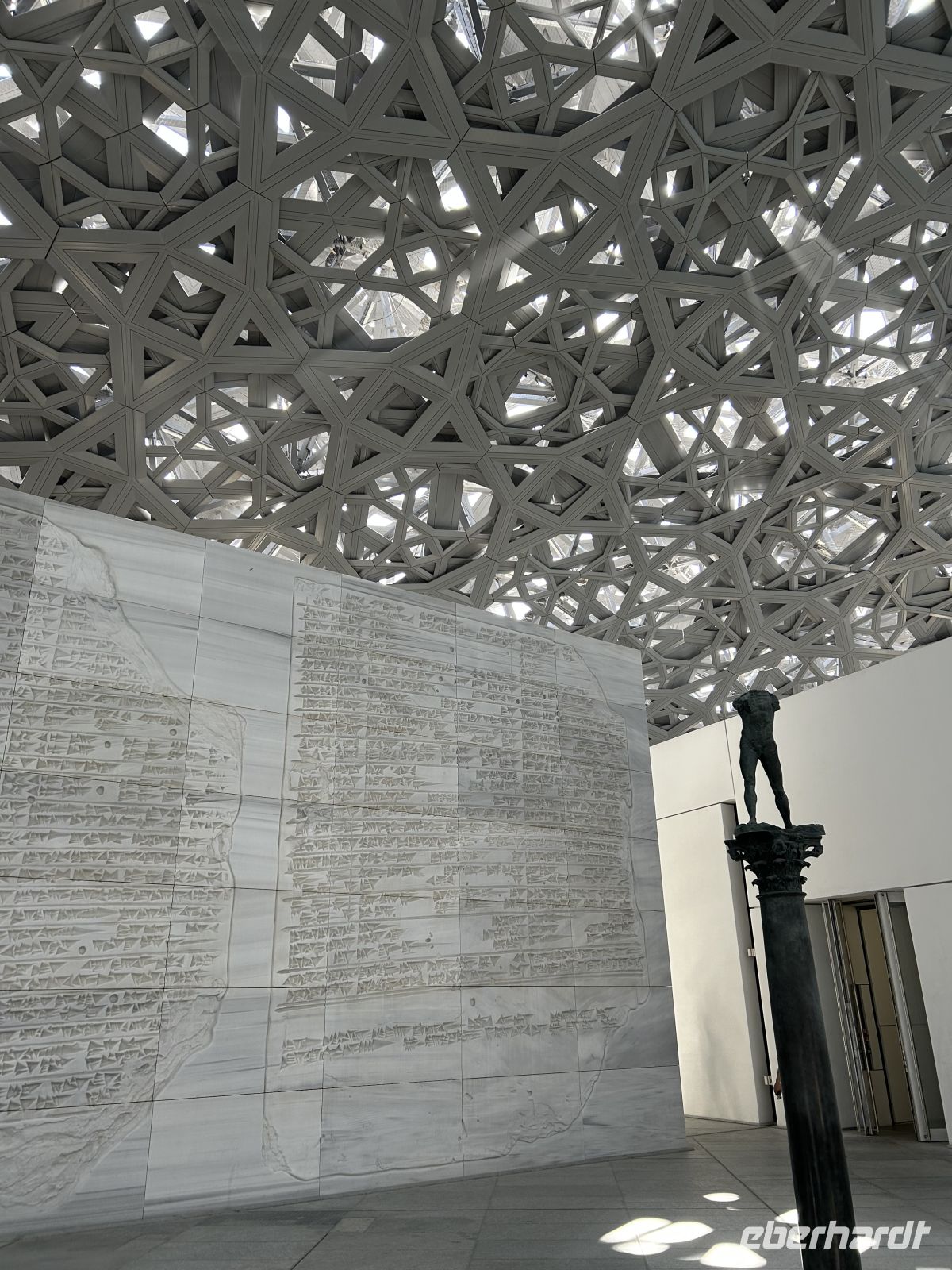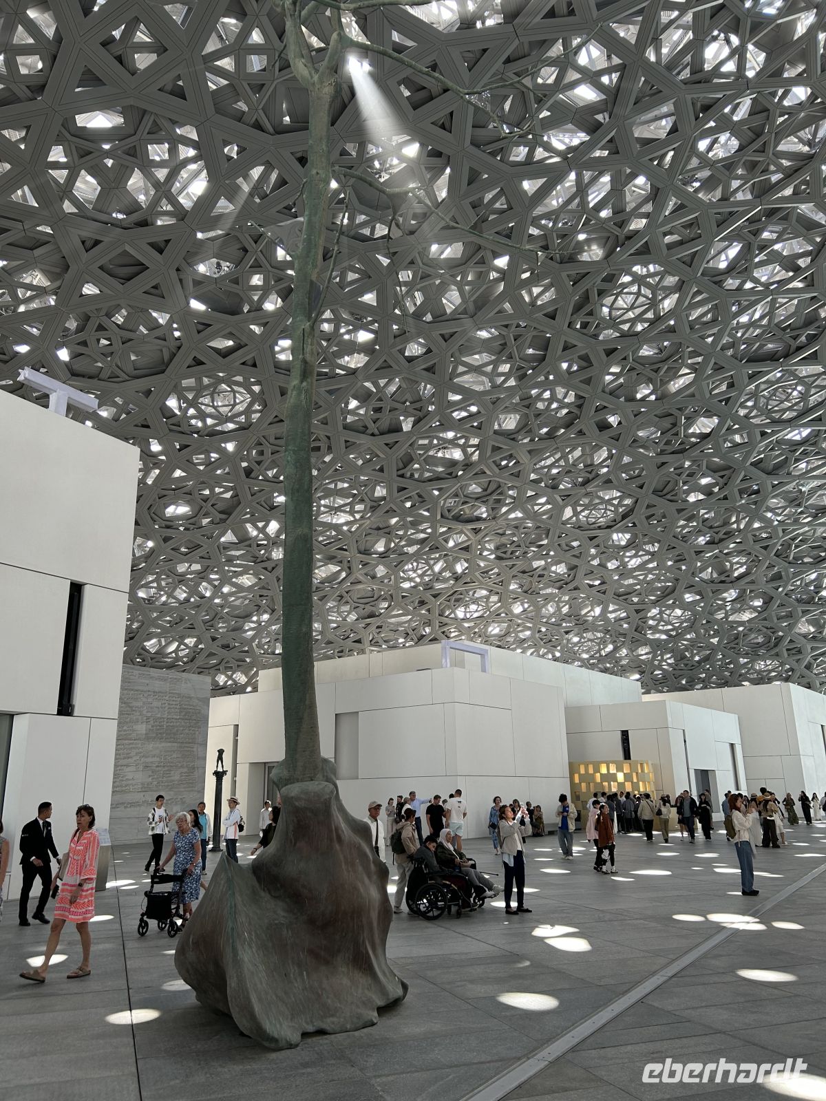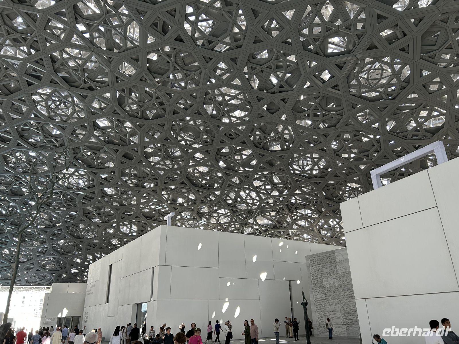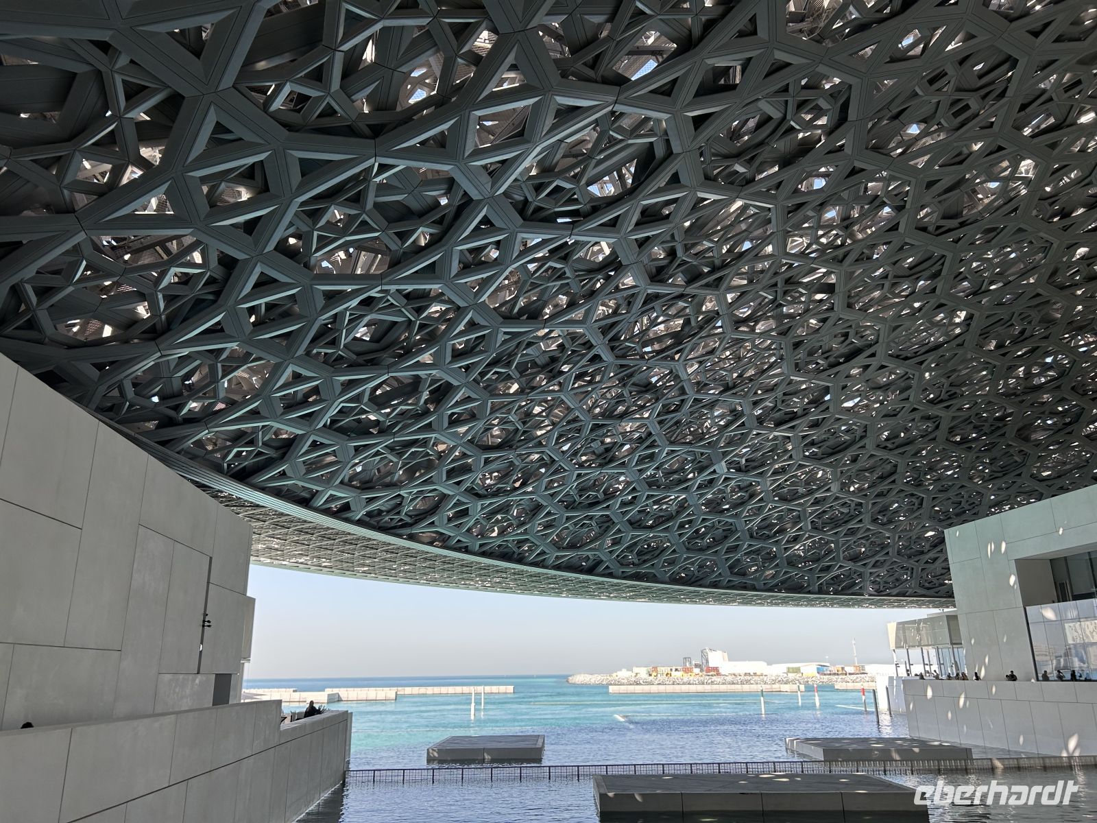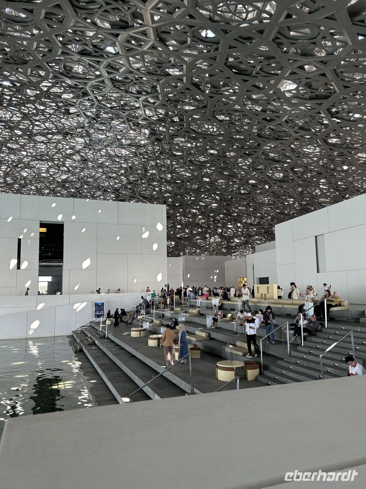 Wir besuchen zunächst den Louvre Abu Dhabi. Schon die Architektur begeistert: der riesige, scheinbar schwebende Kuppelbau, durch den das Licht wie ein „Lichtregen“ fällt. Innen erwartet uns eine hervorragend kuratierte Sammlung, die Kulturen und Epochen miteinander verbindet. Besonders beeindruckend ist die temporäre Picasso-Ausstellung, die viele von uns nachhaltig in ihren Bann zieht.