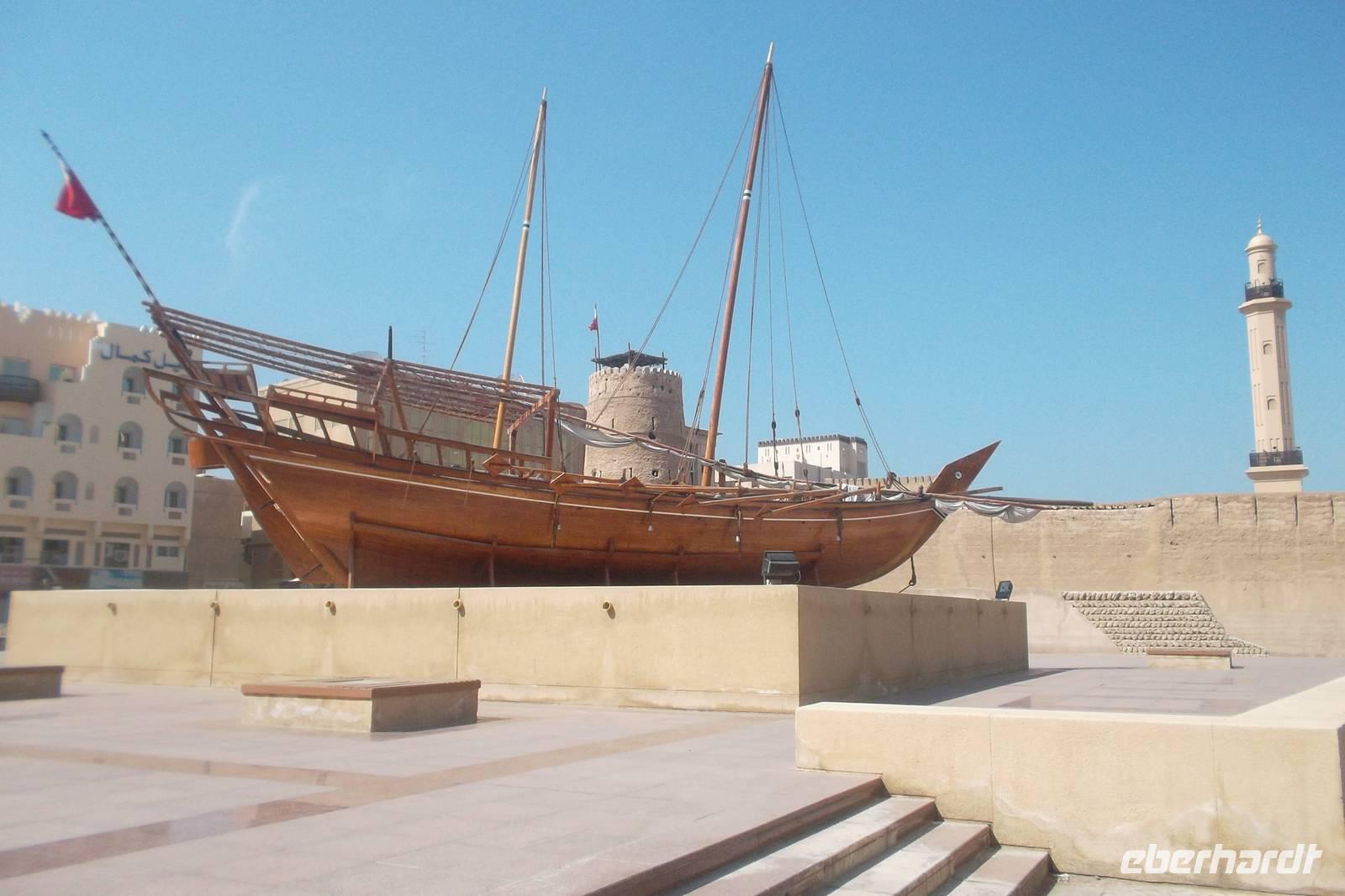 Zum Abendessen fuhren wir zum Lande- und Liegeplatz der Dhaus. Einst beherrschten diese arabischen Segelboote den persischen Golf und machten Dubai und Sharjah zu Zentren des Perlenhandels, zeitweise aber auch zu gefürchteten Piratennestern.