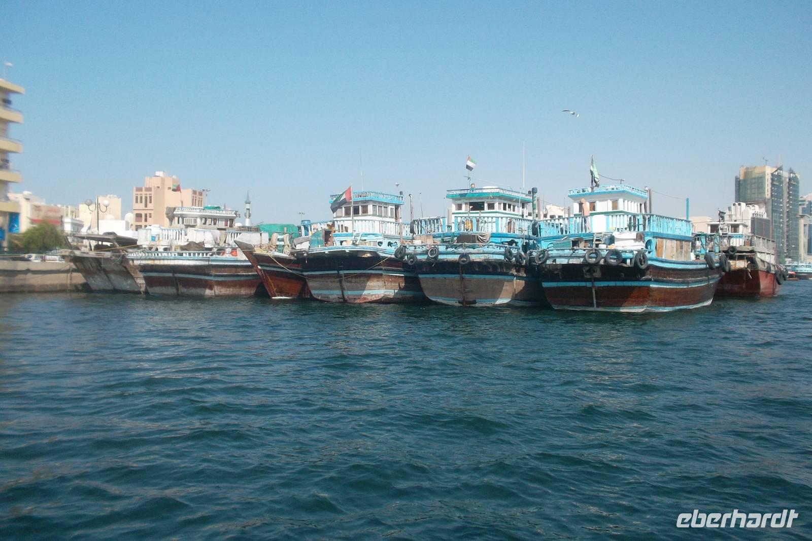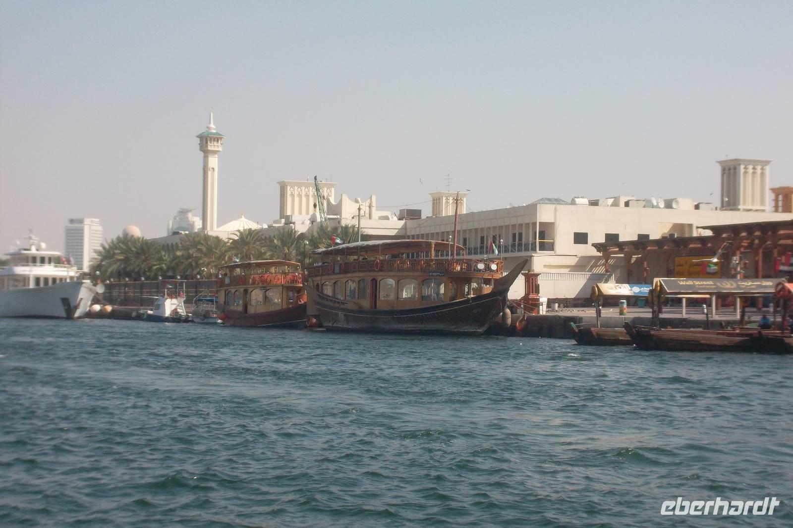 Das ist heute nicht mehr ganz so deutlich zu spüren: große, bunt erleuchtete Restaurantschiffe befahren abends den Dubai-Creek und bieten leckere Buffets an, die man sich schmecken lässt, während die Boote zu einer von Diskomusik begleiteten Runde durch den Flusshafen gleiten...