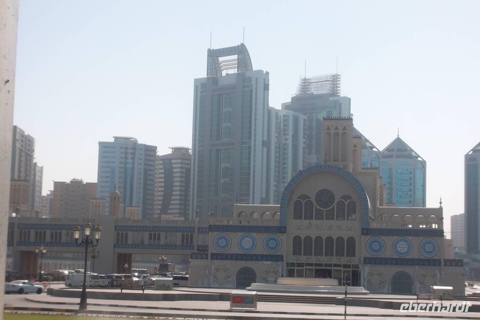In unsere heutige Rundfahrt konnten wir noch einige kleine Extras einbauen, den Besuch des interessanten Fischmarktes etwa, an dem der nachts frisch im Persischen Golf gefangene Fisch feilgeboten wird. Der nächste Stopp führte uns zum „Blauen Soukh" - als Zentralsoukh des Emirates Sharjah spiegelt er mit seinen bunten Kacheln und den markant hervorstehenden „Windtürmen" die maßgeblich vom Landesherrn des Emirats geförderte neo-arabische Architektur wider. Die Kunstliebe des Emirs hat auch die Gestaltung seiner Hauptstadt - z.B. am Koran-Platz mit Moschee, Bibliothek und Kulturpalast - beeinflusst. Dann ging es an den Golf von Oman weiter, wo wir unsere Freizeit zu einem angenehmen Badeaufenthalt am feinsandigen, überaus sauberen und fast menschenleeren Strand nutzen konnten.