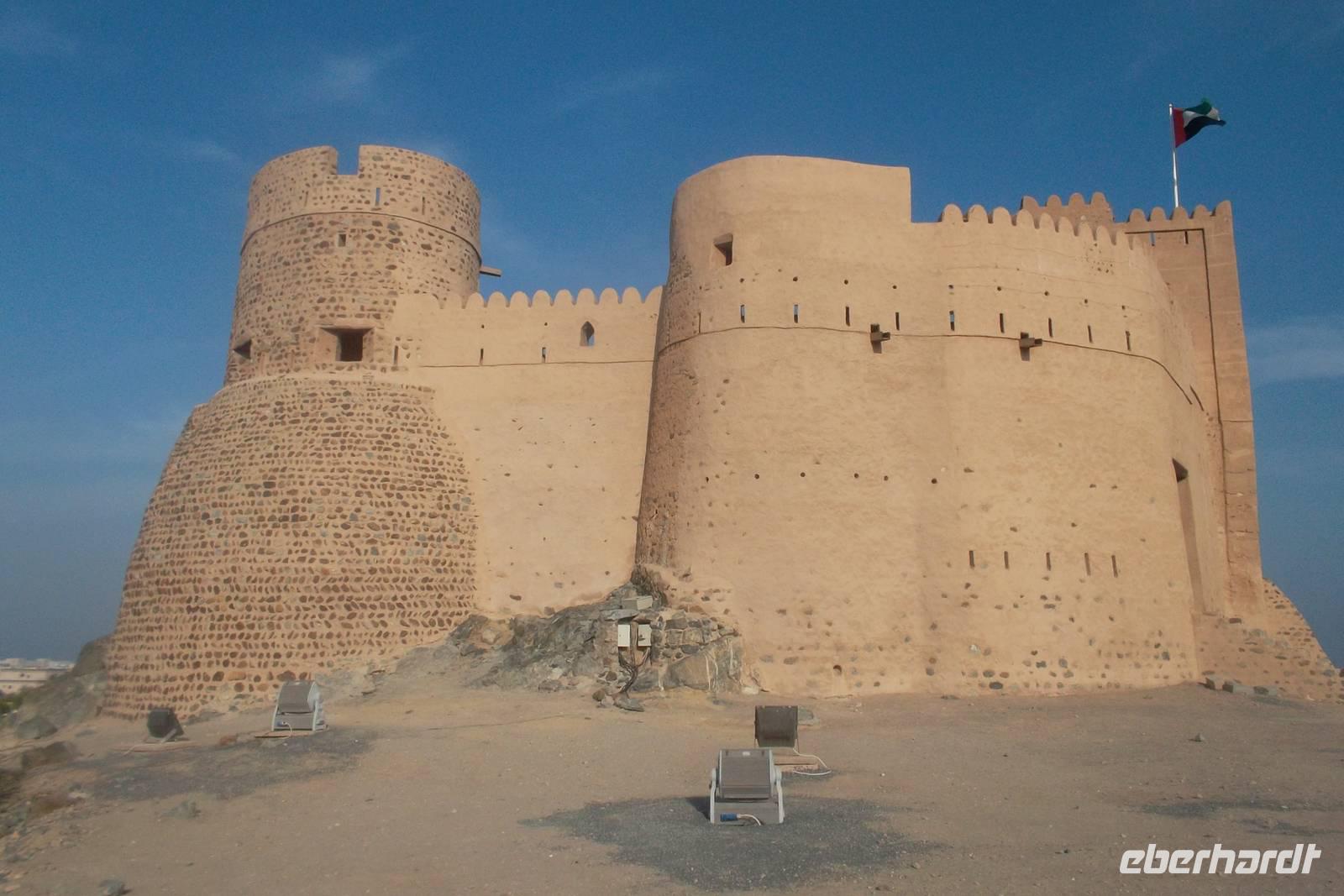 Einen ebensolchen, zudem wehrhaften Eindruck machte auch das historische Fujairah-Fort. Hier, an der größten erhaltenen historischen Festung der Emirate, wird gerade ein Museumsdorf aus Lehmziegeln - wohl die Rekonstruktion einer altarabischen Siedlung - gebaut.