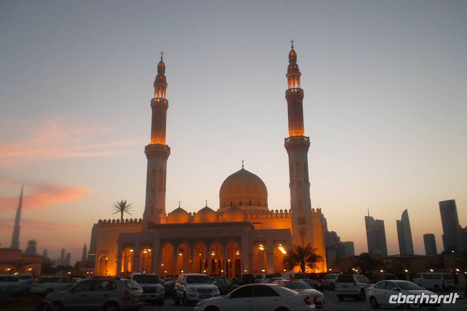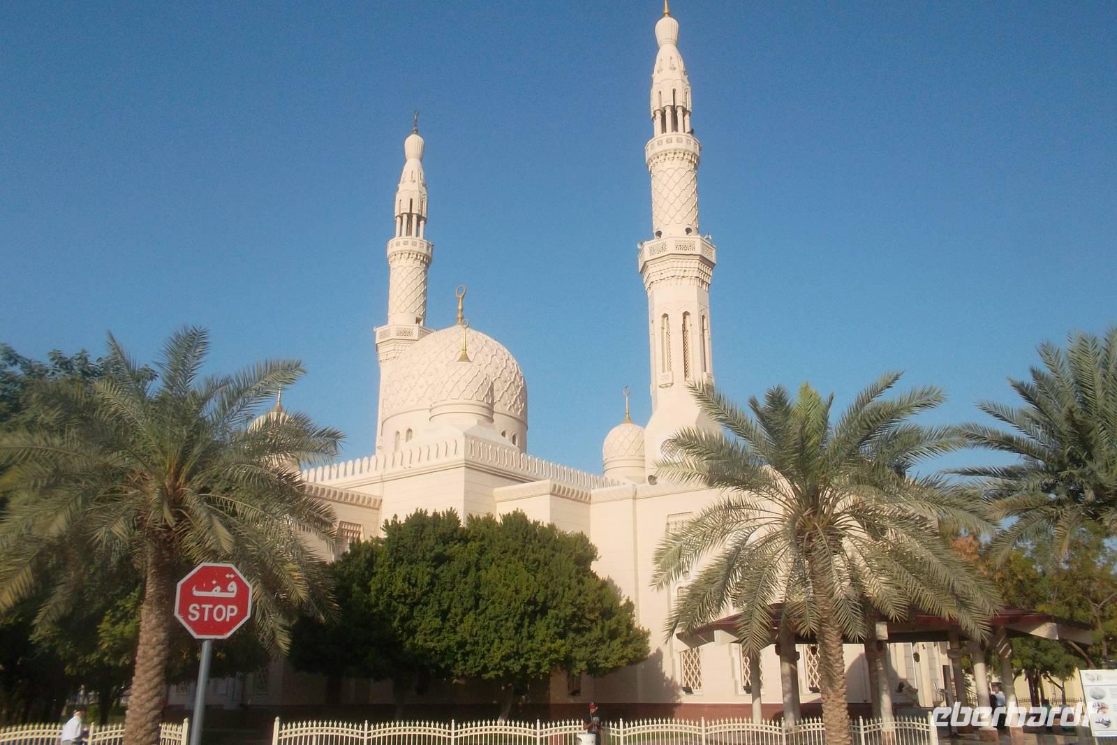 Unser Frühstück und Check out verlegten wir heute möglichst spät, denn wir würden erst abends zur zweiten Etappe unserer Reise weiterfliegen. So begannen wir den Tag mit einer Fahrt zu verschiedenen Fotostopps, unter anderem an der Jumeirah-Moschee. Das war am Ankunftstag nicht möglich gewesen, da ein Regierungstreffen dort in unmittelbarer Nähe für Absperrungen gesorgt hatte.