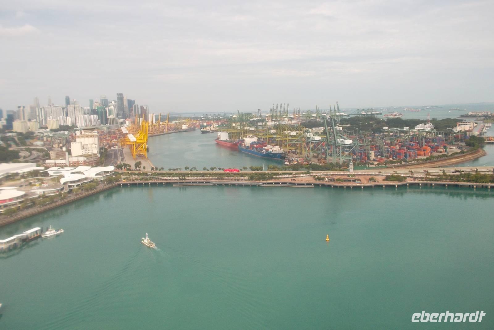 Nachmittags ging es dann noch zu einer für Singapur typischen Attraktion der Superlative. Eine Fahrt mit dem Singapore-Flyer gehört einfach zum Aufenthalt im kleinsten Land Asiens dazu! Seine 165 m Höhe machten das Riesenrad zum höchsten der Welt - erst vor drei Jahren „getoppt" durch das neue Riesenrad in Las Vegas, den „High Roller". Vom „Singapore Flyer" hingegen sieht man die berühmte Formel-1-Rennstrecke, deren Haupttribüne und Boxen genau neben dem Riesenrad stehen und ist manchmal fast auf gleicher Höhe wie Singapurs Hochhäuser und Bankenpaläste.