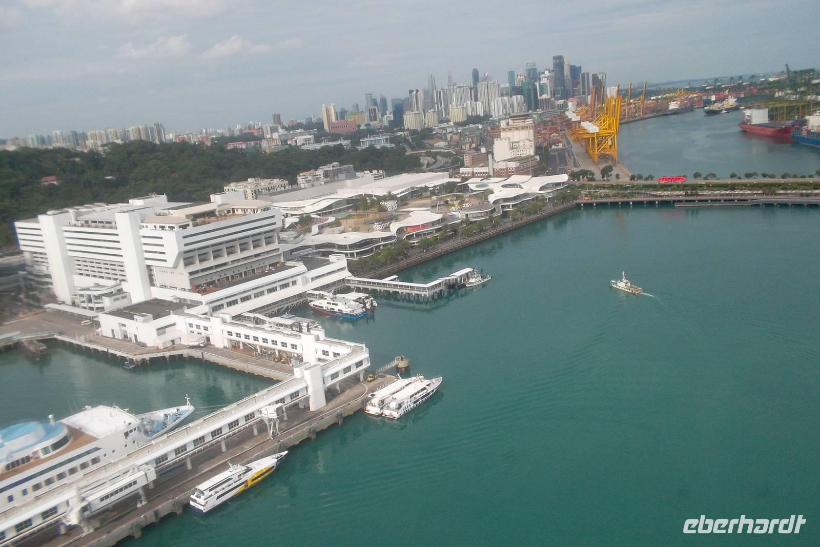 Gemeinsam besuchten wir zunächst das Fort Siloso, das als einziger der ehemaligen Militärstützpunkte noch existiert und wo man historische Geschütze und umfangreiche Bunkeranlagen sowie Ausstellungen ansehen kann. In der folgenden Freizeit hatten wir die Wahl zwischen „Königreich der Schmetterlinge und Insekten", einer Auffahrt auf den 131 m hohen Aussichtsturm, der gleich neben dem Verkehrsknotenpunkt steht, an dem Seilbahn und Einschienenbahn erreichbar sind, einer Wanderung über die Insel mit Besteigung der mit 37 m höchsten Merlion-Statue von Singapur, der Unterwasserwelt, verschiedener bunter und einfallsreicher Shows und und und... Natürlich gab es auch die Möglichkeit, an einem der drei aufgeschütteten Strände oder in der seichten Lagune zu baden.