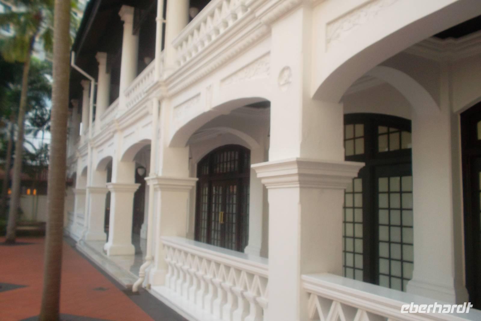 Nicht weit vom historischen Viertel lag Singapurs „erste Adresse", das „Raffles Hotel", in dessen „Long Bar" einer der berühmtesten Drinks der Welt kreiert worden sein soll. Genau diese Bar suchten wir auf um genau diesen Drink - den „Singapore Sling" - zu kosten.