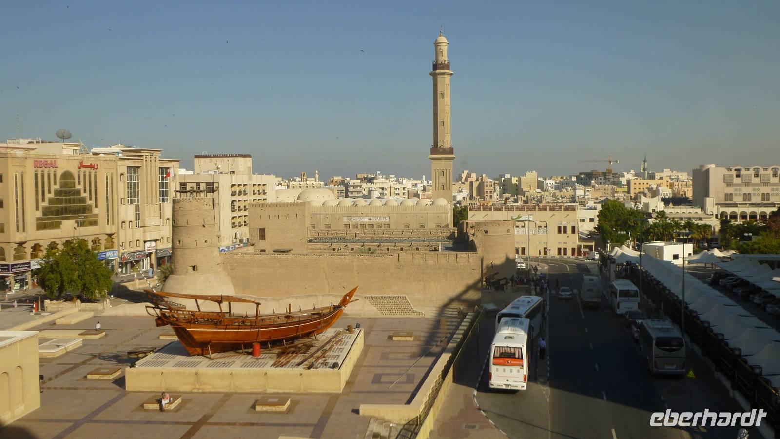 Direkt vor der Tür liegt das Fahidi Fort, eine alte Festung mit einem modernen, unterirdischen Museum. Hier verschaffen wir uns einen ersten Überblick über Dubais rasante Entwicklung in den letzten Jahrzehnten.