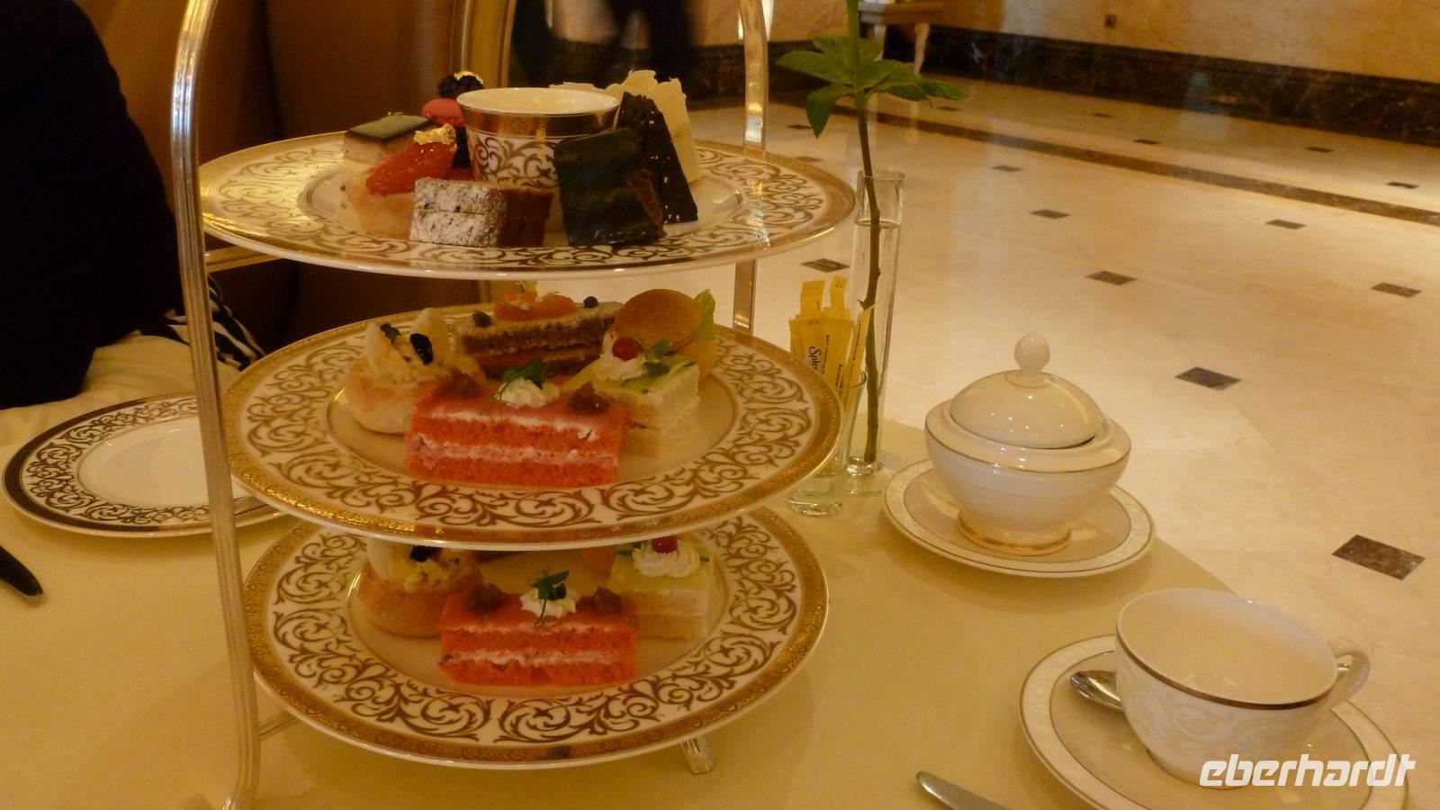 Vorbei an der mit Wolkenkratzern flankierten Corniche Abu Dhabis gelangen wir zum Emirates Palace, Luxushotel und Tagungsstätte der Herrscher des Golfkooperationsrates und heute Gastgeber für unseren Nachmittagstee . Im luxuriösen Ambiente genießen wir Tee, Kaffee und Leckereien.