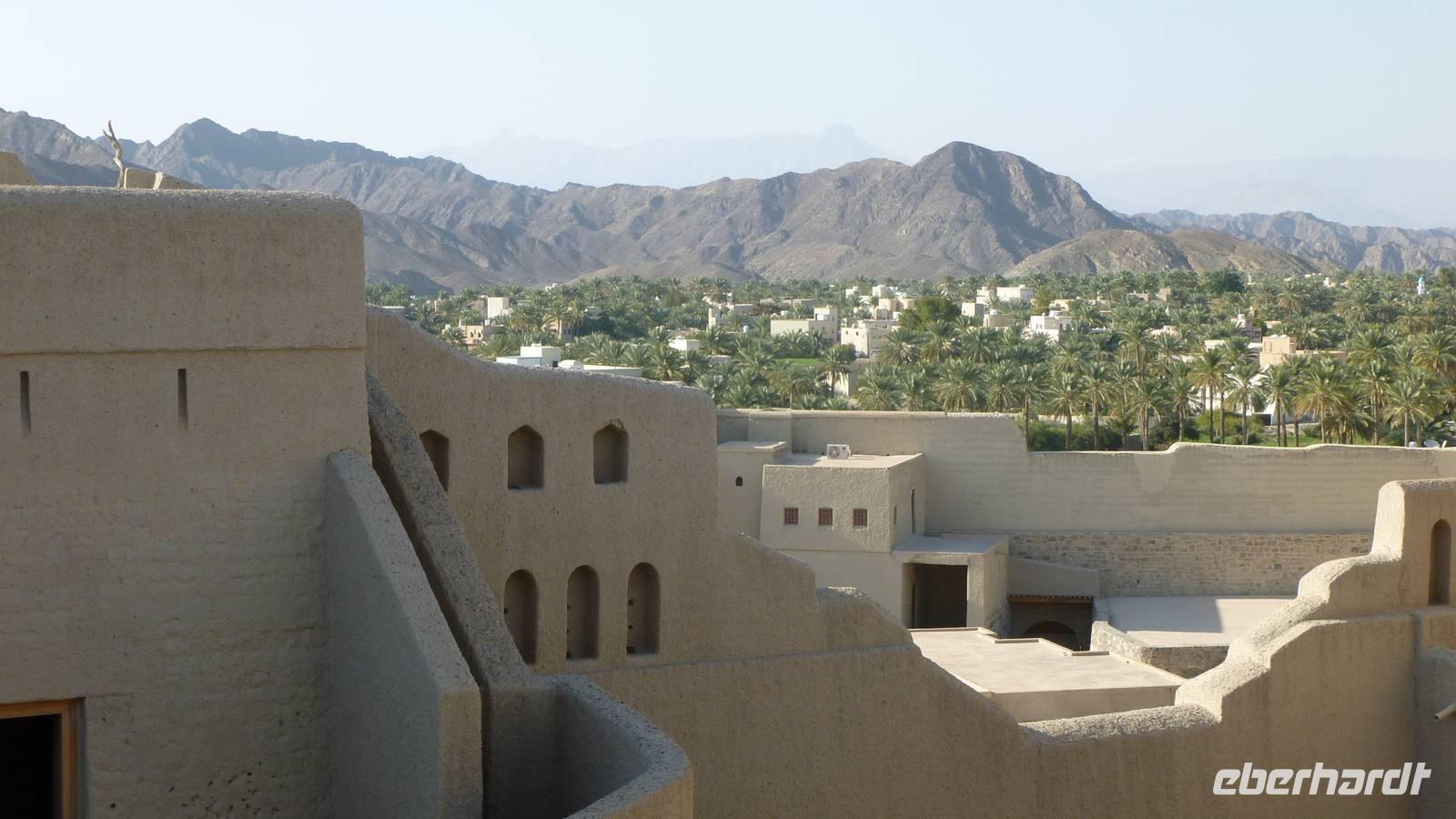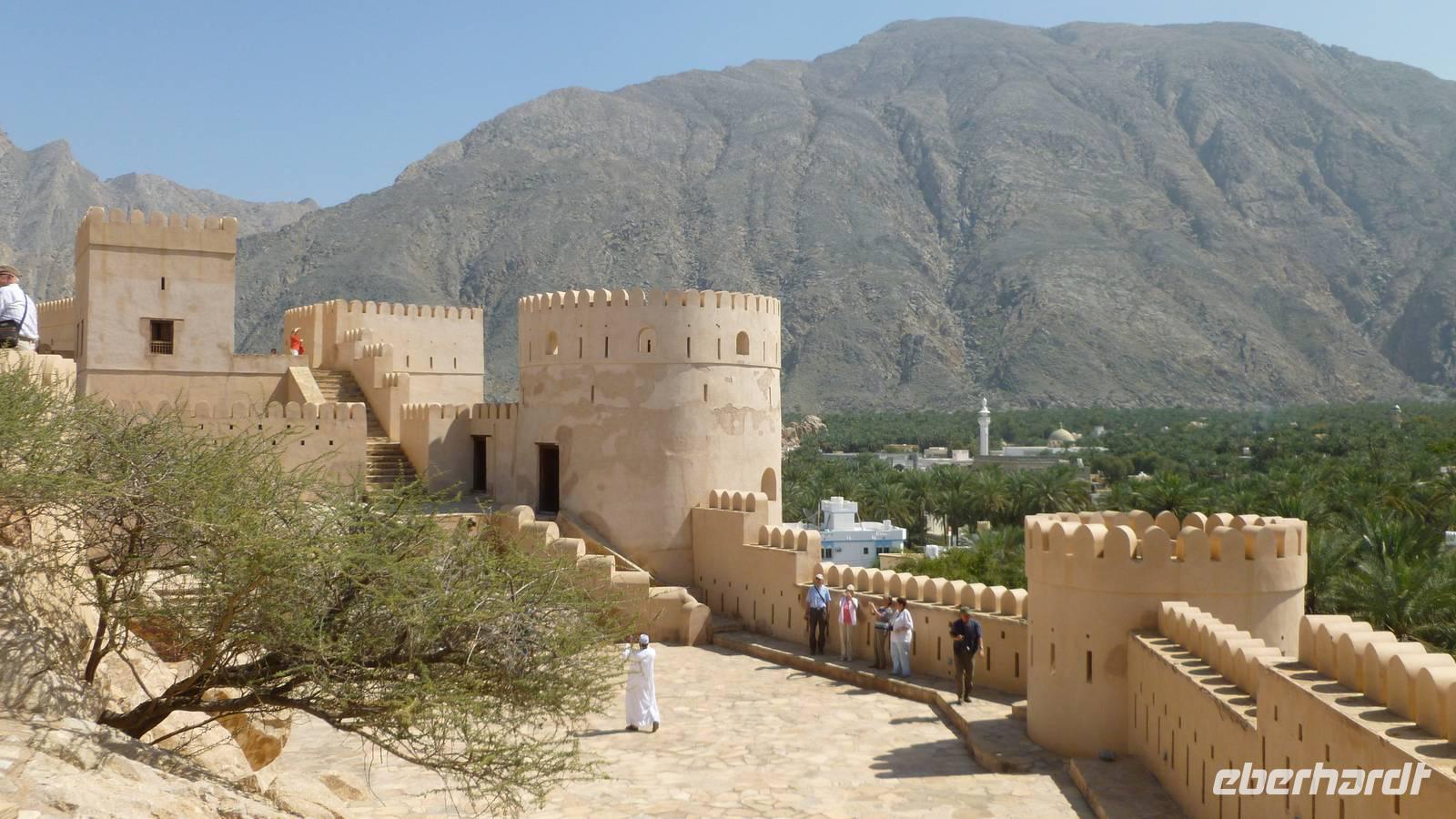 Die Festung von Nakhl erhebt sich auf einem ca. 60 Meter hohen Felsen über den Ort und bietet so einen einmaligen Ausblick auf die Oase und die Berge.