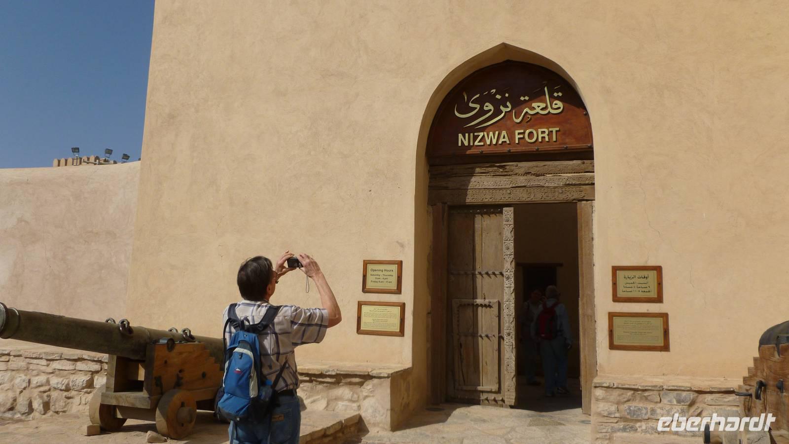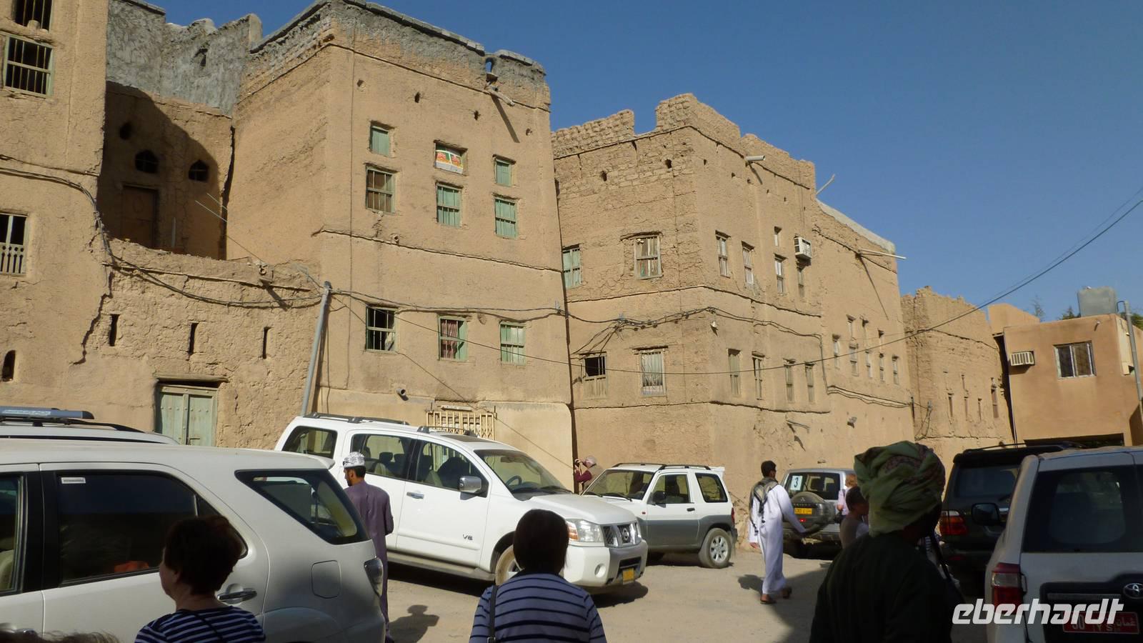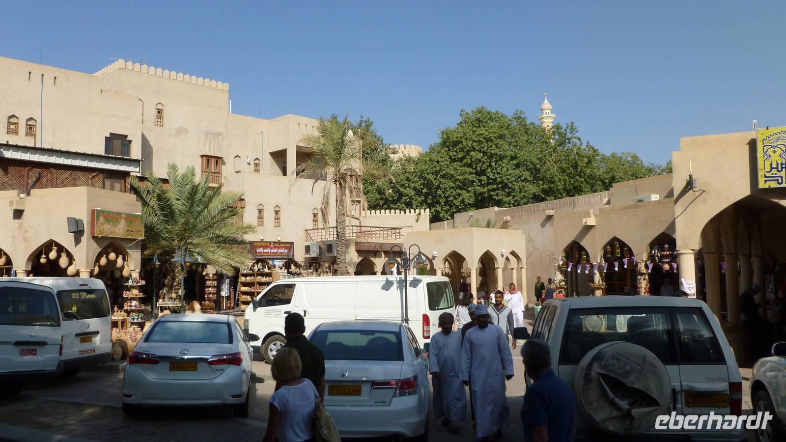 Es ist Freitag, das omanische Wochenende beginnt. Auf dem Wochenmarkt in Nizwa herrscht ein reges Feilschen und Handeln. Es sind Szenen wie aus 1001 Nacht: auf einem von Dattelpalmen beschatteten Platz neben der alten Stadtmauer bieten Omanis Ziegen, Schafe und Rinder zum Kauf an. Das Vieh wird in einem Rondell im Kreis herumgeführt, dabei feilschen die Beteiligten um den Preis. Ein archaisches Schauspiel wie es sich seit vielen hundert Jahren abspielt. Frauen tragen nach alter Beduinentradition eine Gesichtsmaske, Ziegen meckern in den Armen ihrer neuen Besitzer... es ist wie ein Film, der vor unseren Augen abläuft. Man könnte hier Stunden verbringen und einfach nur zuschauen.