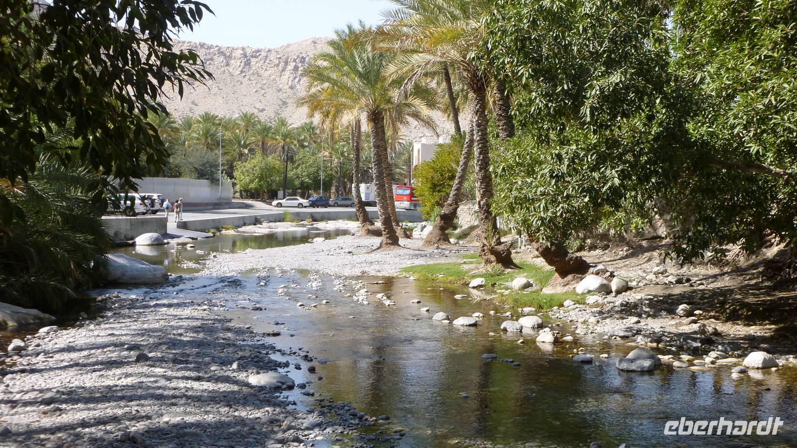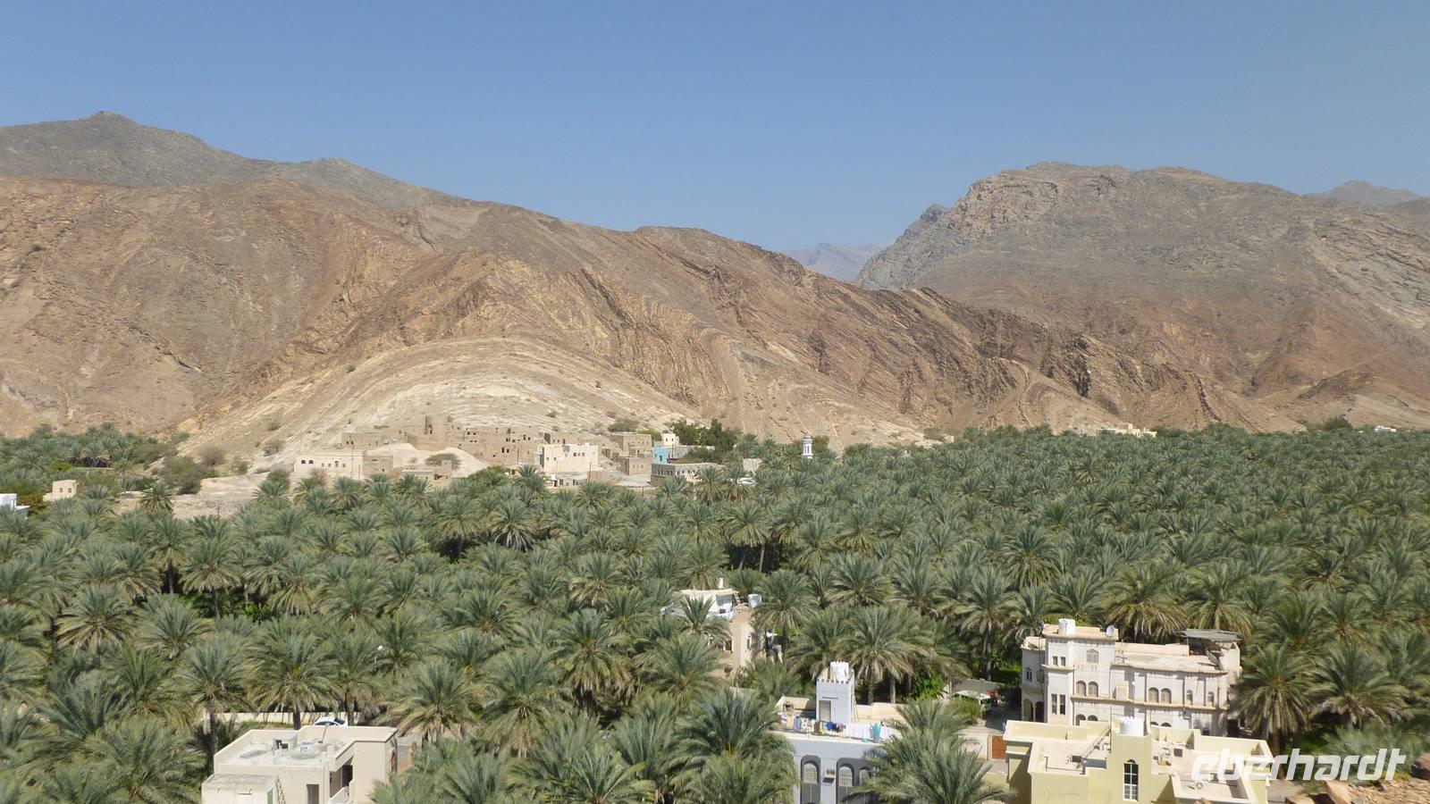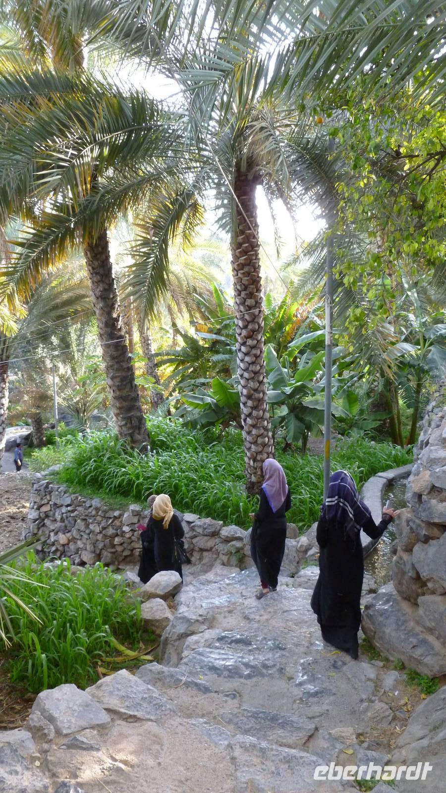Vom Jebel Al Akhdar geht es zurück in die Ebene. In der Oase Birkat Al Mauz folgen wir einem Falaj (Wasserkanal, UNESCO-Weltkulturerbe) und spazieren durch den Palmengarten.