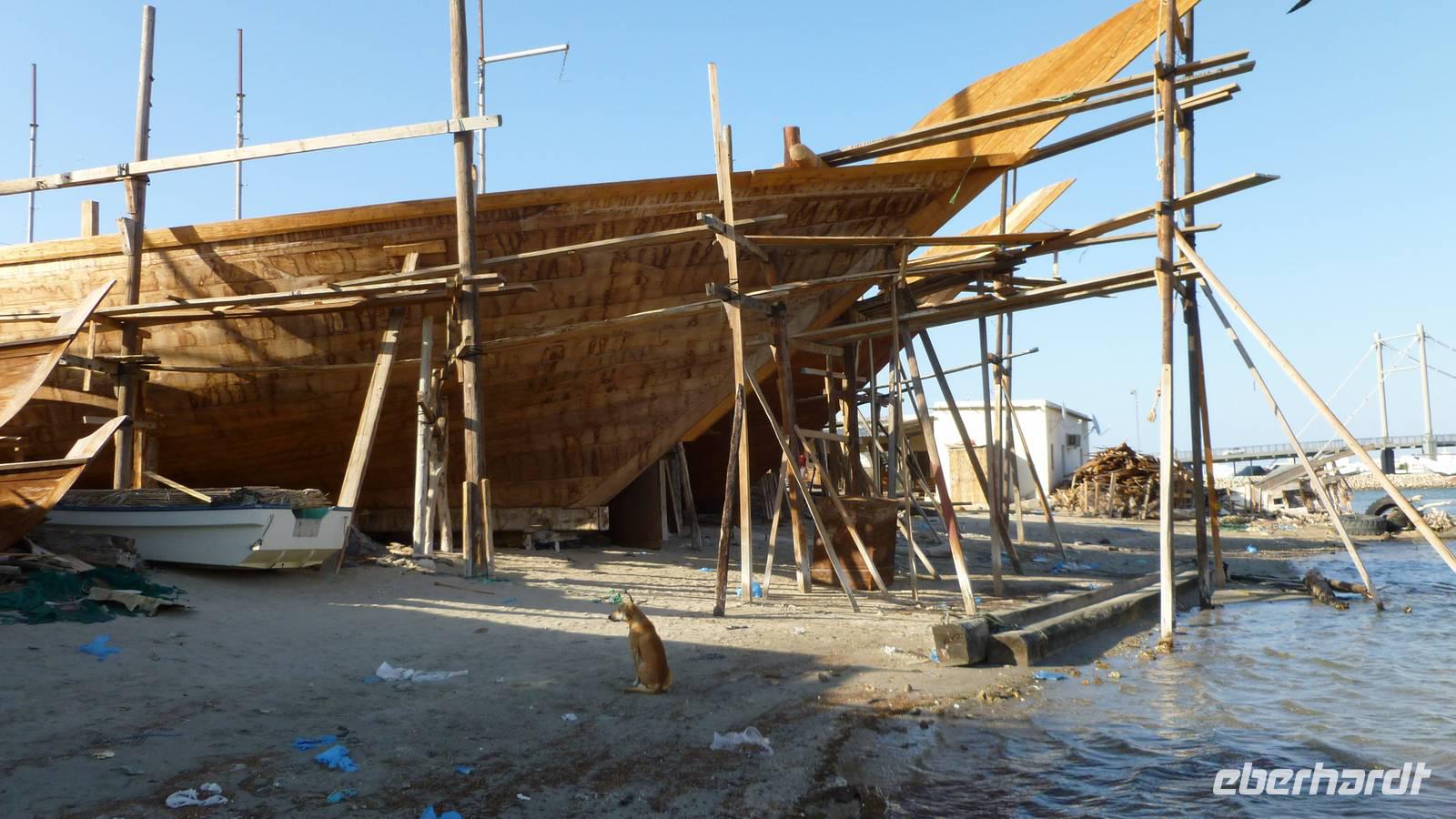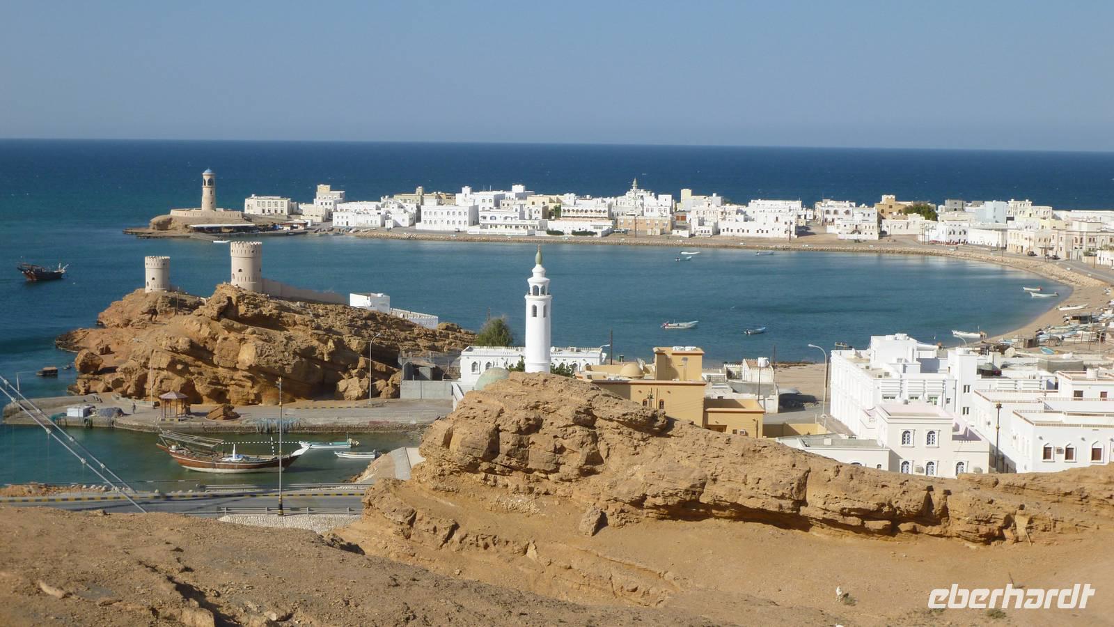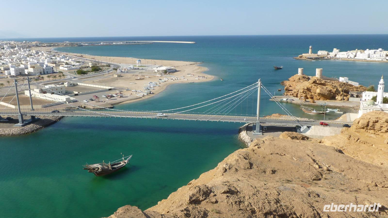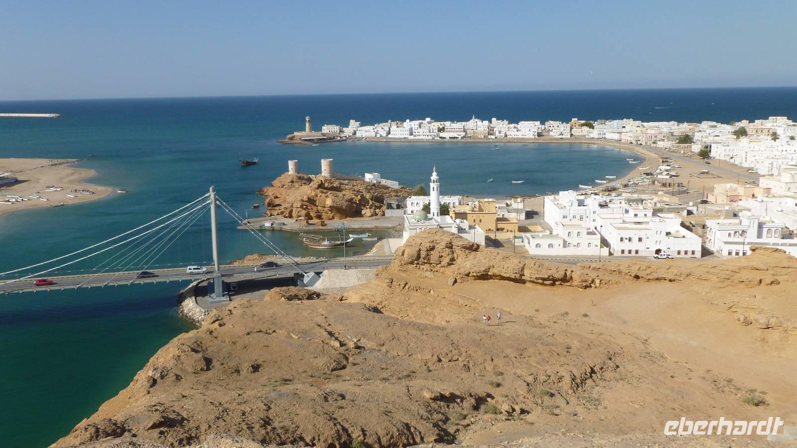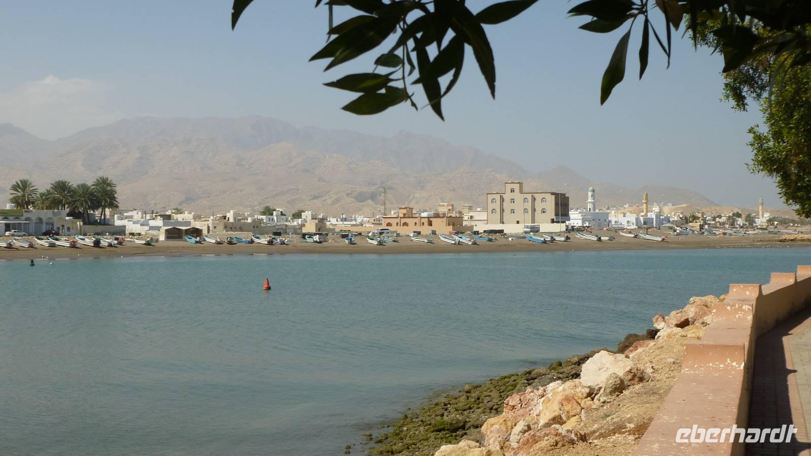 In Sur verschaffen wir uns zunächst von zwei Aussichtspunkten einen Überblick über die Lagunenstadt am Indischen Ozean. Die Lagune bietet den traditionellen Holzschiffen, den Dhaus, einen natürlichen Hafen. In der kleinen Werft an der Lagune können wir uns davon überzeugen, wie noch heute Dhaus gebaut werden. Es ist einer der wenigen Plätze auf der Arabischen Halbinsel wo man dieses Handwerk noch beherrscht.