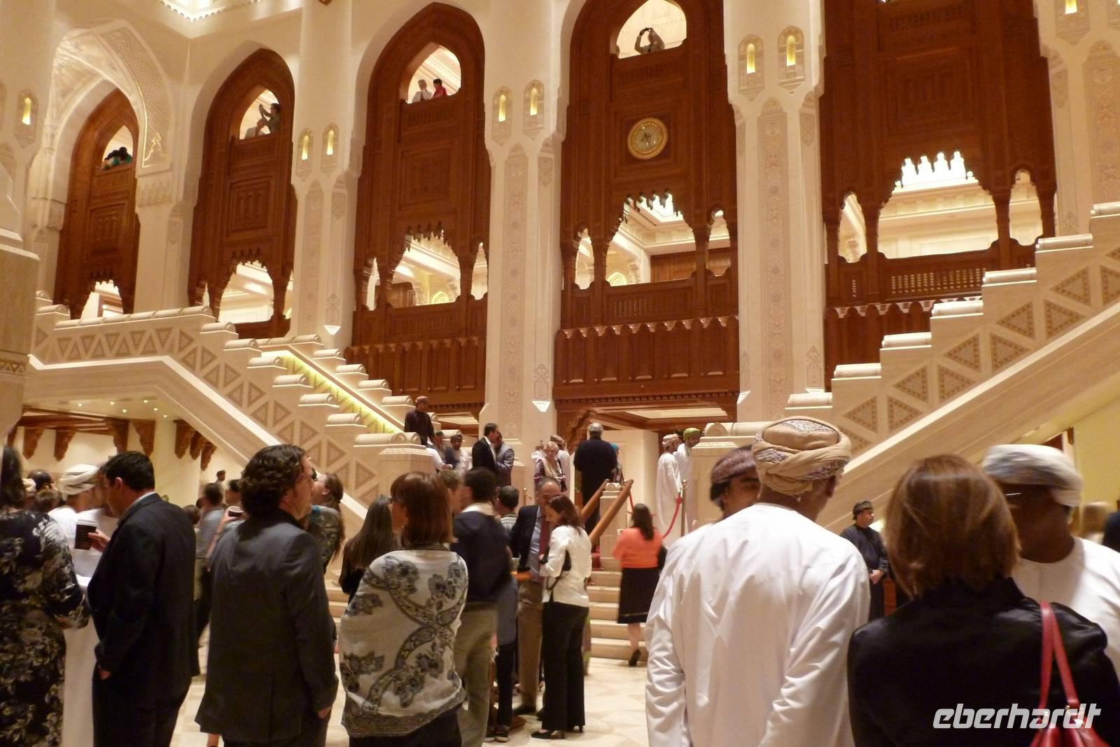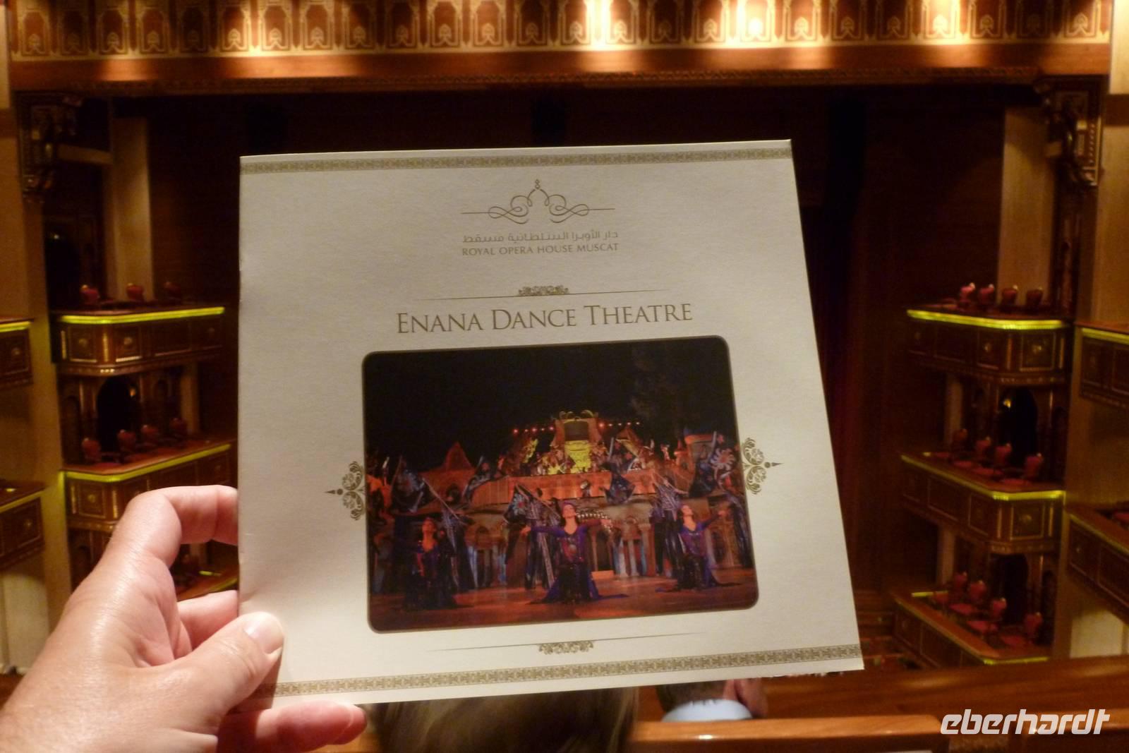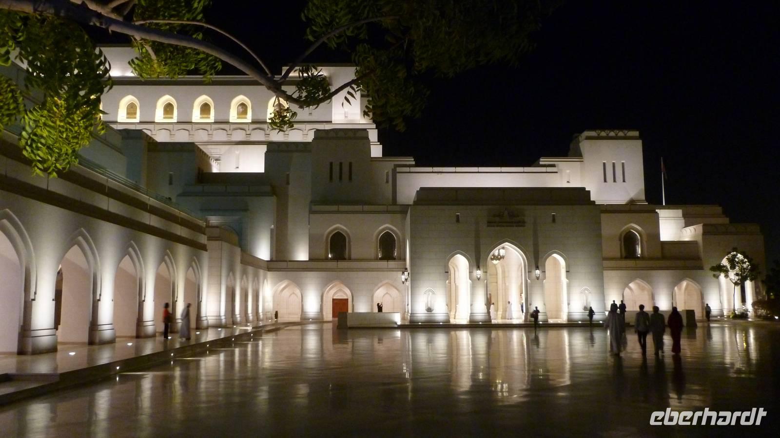 Unser Abend wird ein ganz besonderer Abend! Wir haben Karten für das ROHM, das Royal Opera House Muscat. Nicht irgendeine Oper, nein es ist das einzige Opernhaus in der ganzen Golfregion. Es ist ein Opernpalast, Ausdruck der Liebe des Sultans für klassische Musik. Ehrfürchtig bewundern wir die gediegene Innenarchitektur. Von unseren gemütlichen, samtroten Sitzen verfolgen wir die farbenprächtige Aufführung des Enana Dance Theatres. Es freut mich sehr, dass wir diesen Besuch zusätzlich in unser Programm nehmen konnten.