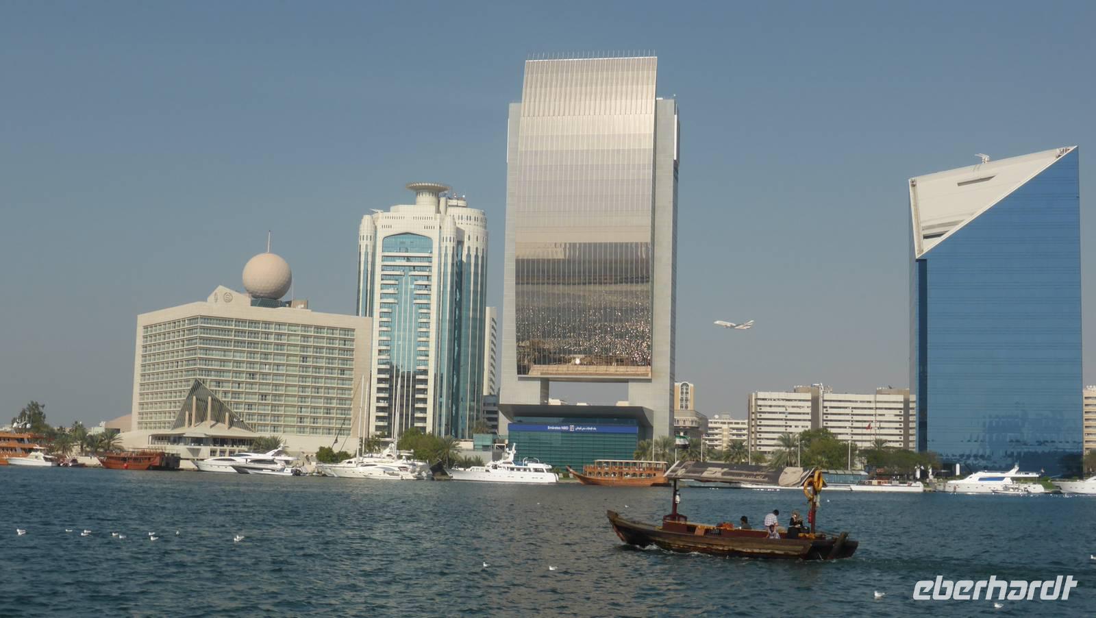 Entlang des „Hochhauscanyon" der Shaikh Zayed Road, der uns angesichts der Höhe und Vielzahl der Wolkenkratzer ganz winzig erscheinen lässt, kehren wir zurück in das alte Stadtzentrum.