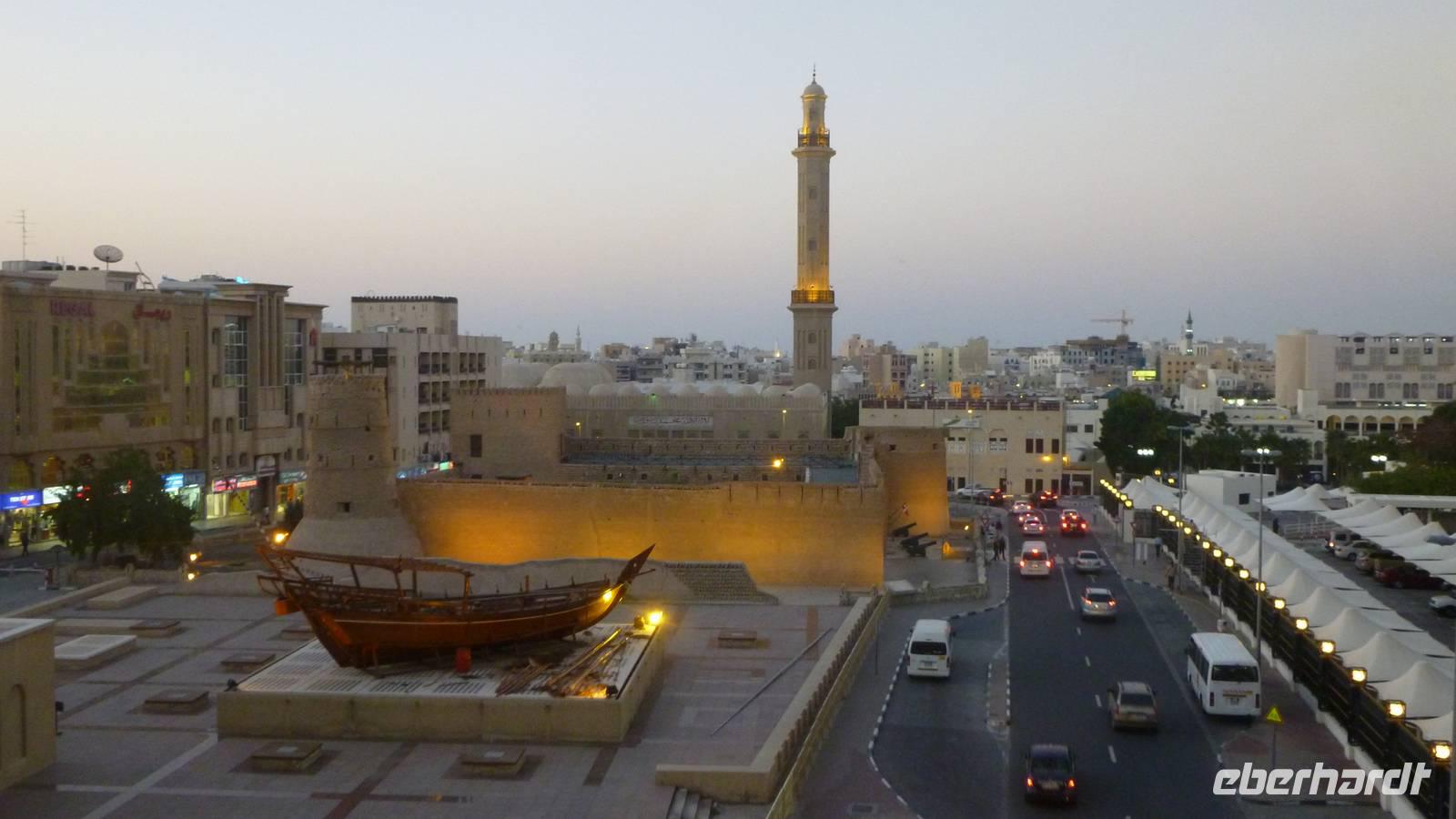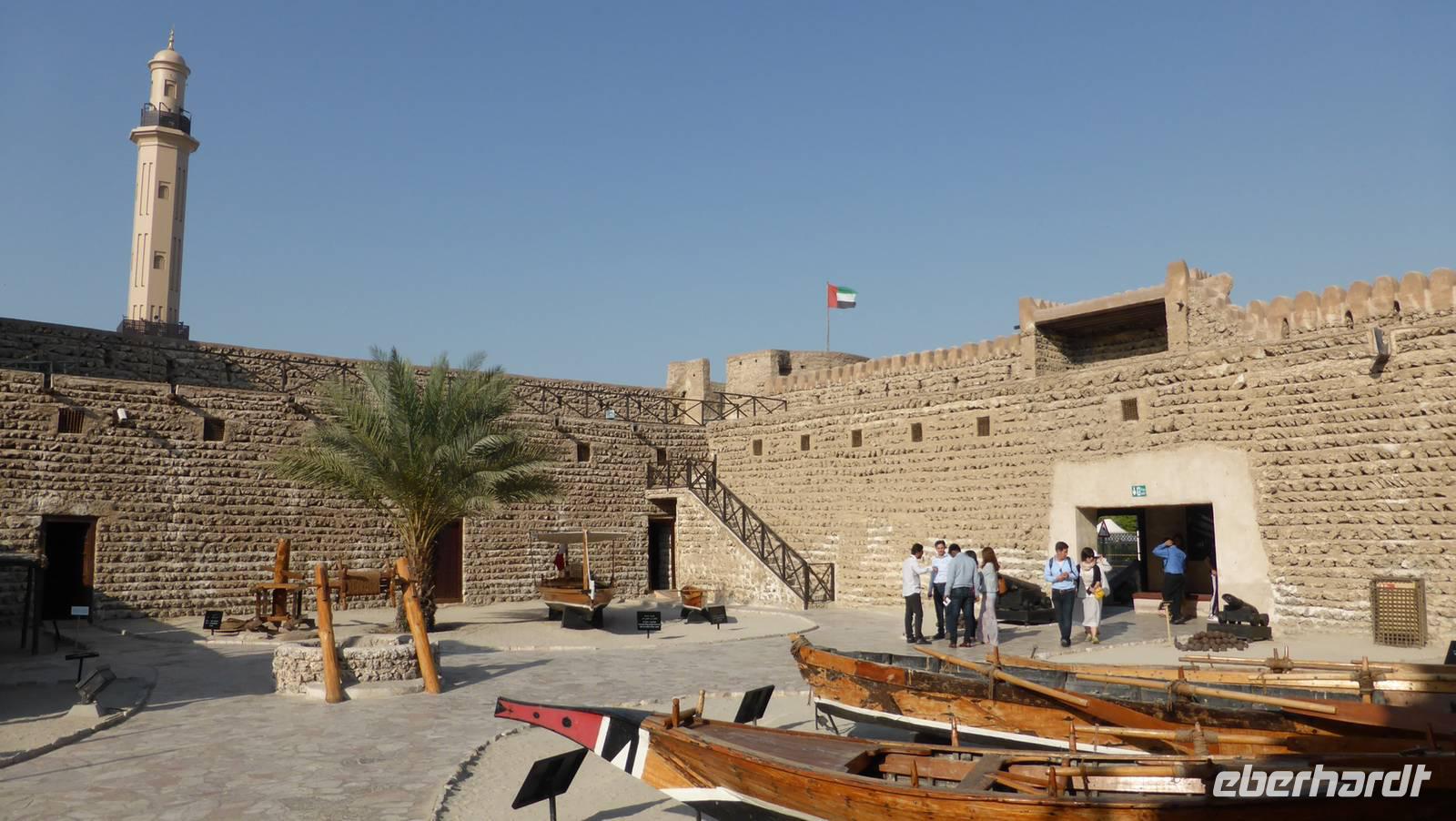 Im Fahidi Fort, dem heutigen Dubai Museum, welches sich direkt neben unserem Hotel befindet, verschaffen wir uns einen Überblick über die Geschichte Dubais. Was man dieser Festung von außen nicht ansieht, ist das moderne Museum im Untergeschoss.