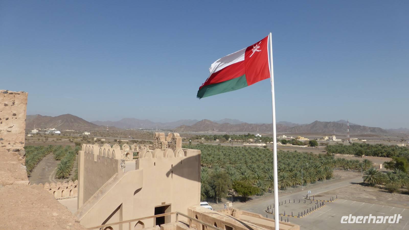Am Nachmittag erreichen wir die Festung Jabrin. Hier werden wir gastfreundlich mit einem omanischen Kardamomkaffee und Datteln begrüßt. Von den Dachterrassen des Forts haben wir einen tollen Ausblick auf die mächtigen Berge des Felsengebirges (Hajar Gebirge).