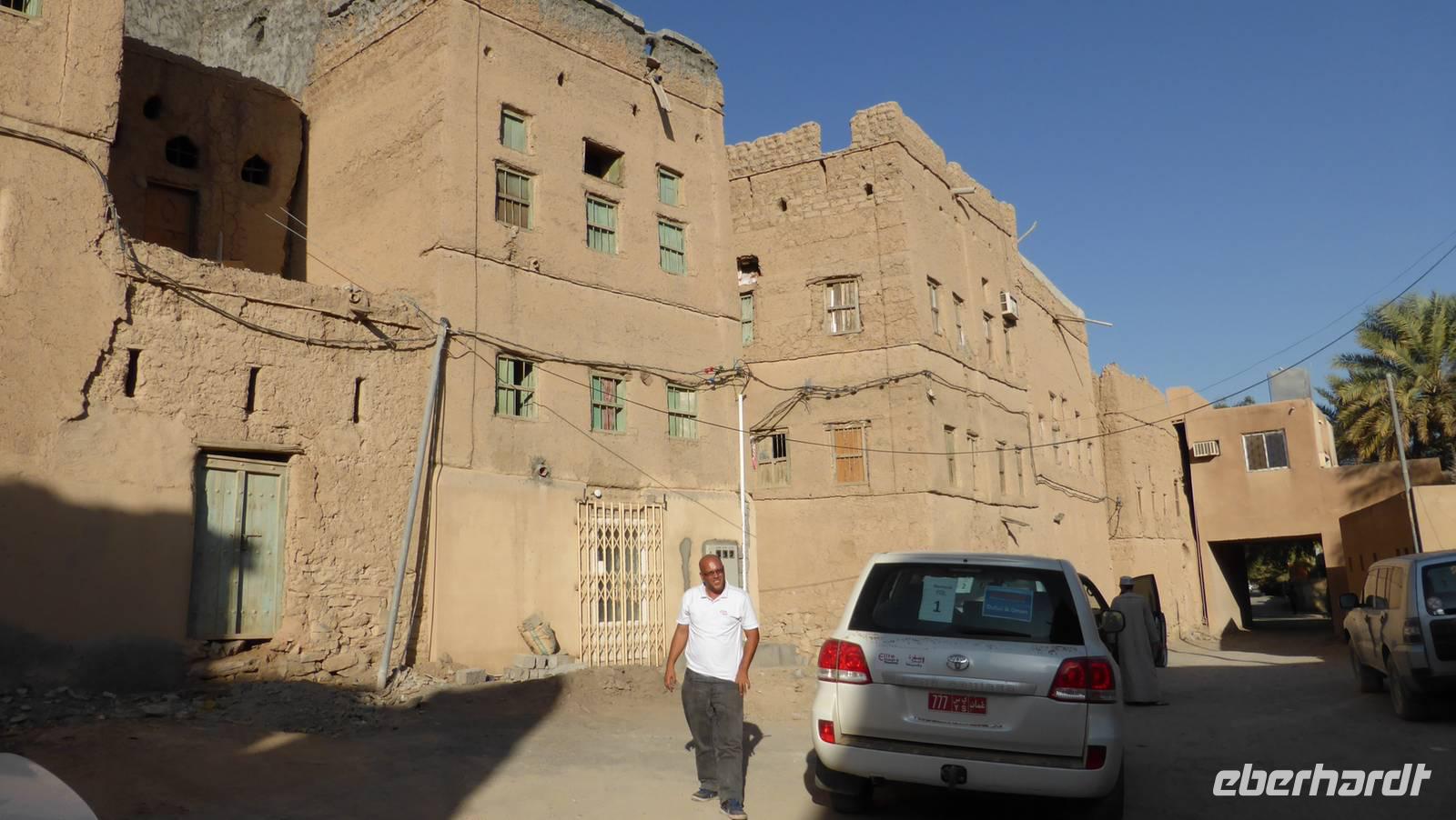 In der naheliegenden Oase von Bahla befindet sich ein riesiges Lehmfort, das größte im Land und UNESCO-Weltkulturerbe. Fast 20 Jahre lang habe ich die Restaurierung dieser Wehranlage verfolgt und bin nun glücklich, mit meinen Gästen hier eintreten zu können. Es gilt als meisterhaftes Beispiel einer omanischen Verteidigungsanlage und bietet Einsichten in zahlreiche Räumlichkeiten sowie immer wieder neue Perspektiven auf die umgebende Oase und Bergwelt.