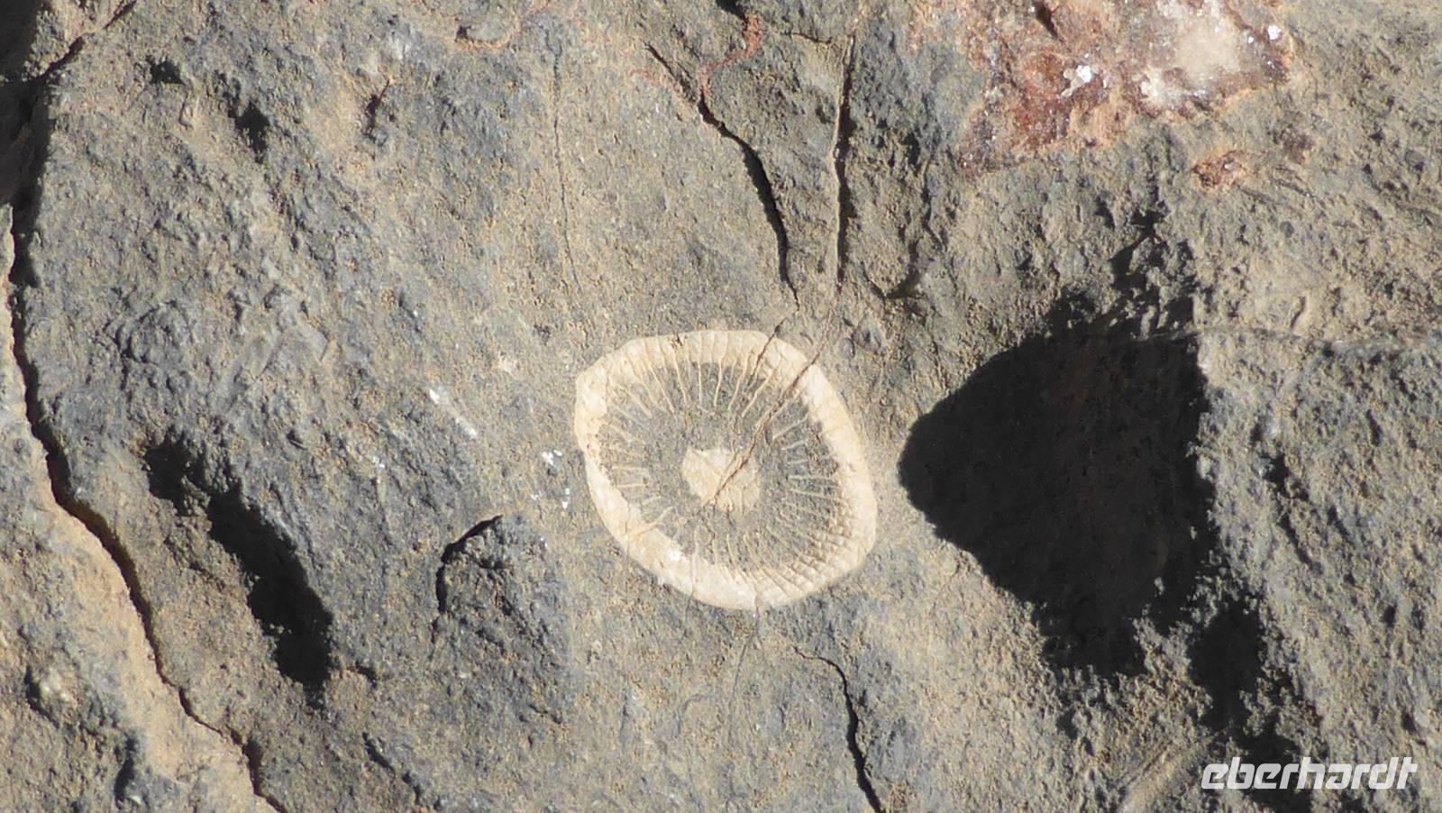 Am Morgen fahren wir auf einer hervorragend ausgebauten Serpentinenstraße hoch auf ca. 1.800 Meter zu Dianas Viewpoint. Dieser Blick in die Ferne auf die „Grünen Berge" (= Jebel Al Akhdar) mit kleinen Dörfern und Terrassengärten ist einzigartig. Klar, dass es Lady Di hier gut gefallen hat. Wir unternehmen hier eine kleine Wanderung vom Dorf Al Aqur bis zum Ort Al Ain. Immer wieder stoßen wir dabei auf fossile Meerestiere, welche hier in fast 2.000 Meter Höhe im Gestein eingeschlossen sind. „Wanderung" klingt so harmlos. In diesem Fall bedeutet es teilweise auf einem schmalen Falaj (Wasserkanal) entlang zu balancieren. „Aber auch die Alten haben wir gut rübergebracht" (Zitat unserer fast 80-jährigen Mitreisenden) und das Erlebnis entschädigt für die Mühe.