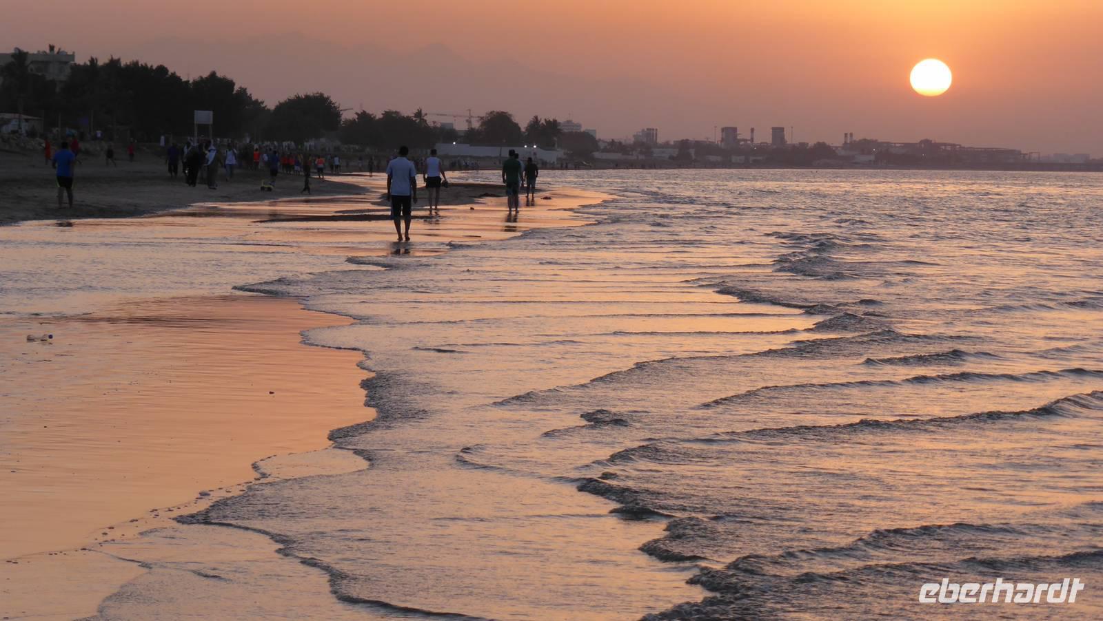 Nachmittags zurück im Hotel bleibt noch Zeit für einen Strandspaziergang. Auch heute ist der Sonnenuntergang wieder für 18.00 Uhr bestellt...