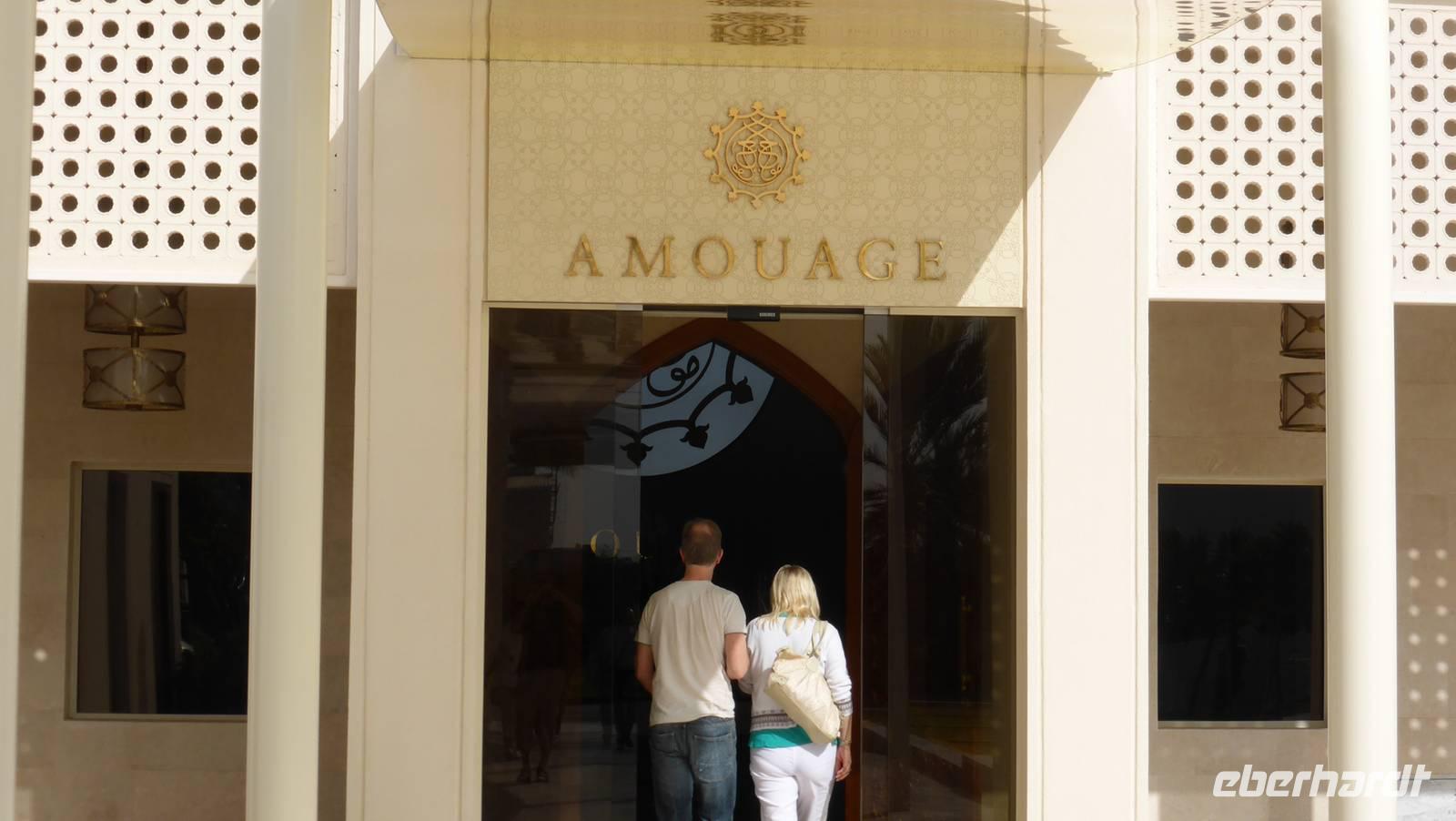 Auf speziellen Wunsch nicht näher genannter Gäste machen wir noch einen kleinen Umweg und halten an der Amouage Fabrik. Hier erhalten wir einen Einblick in die berühmten Düfte des Oman. In der weltweit einzigen Amouage Fabrik werden aus mehr als 100 natürlichen Ingredienzien die wohl teuersten Parfums hergestellt.